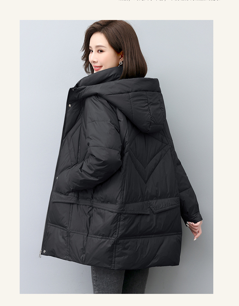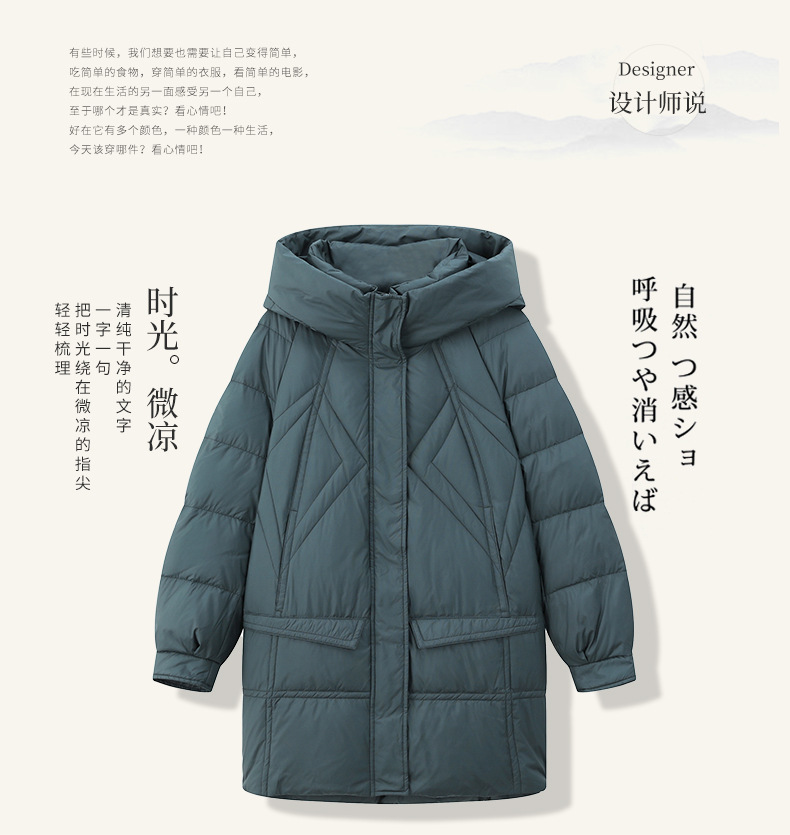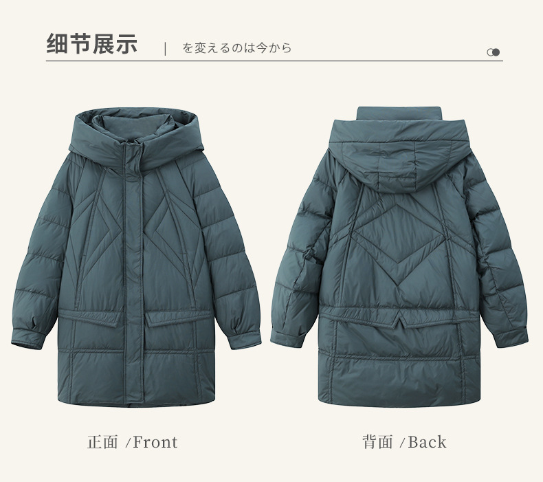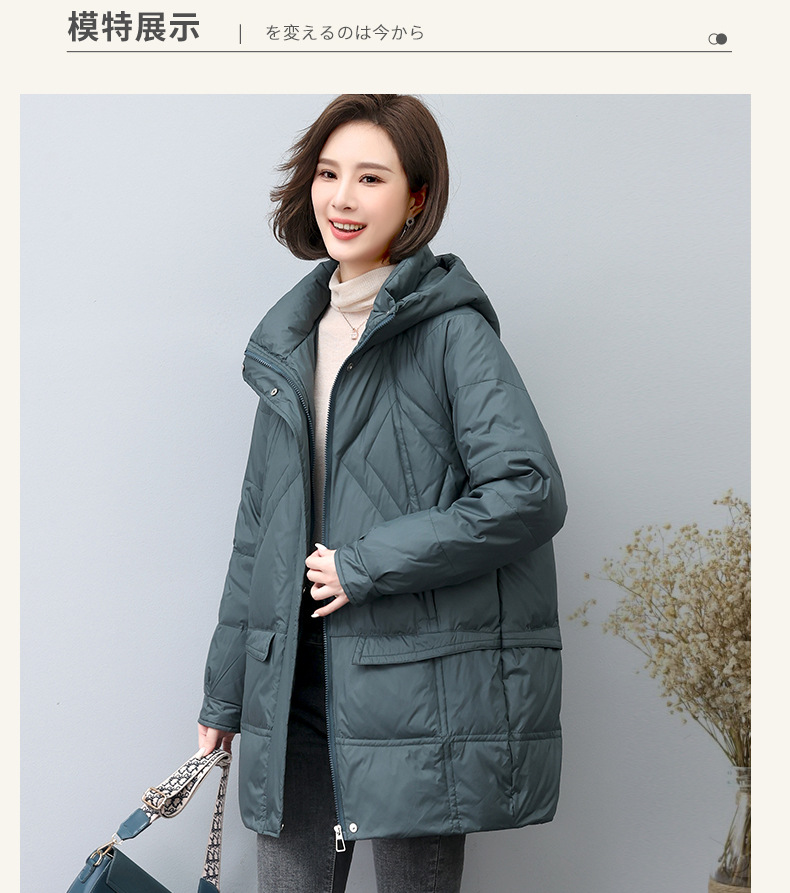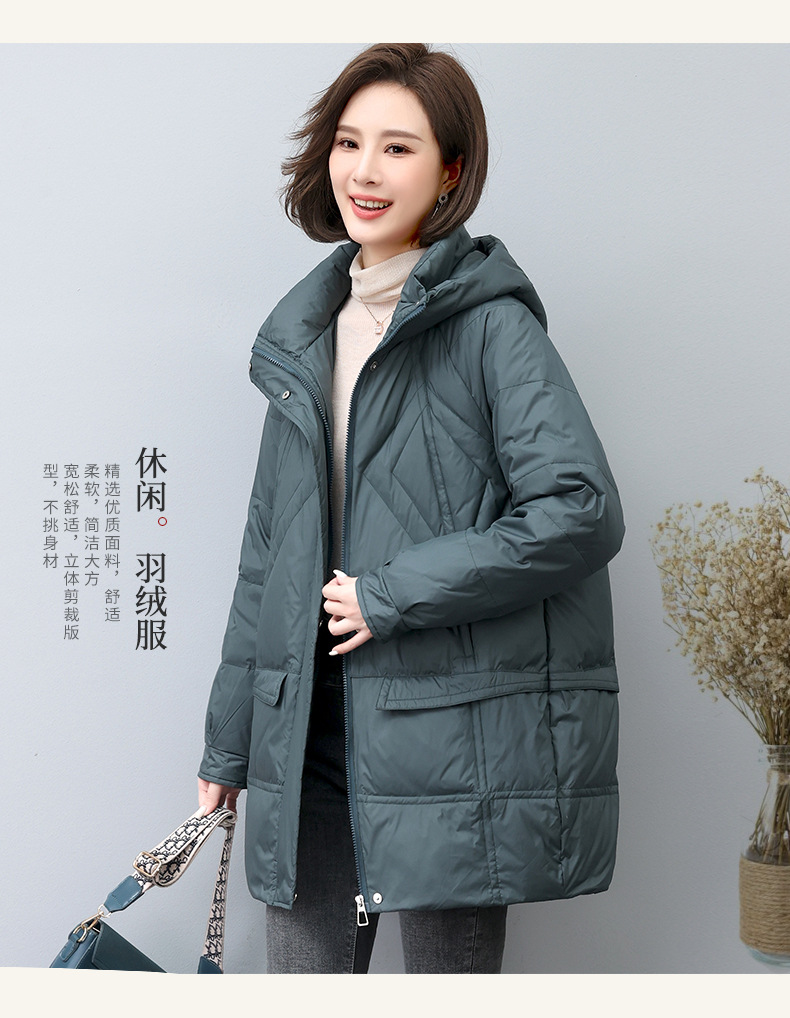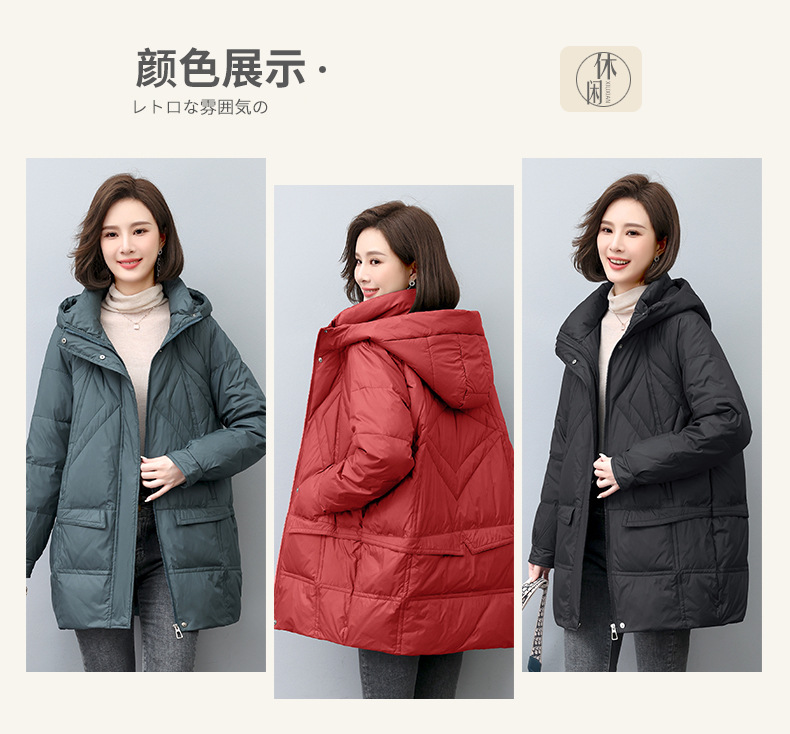 丁摩 90白鸭绒大码宽松休闲中长款羽绒服女冬装新款百搭羽绒外套5ZF-363211