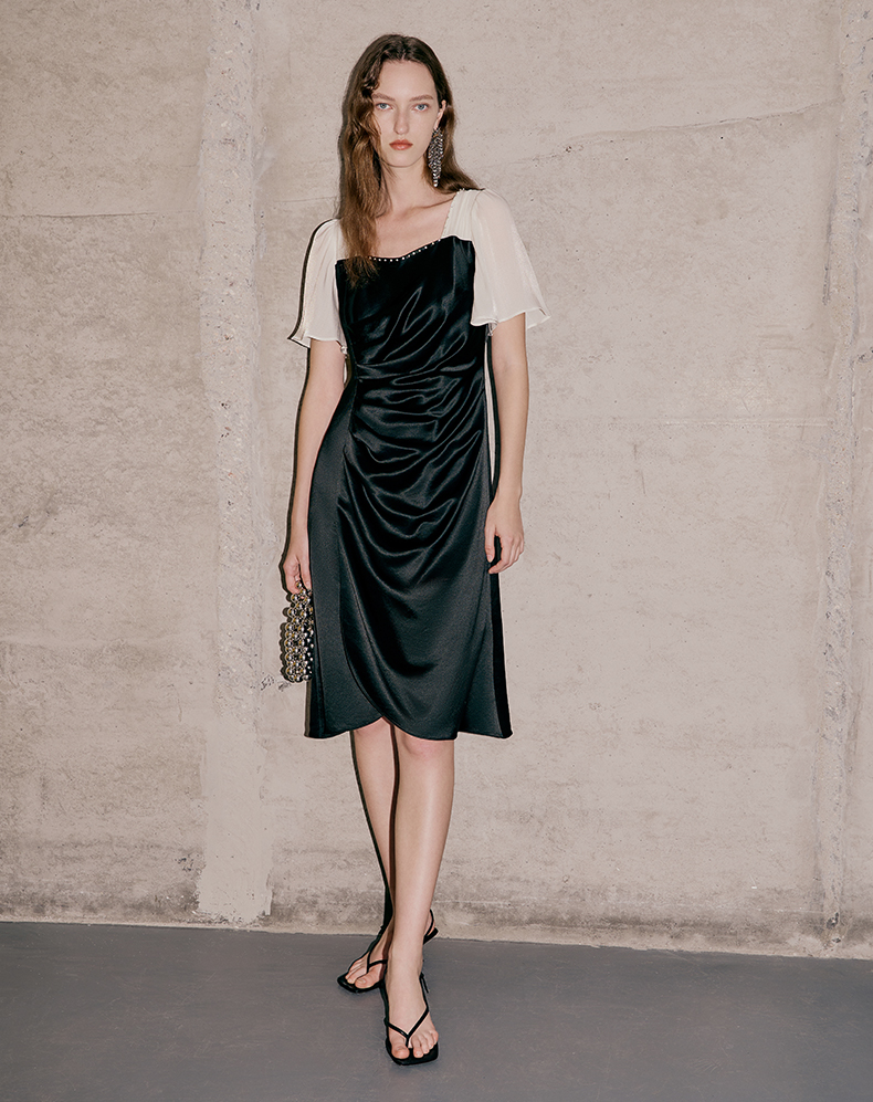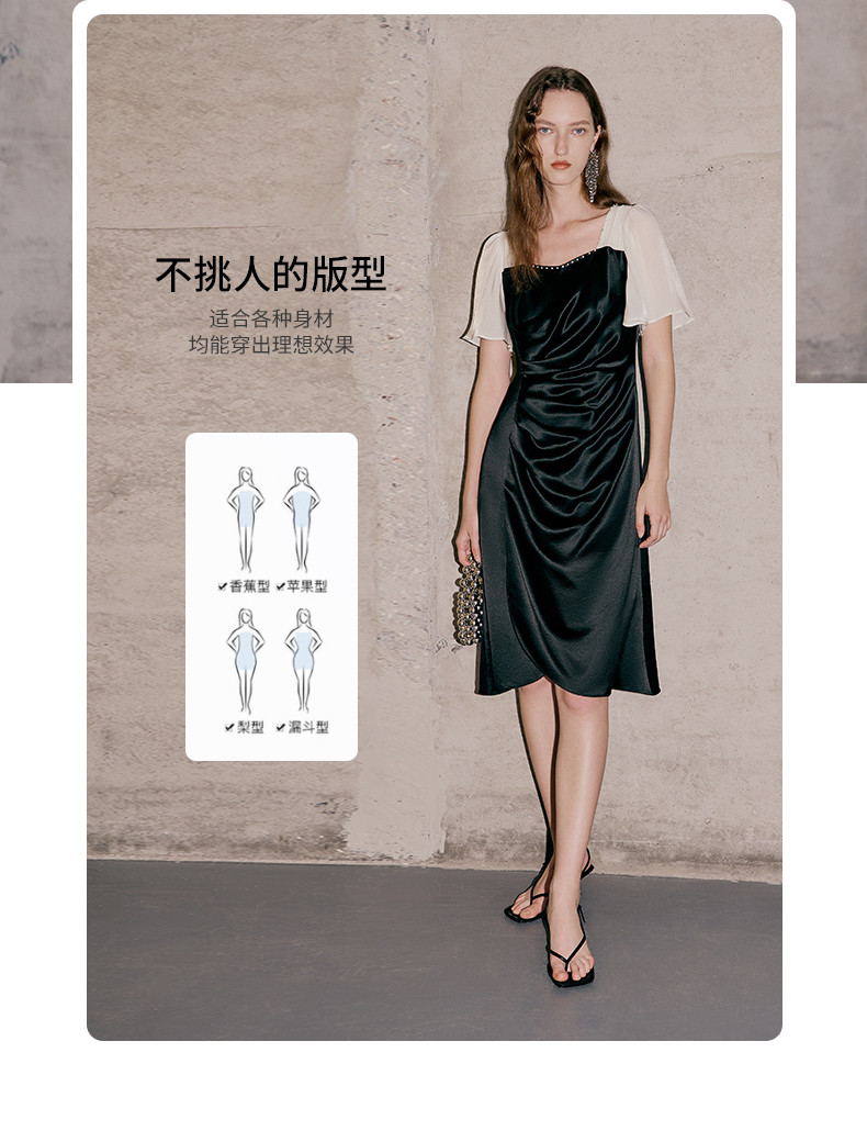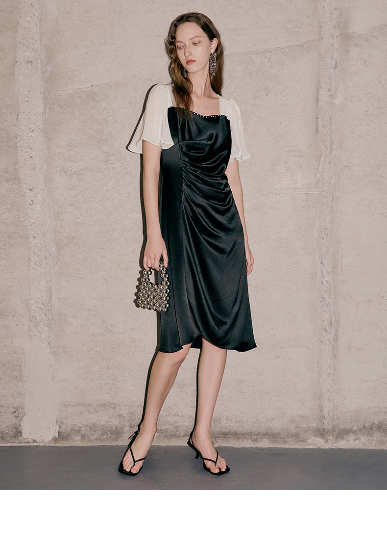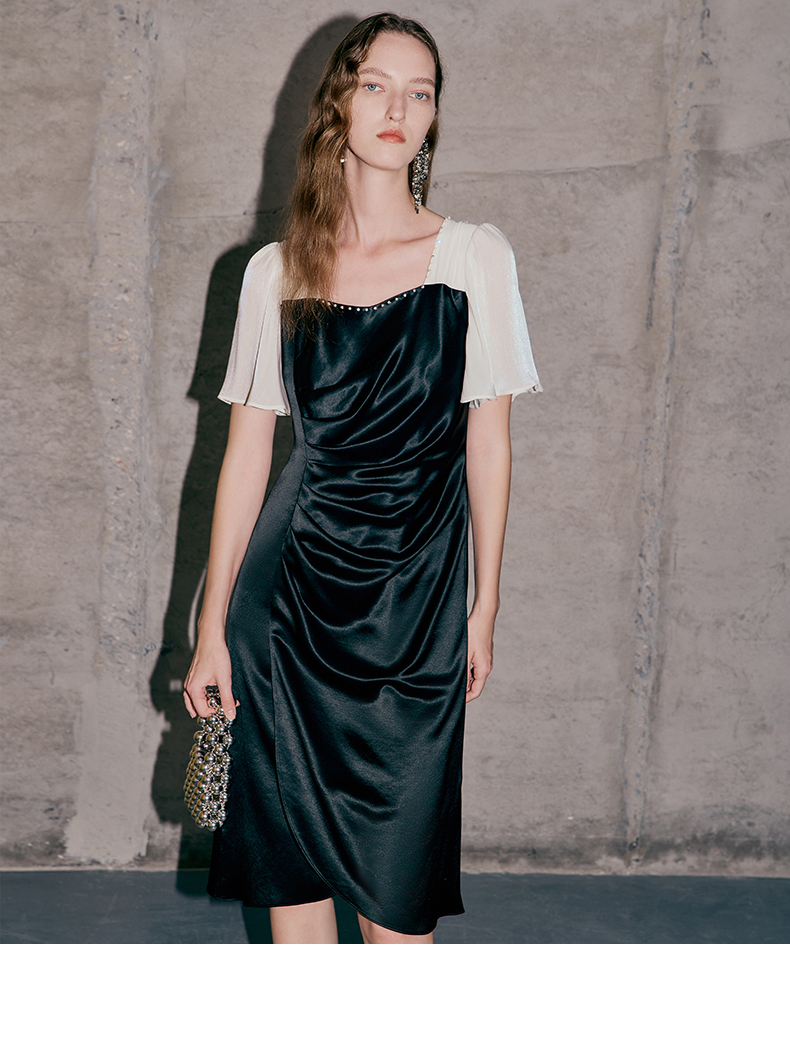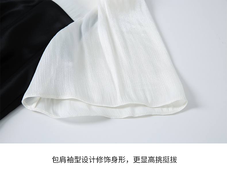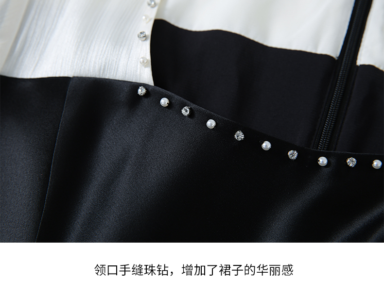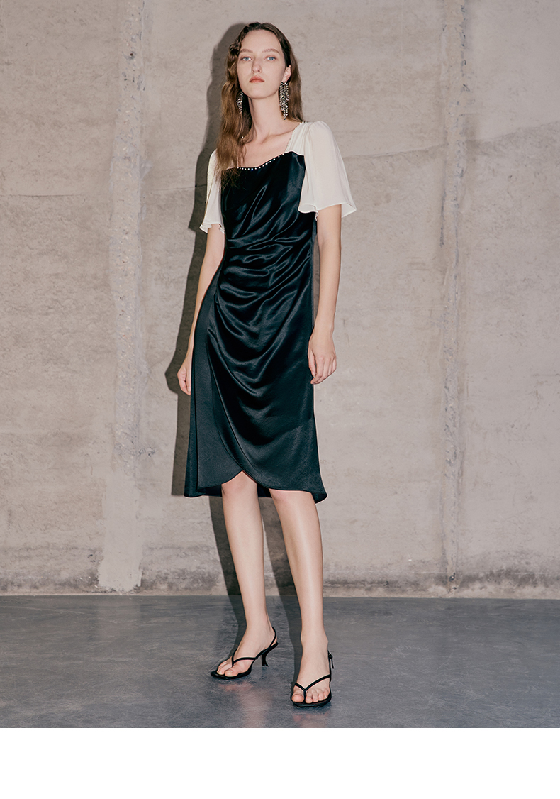 EITIE爱特爱春夏新款时尚气质方领收腰撞色显瘦连衣裙7307027