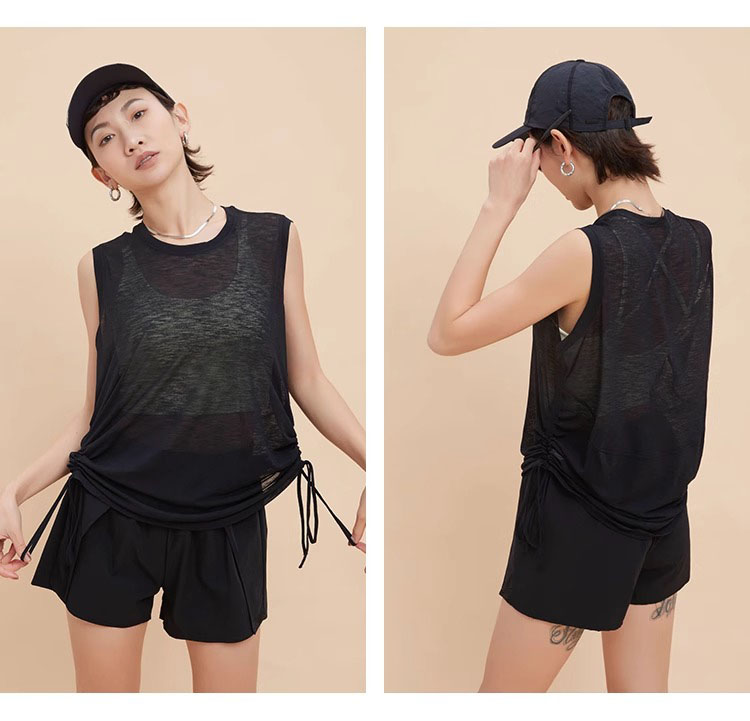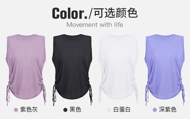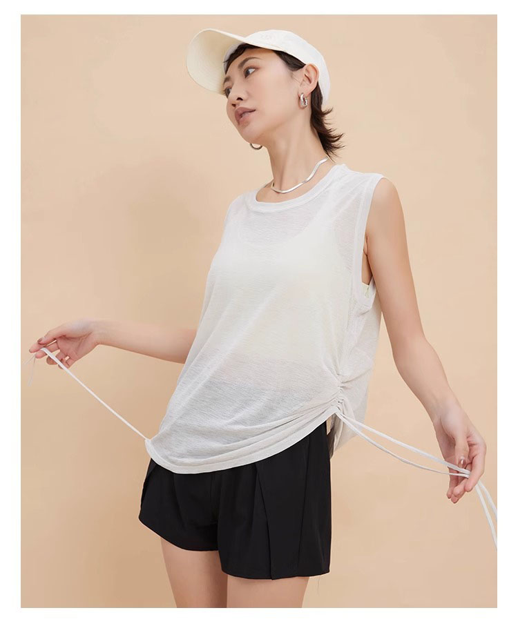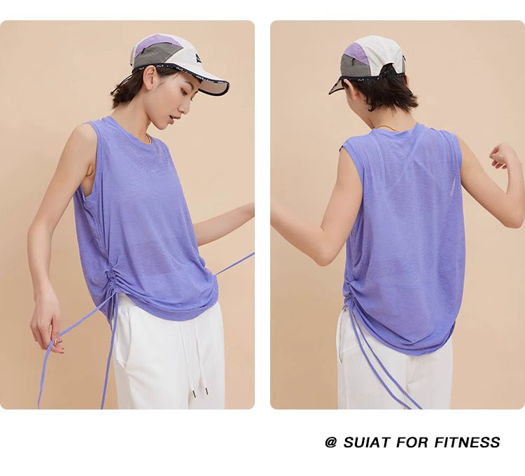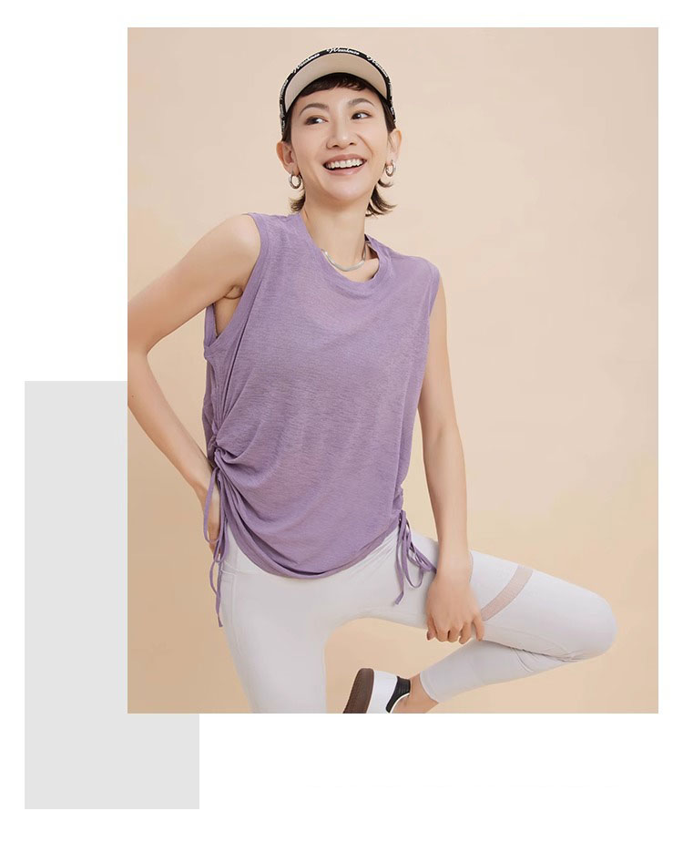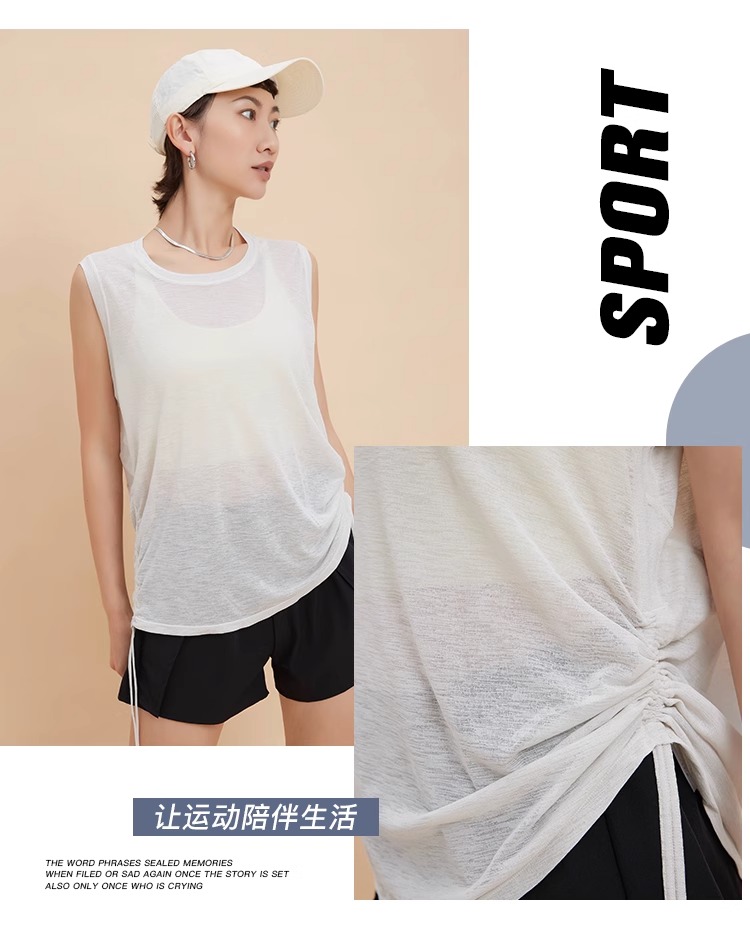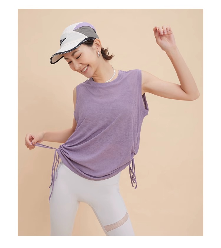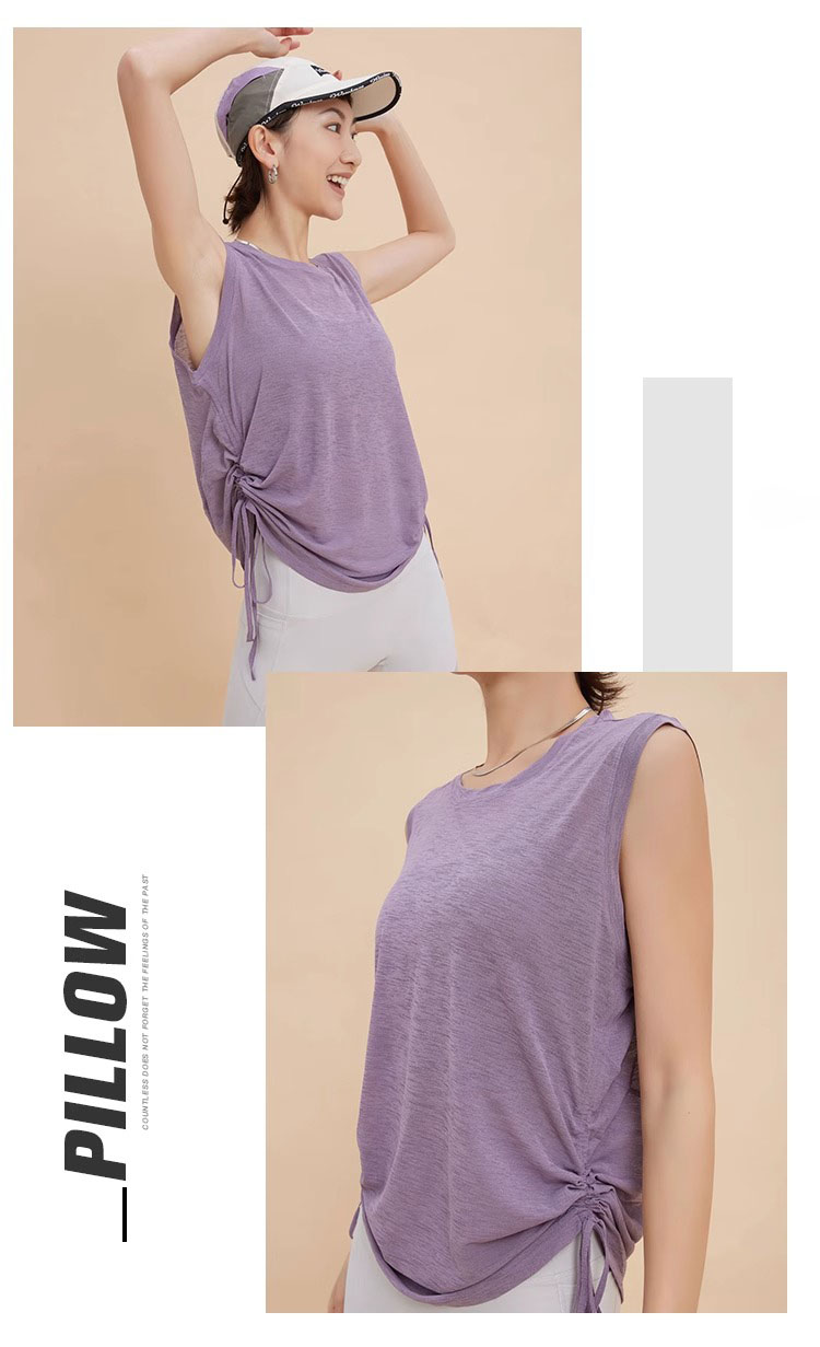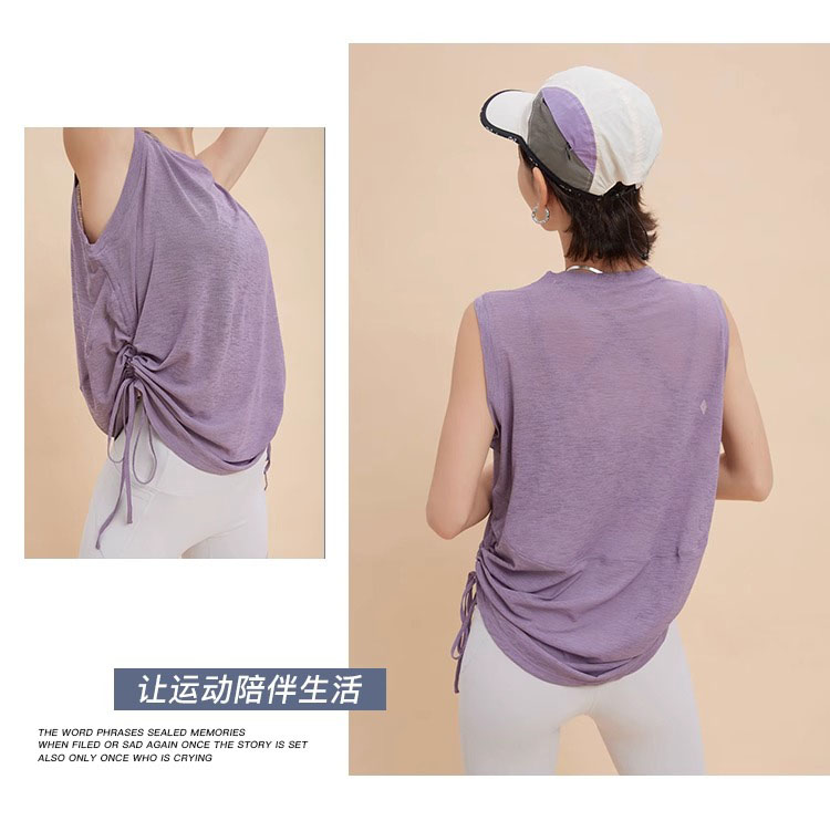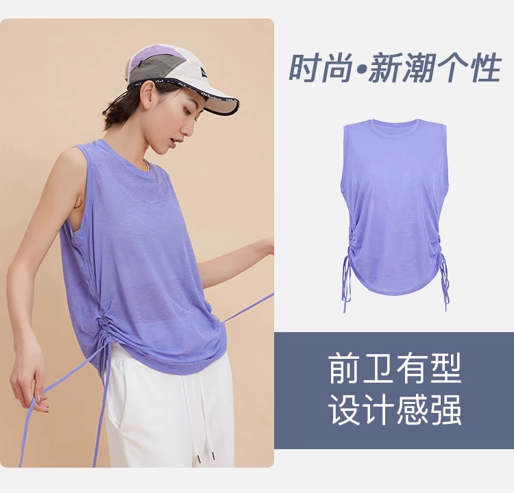 跃牌【安琪拉系列】新款抽绳运动上衣女宽松休闲速干无袖瑜伽背心DX-6403
