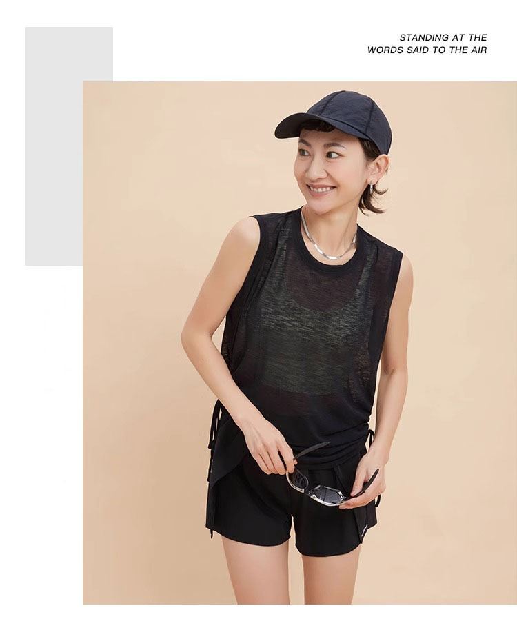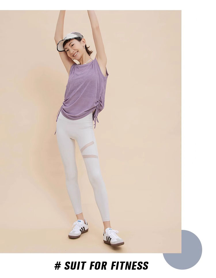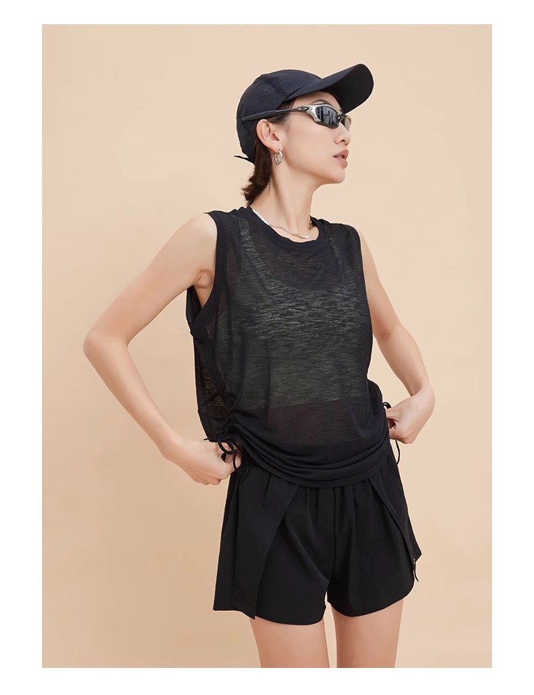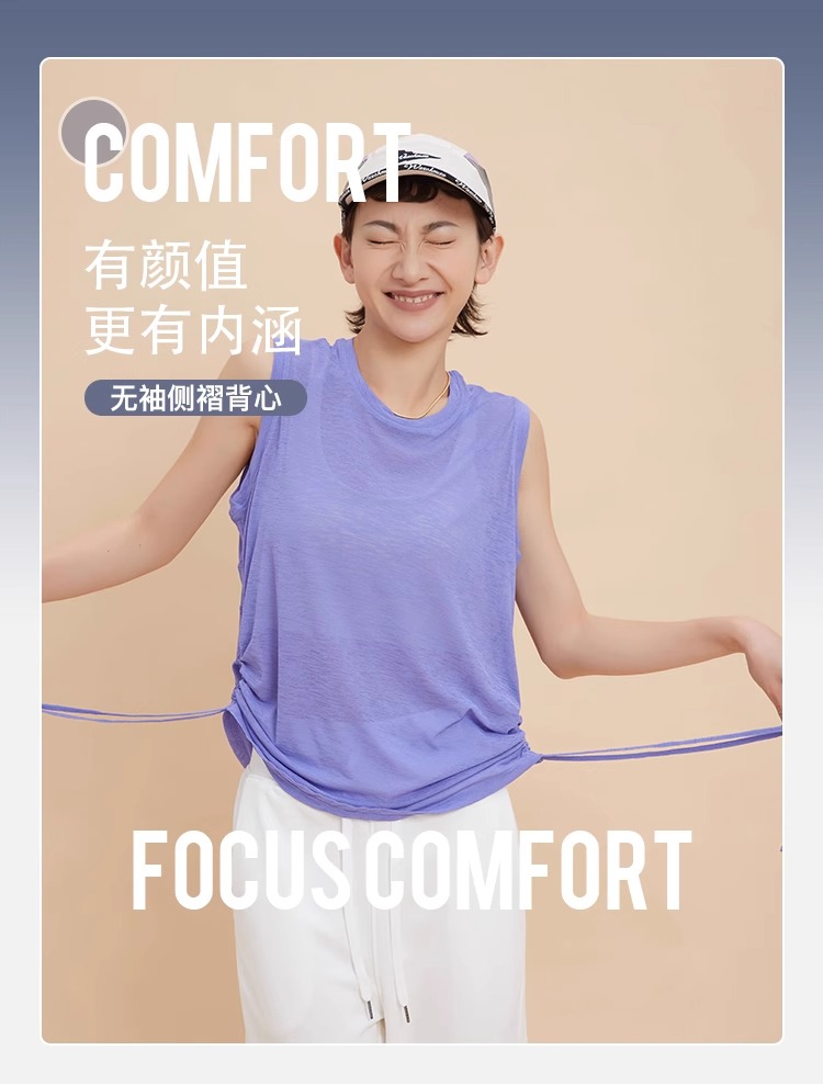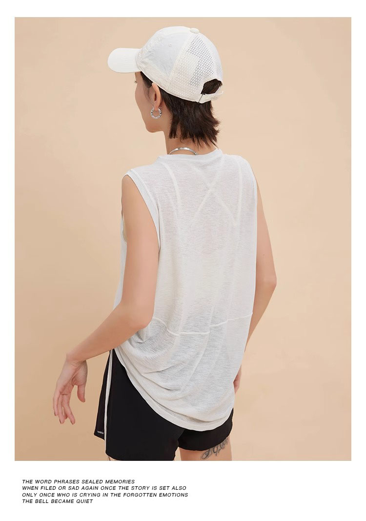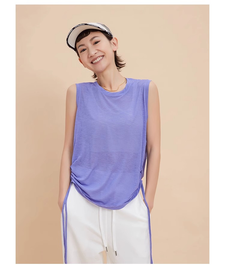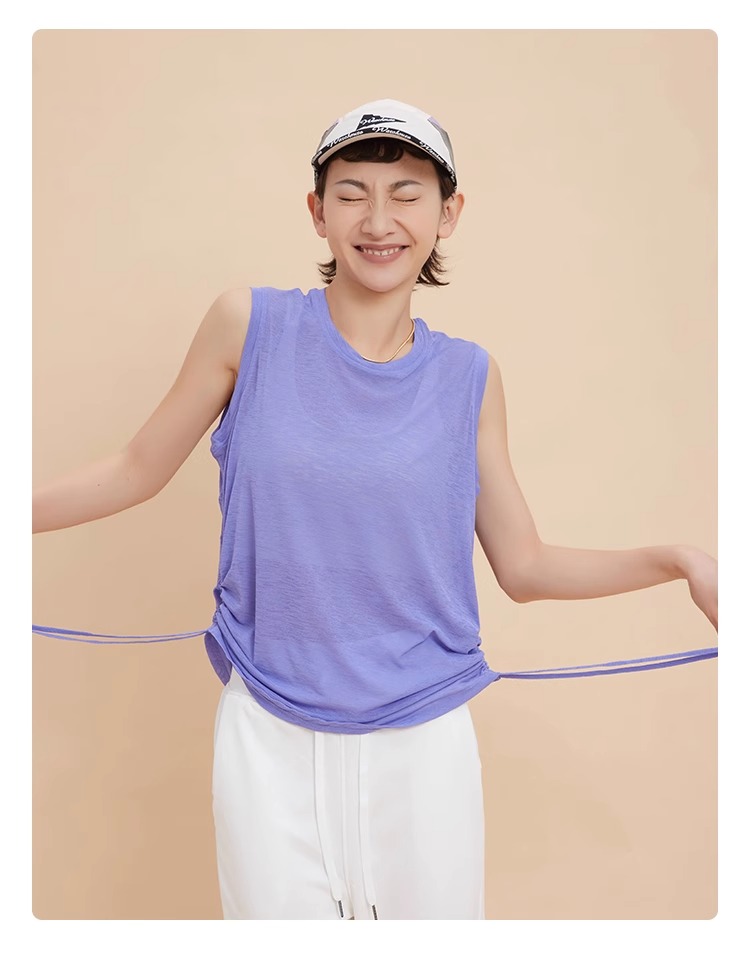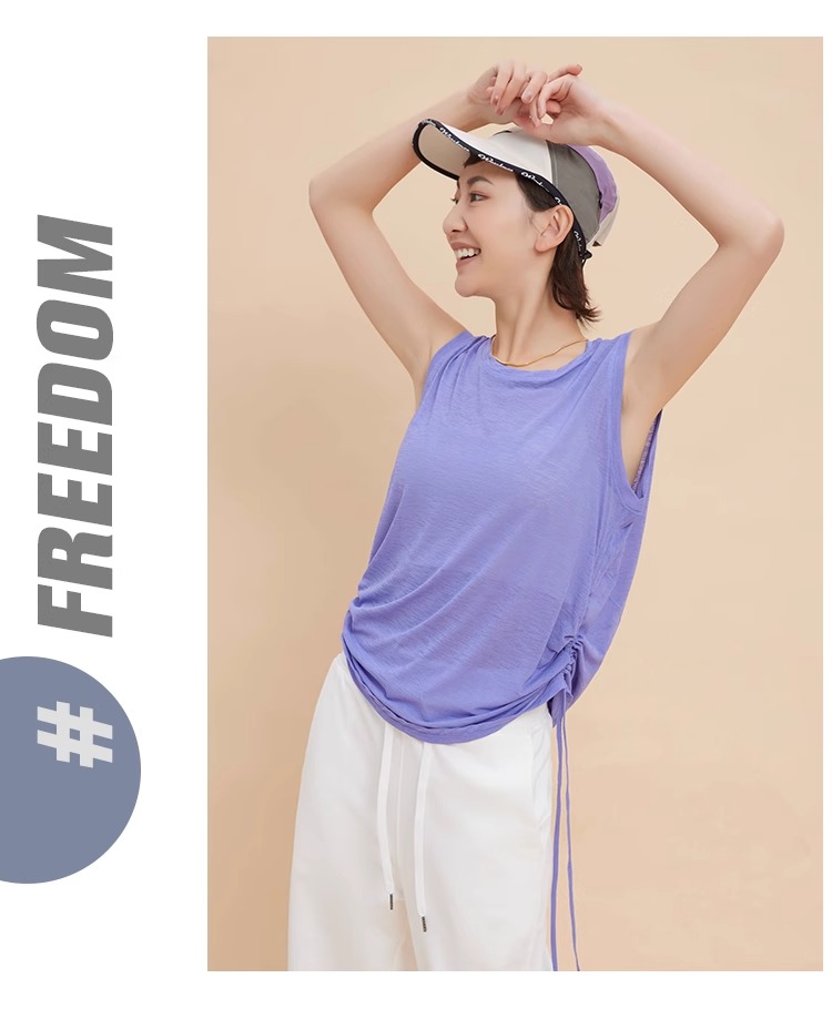 跃牌【安琪拉系列】新款抽绳运动上衣女宽松休闲速干无袖瑜伽背心DX-6403