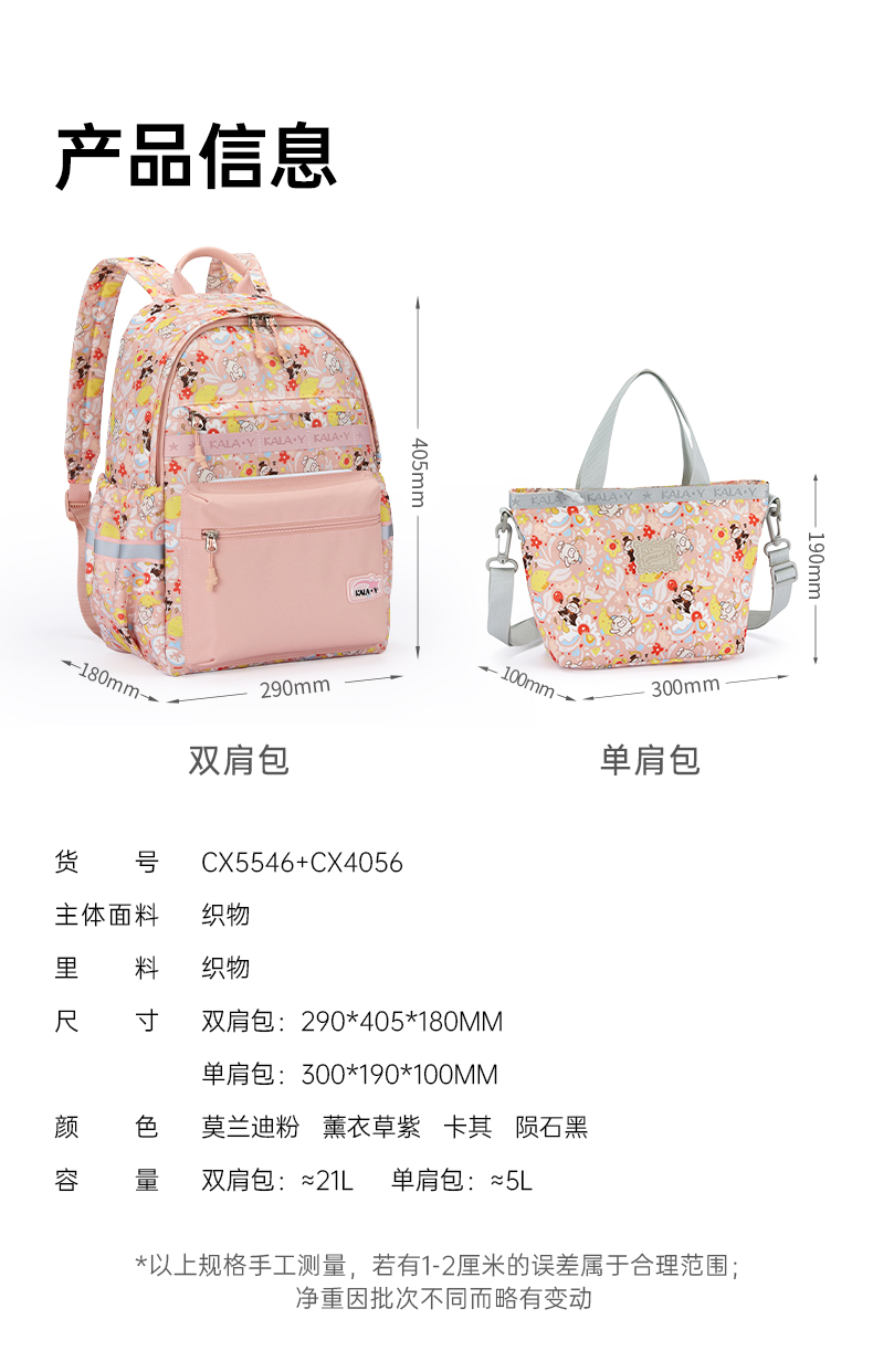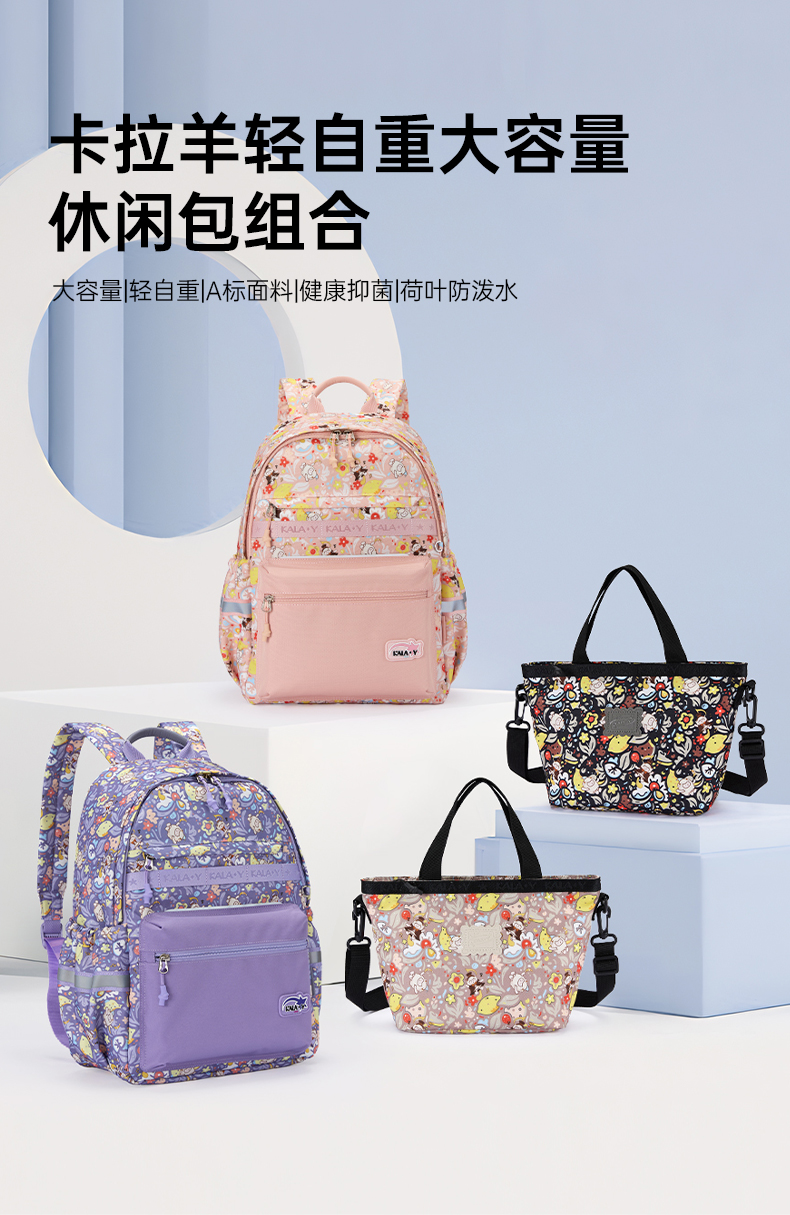 【组合2件套】卡拉羊休闲大容量学生书包简约双肩包轻便单肩包CX5546+CX4056