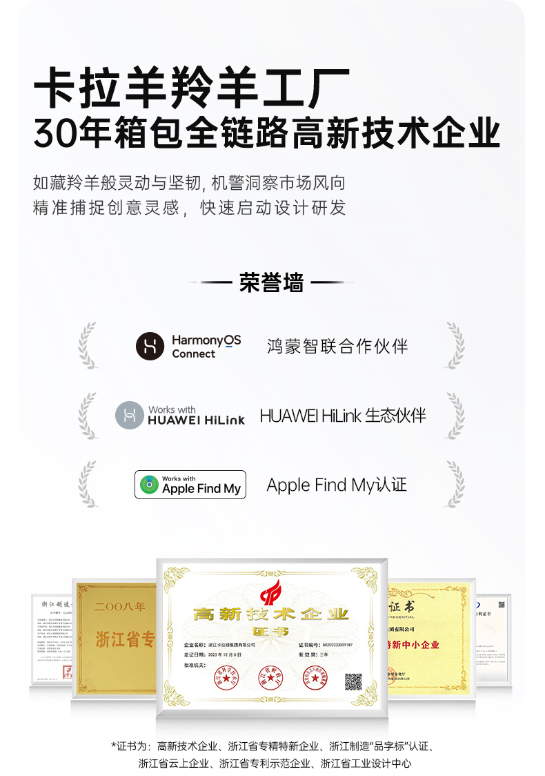 - 浙江卡拉扬集团有限公司专注箱包27年,旗下有卡拉羊和9UM两大品牌,有浙江海宁和江苏沭阳两大工厂,拥有多项知识产权,是集智能化、设计生产、品牌营销为一体的综合型企业。