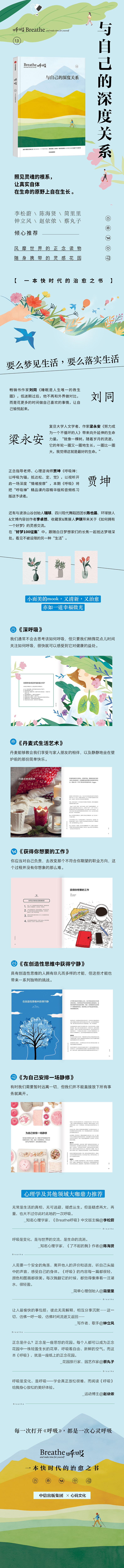 Breathe编辑部,Breathe系列Mook致力于帮助你增加与自己相处的时间,这一身心健康生活指南包括5个部分——幸福、生活、正念、创造力和逃离。
