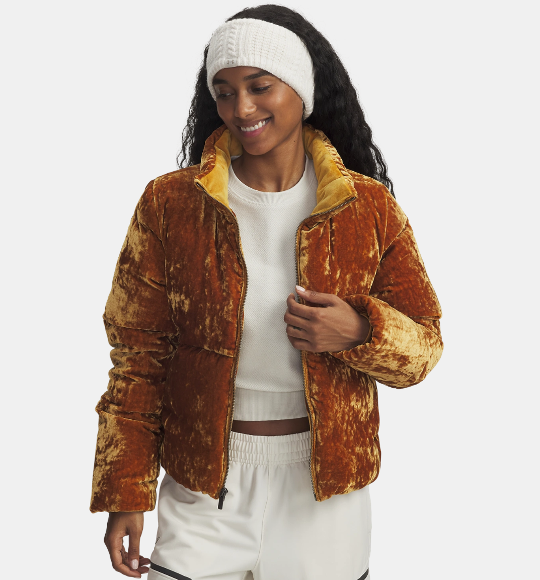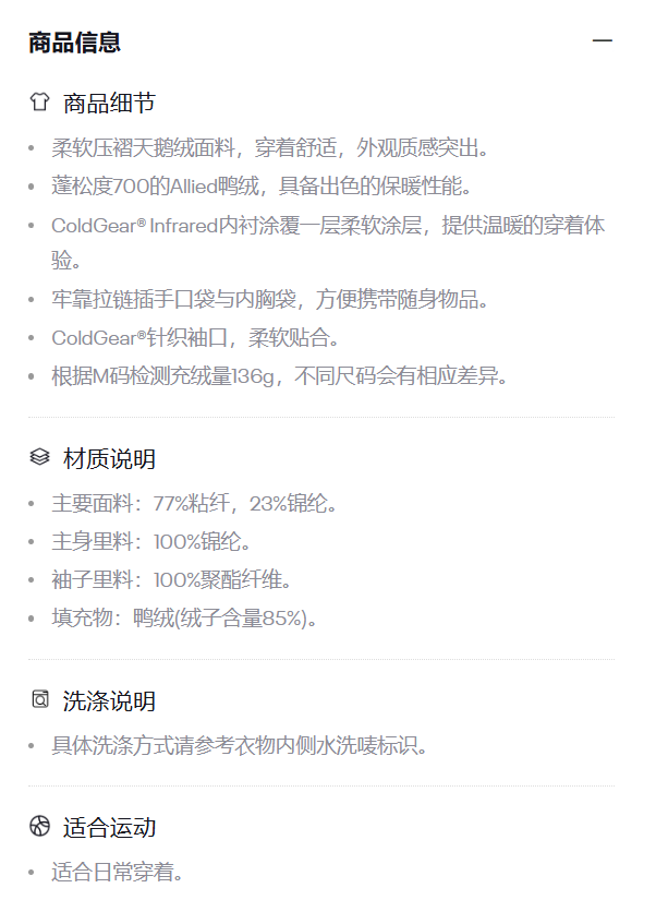 安德玛女子UA Limitless热冬系列700蓬天鹅绒短款鸭绒羽绒服6008820-822