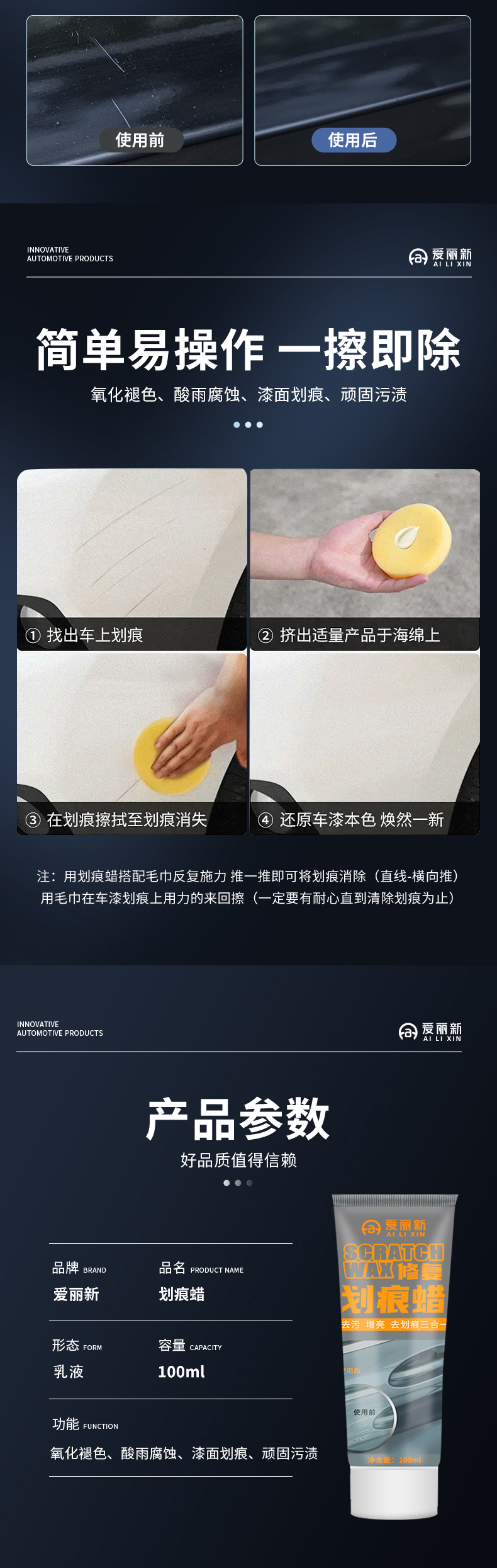 【年中大促2支装送养车布】爱丽新汽车蜡划痕蜡车漆通用去污提亮