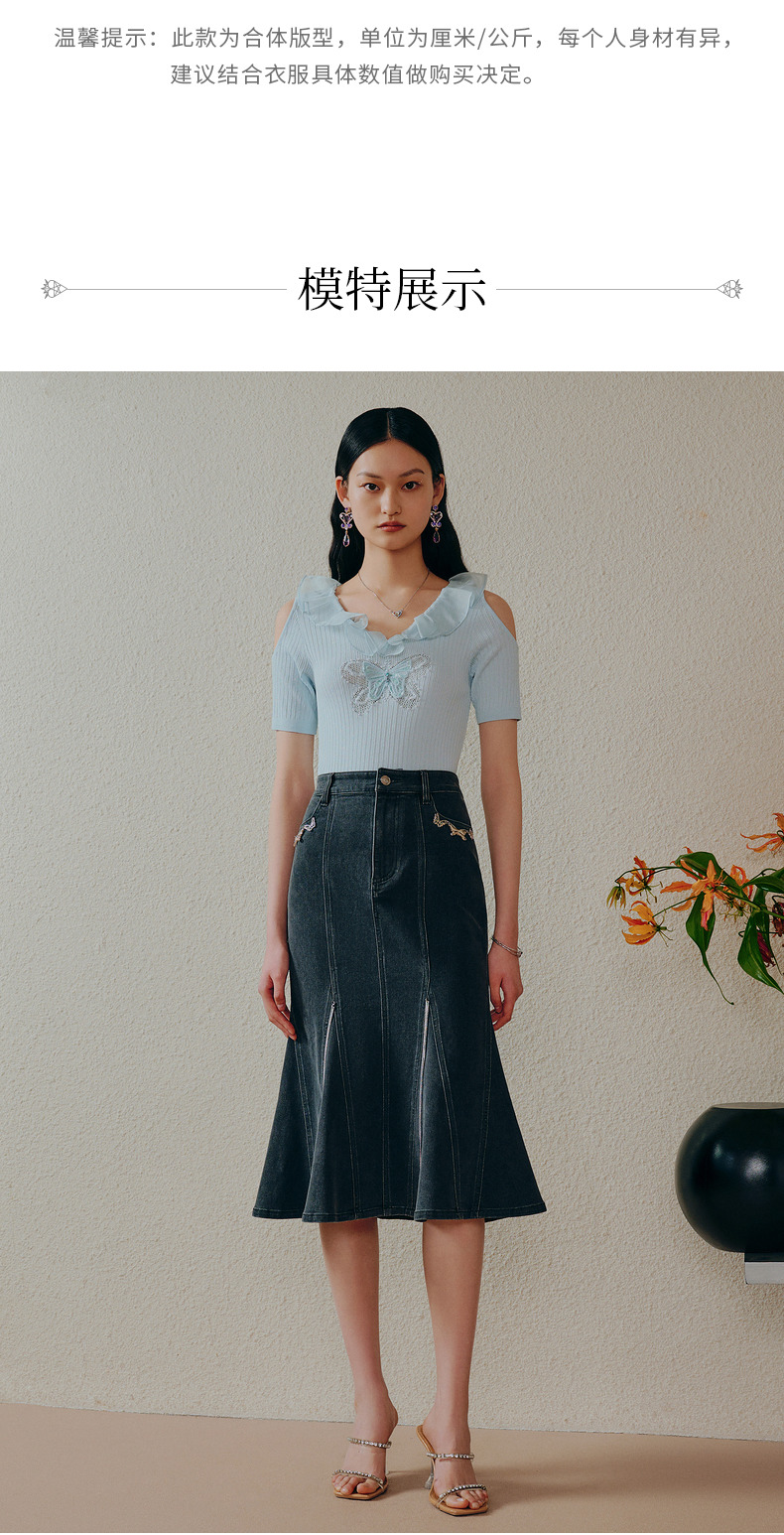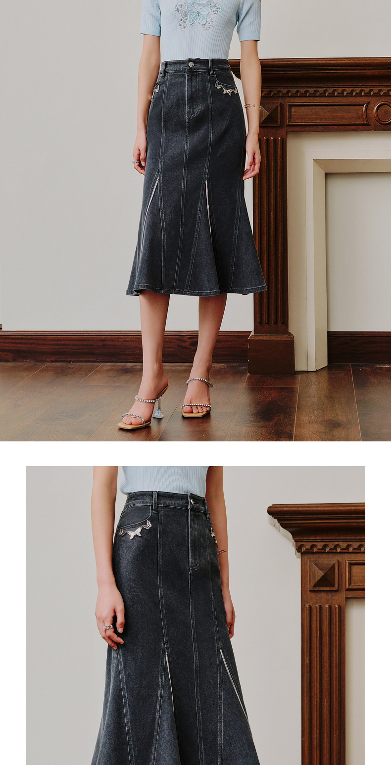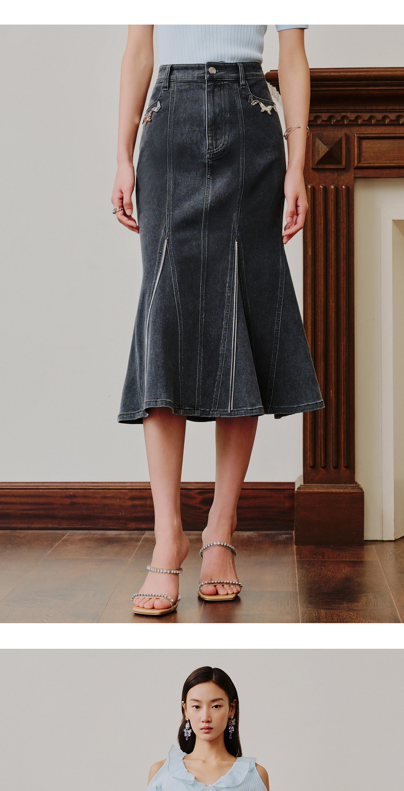 蝴蝶仙紫系列2.0MAXRIENY森系精灵牛仔鱼尾半身裙(货号:MC88SK256)