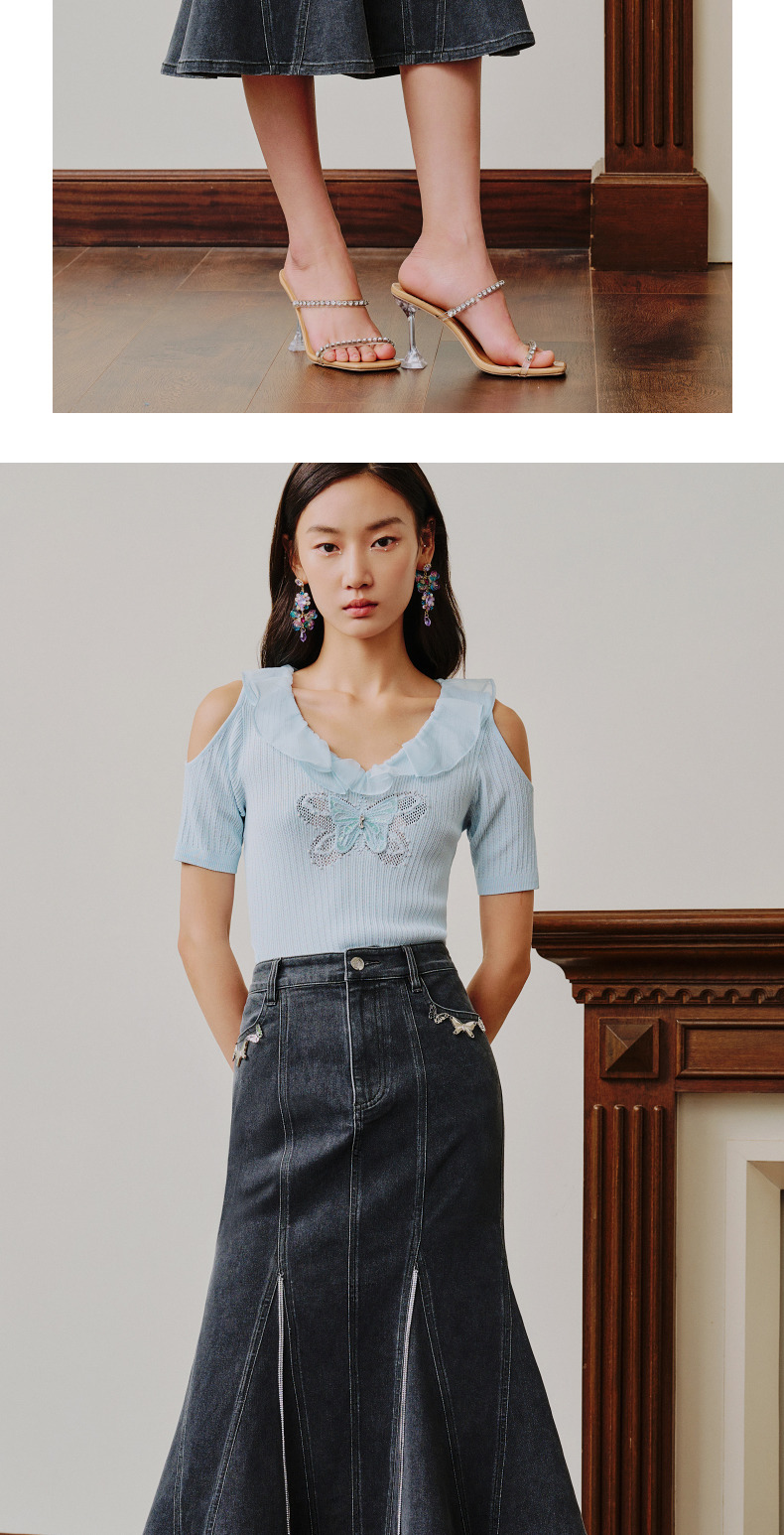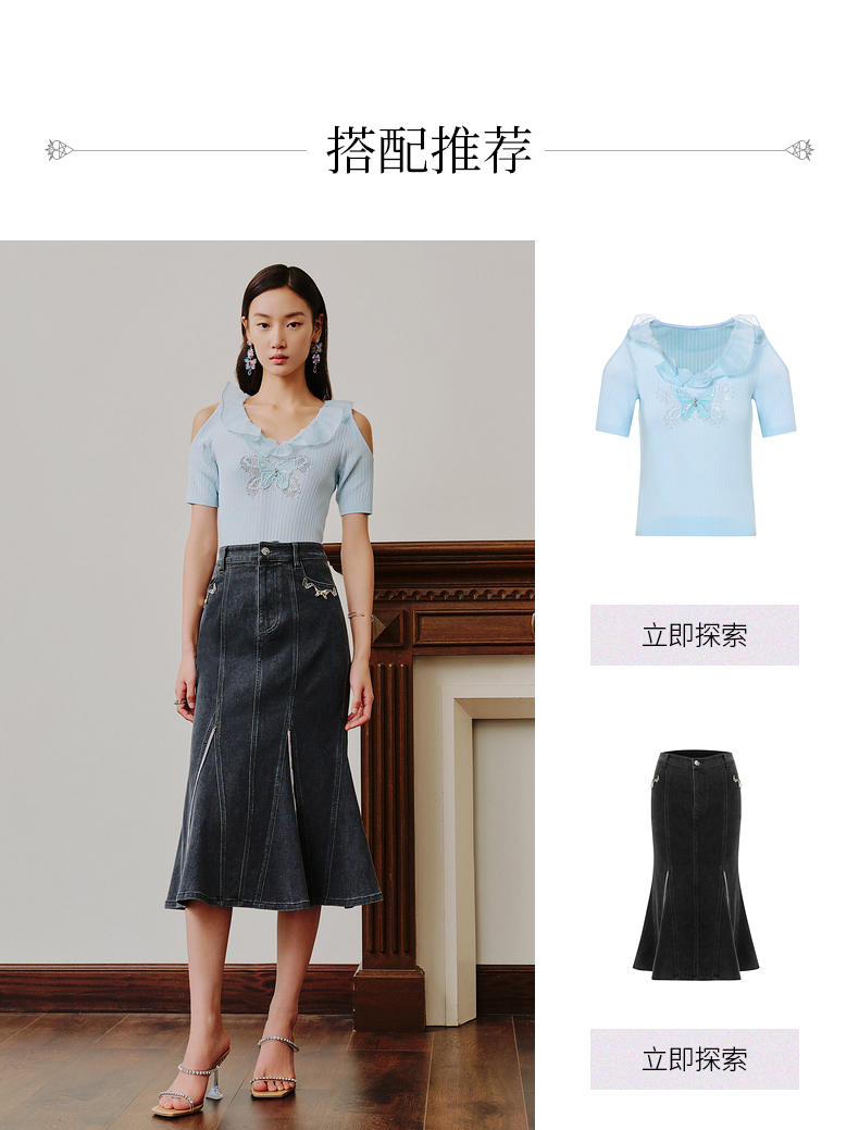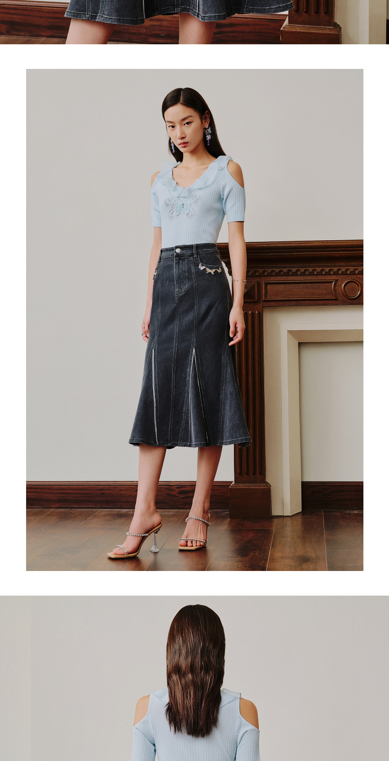 蝴蝶仙紫系列2.0MAXRIENY森系精灵牛仔鱼尾半身裙(货号:MC88SK256)