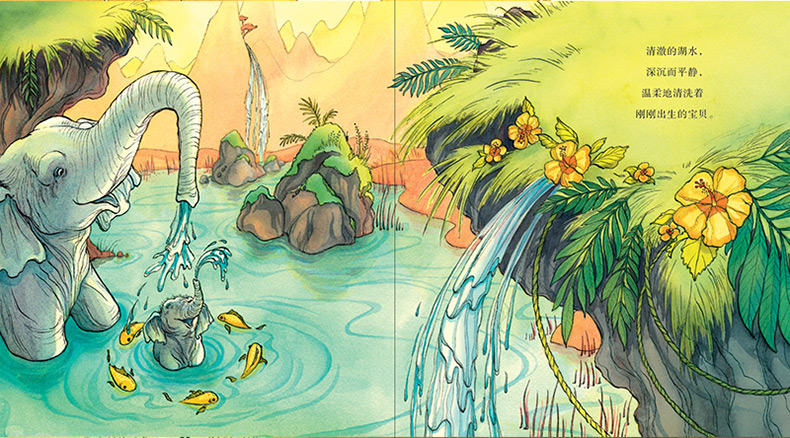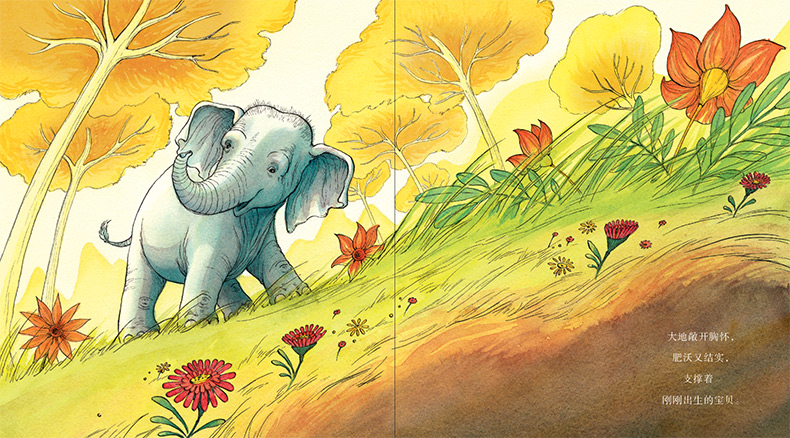 2.本书文字富有韵律,读起来朗朗上口;插图绚丽精美,跨页大图令人视野开阔,将广袤原野上一头刚刚出生的小象及其和睦大家族的狂欢场面刻画得栩栩如生。
