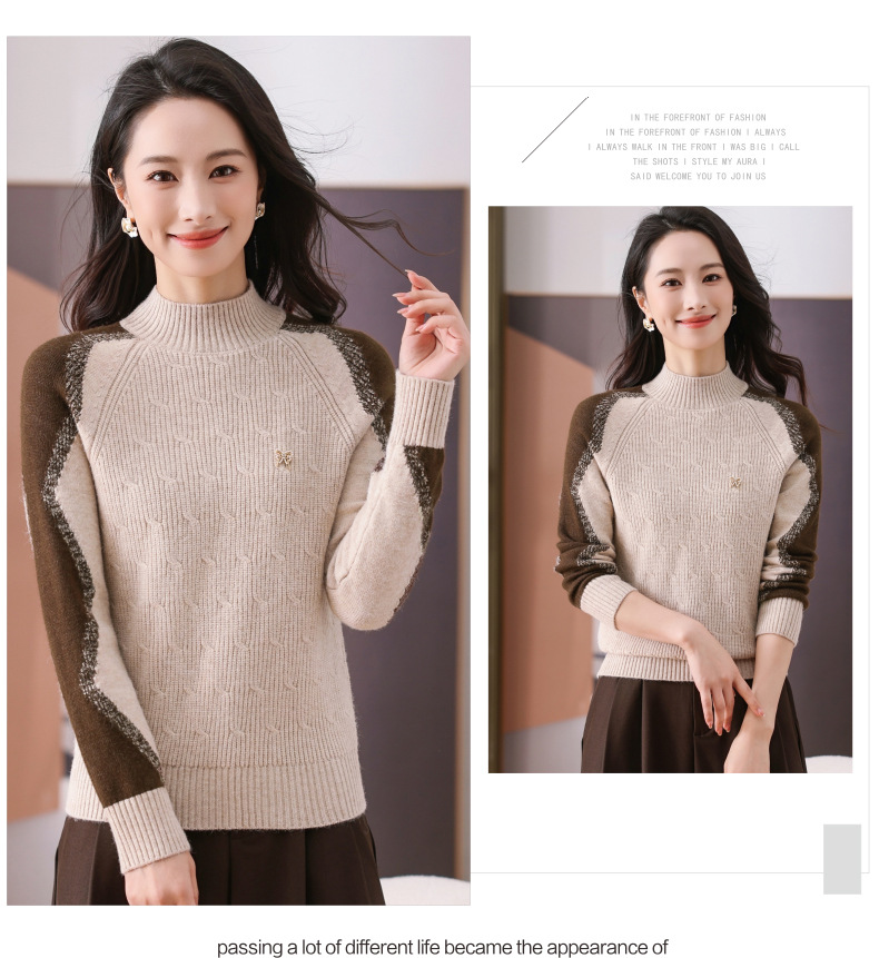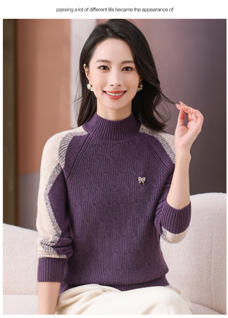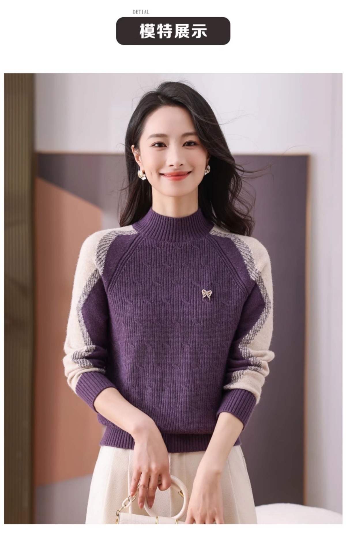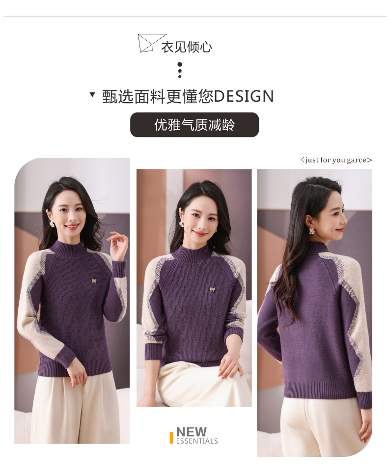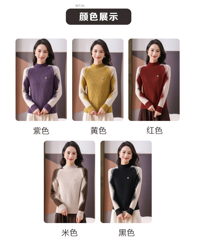 CC-103-58032毛衣女士秋冬季2025新款洋气拼色显瘦遮肉宽松打底衫内搭