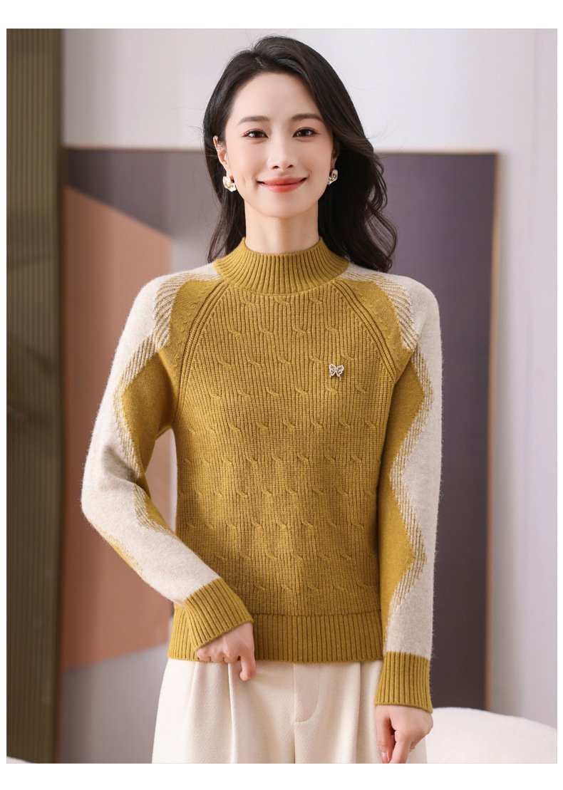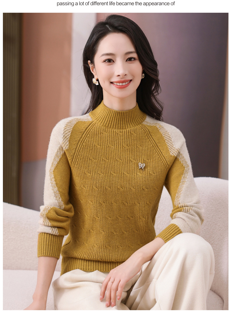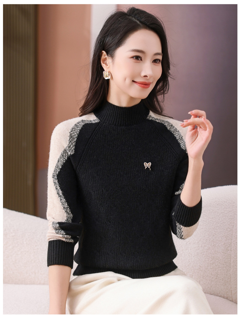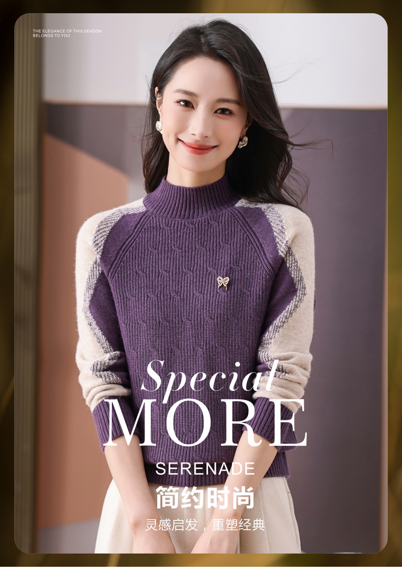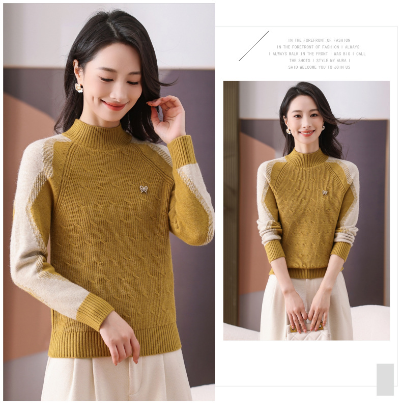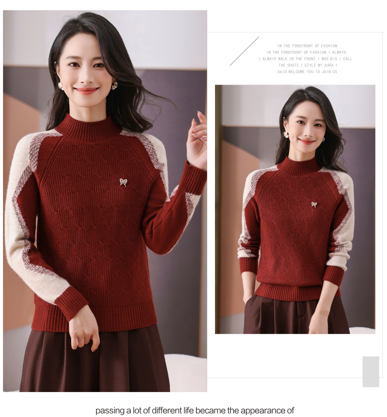 CC-103-58032毛衣女士秋冬季2025新款洋气拼色显瘦遮肉宽松打底衫内搭