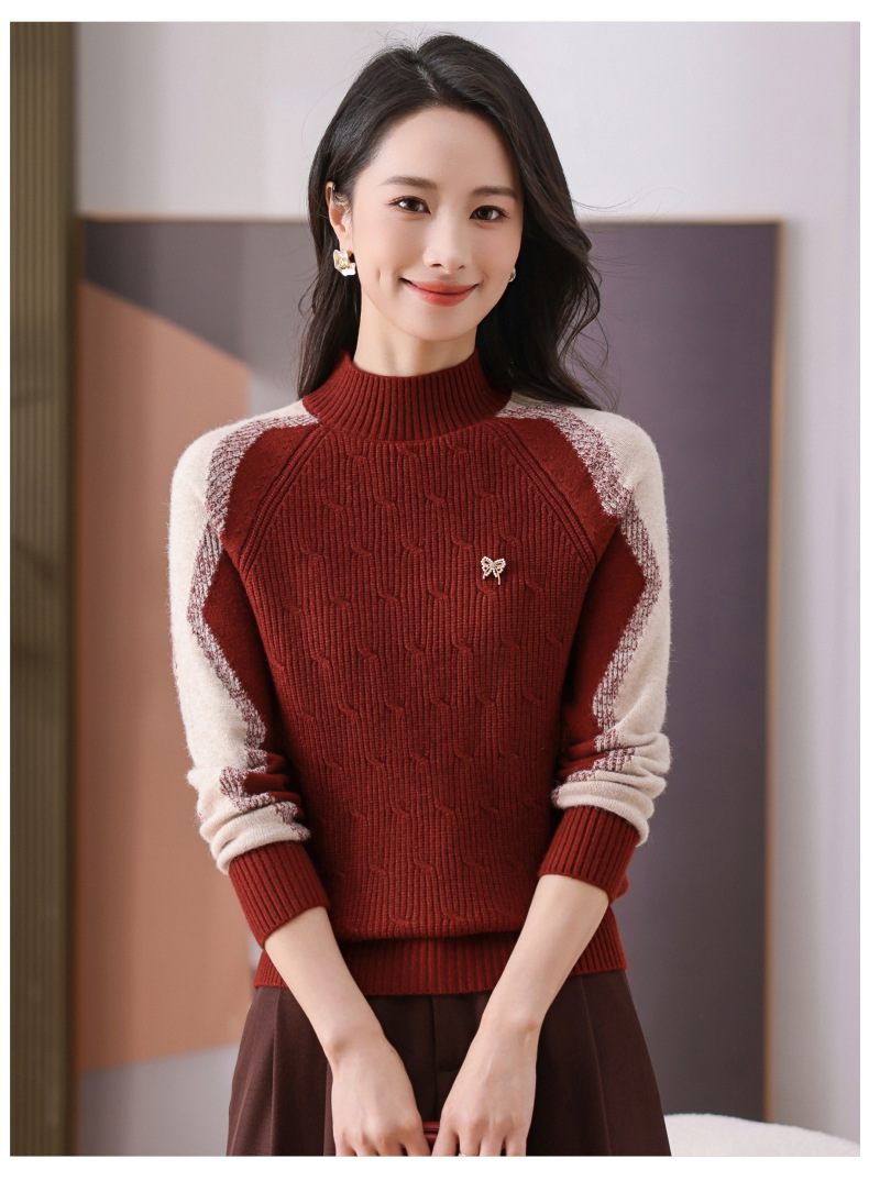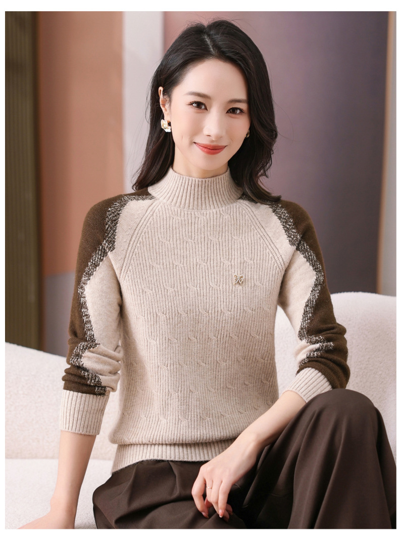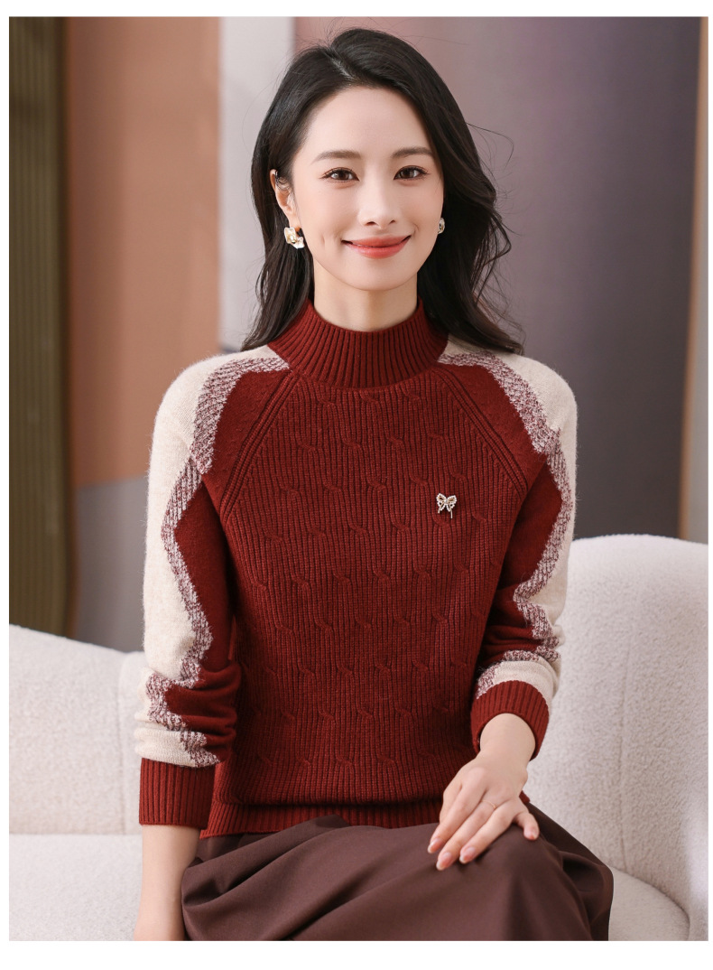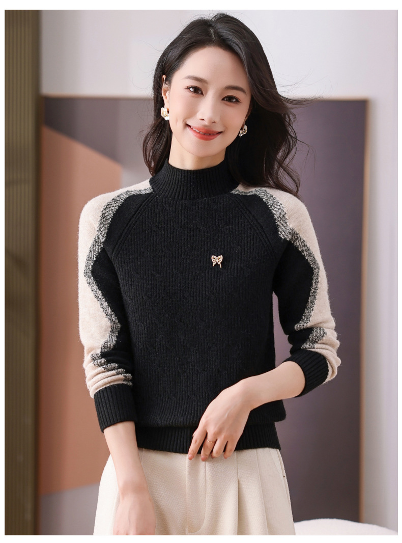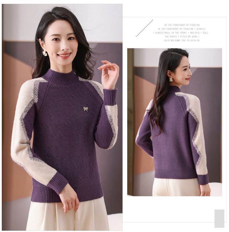CC-103-58032毛衣女士秋冬季2025新款洋气拼色显瘦遮肉宽松打底衫内搭