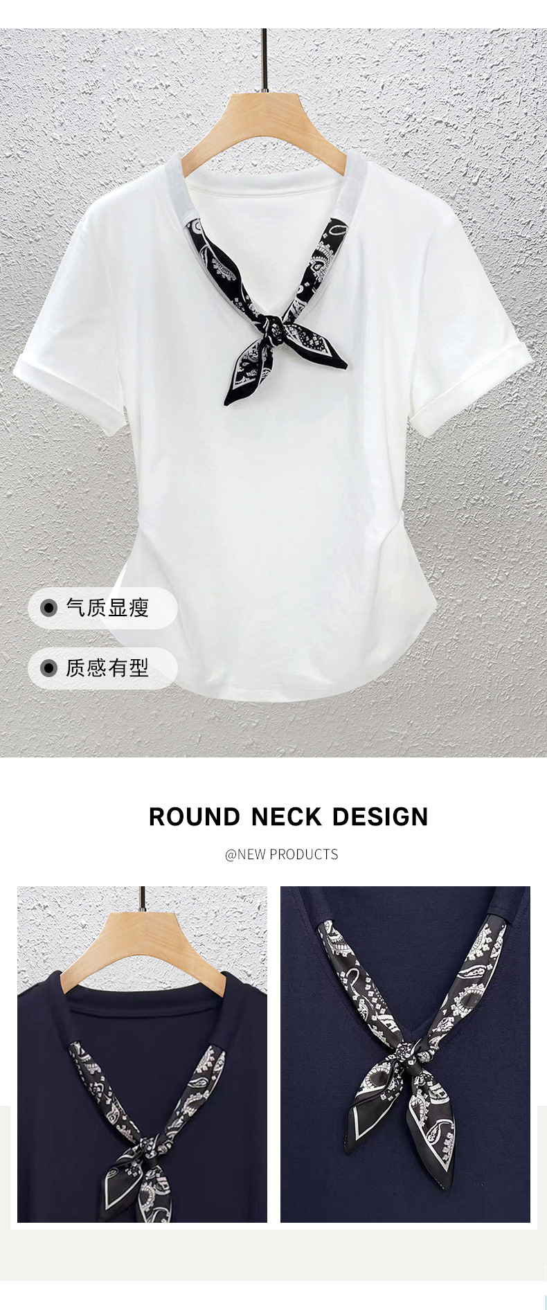 「自」全新升级【铂金会员109/天猫149/差价40】(65456)洛诗琳设计感丝巾T恤2025年夏季新款褶皱掐腰显瘦上衣女