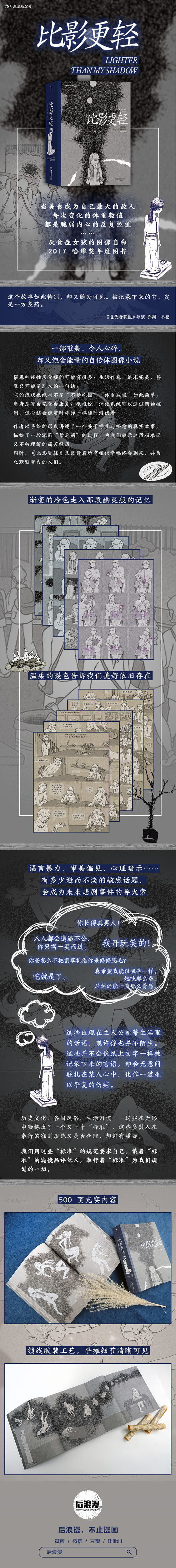 后浪正版 比影更轻(厌食症女孩的图像自白 2017年哈维奖“年度图书”)后浪漫漫画 手绘呈现关于挣扎与痊愈 自传体图像小说书籍