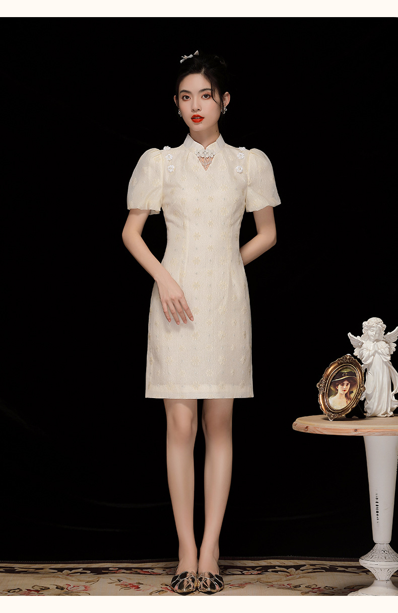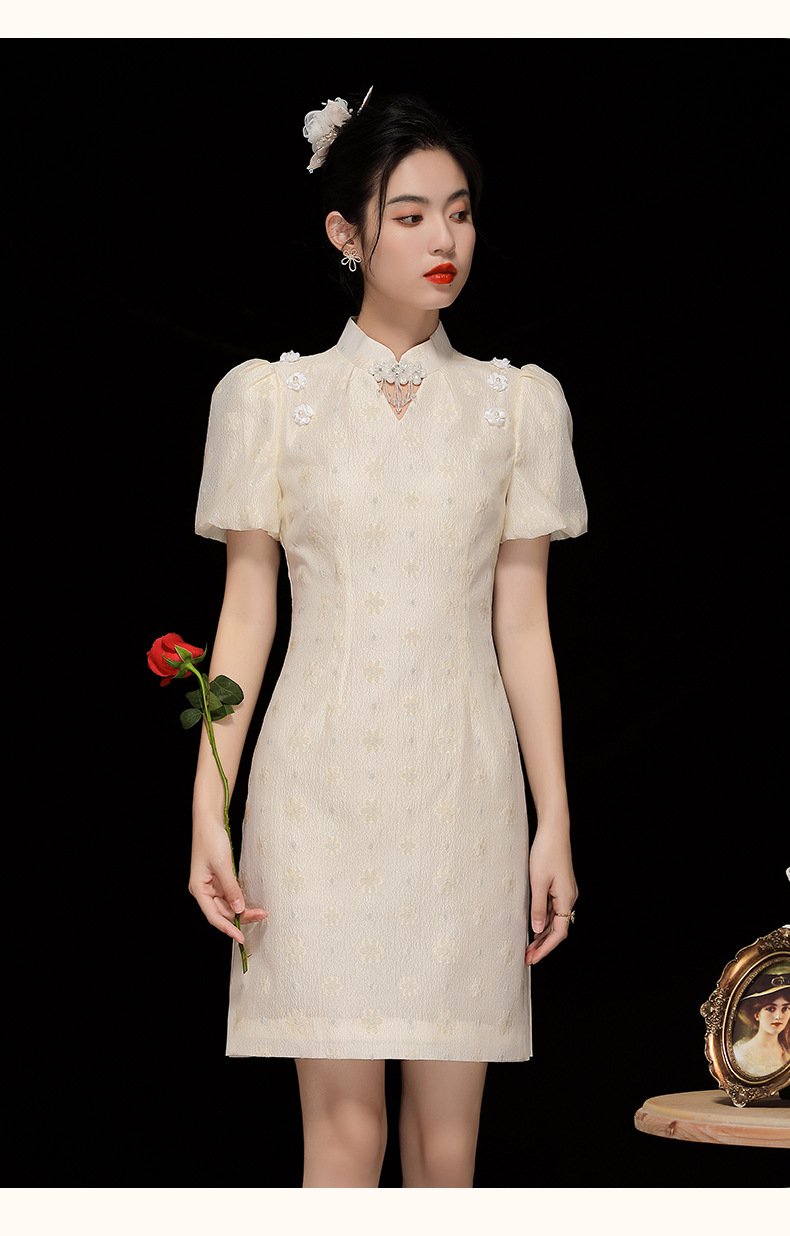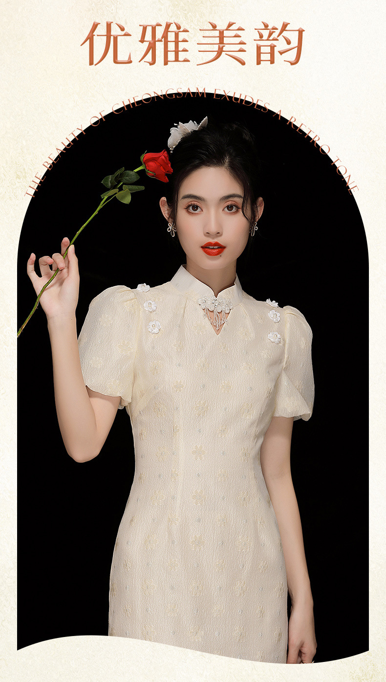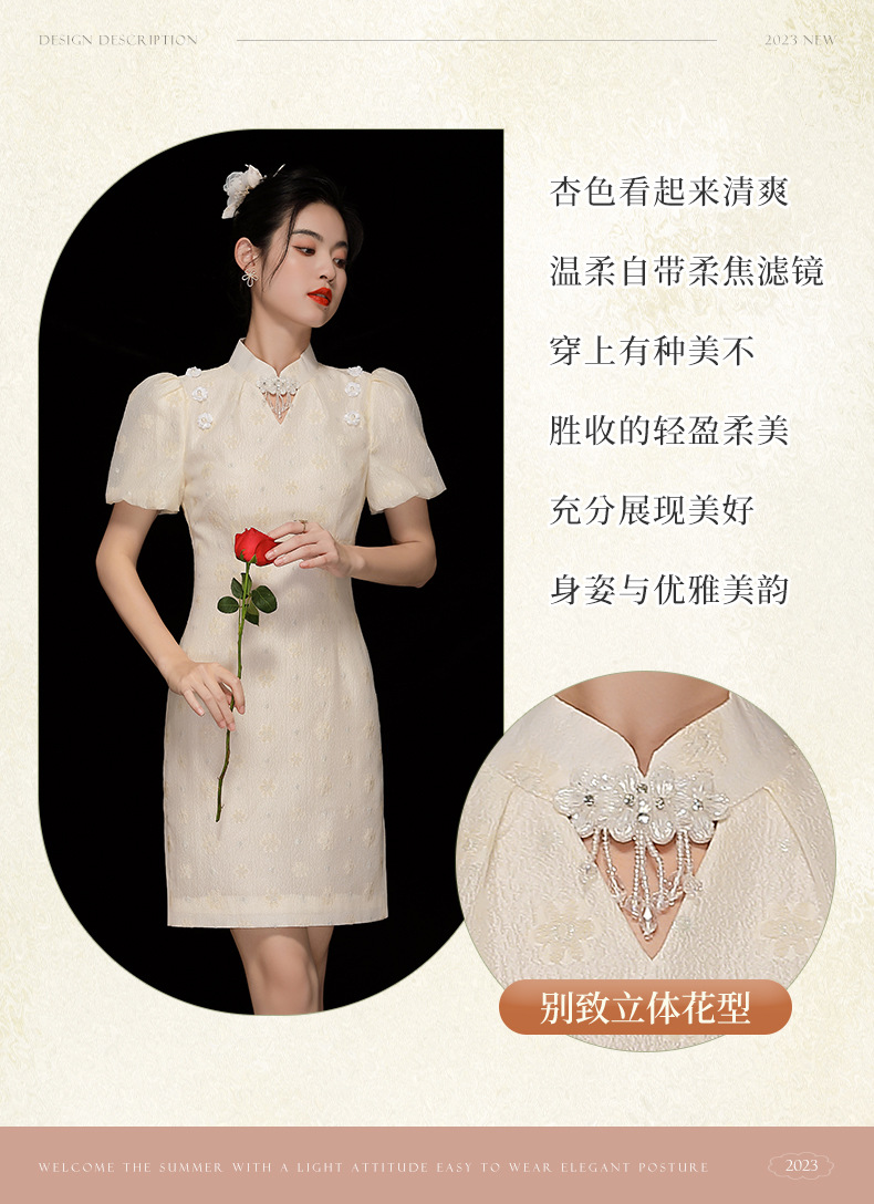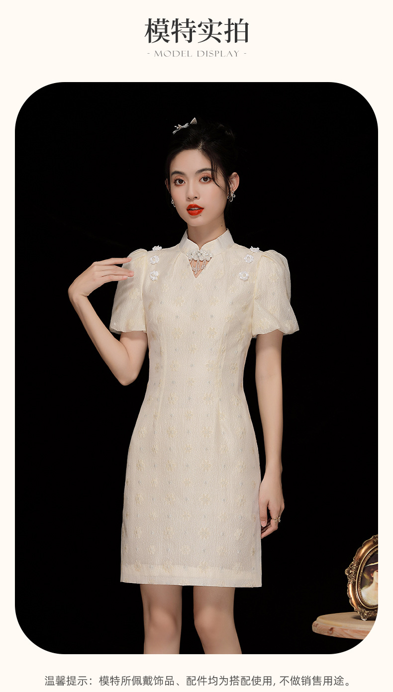 「自」全新升级【铂金会员220/天猫299/差价79】(35535)洛诗琳复古气质提花连衣裙2025夏季国风改良短款旗袍裙女