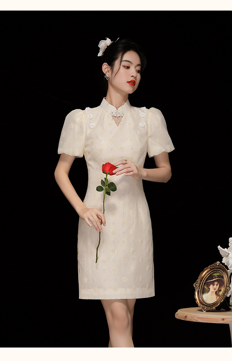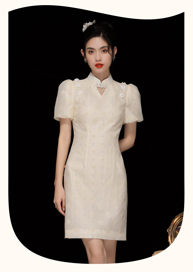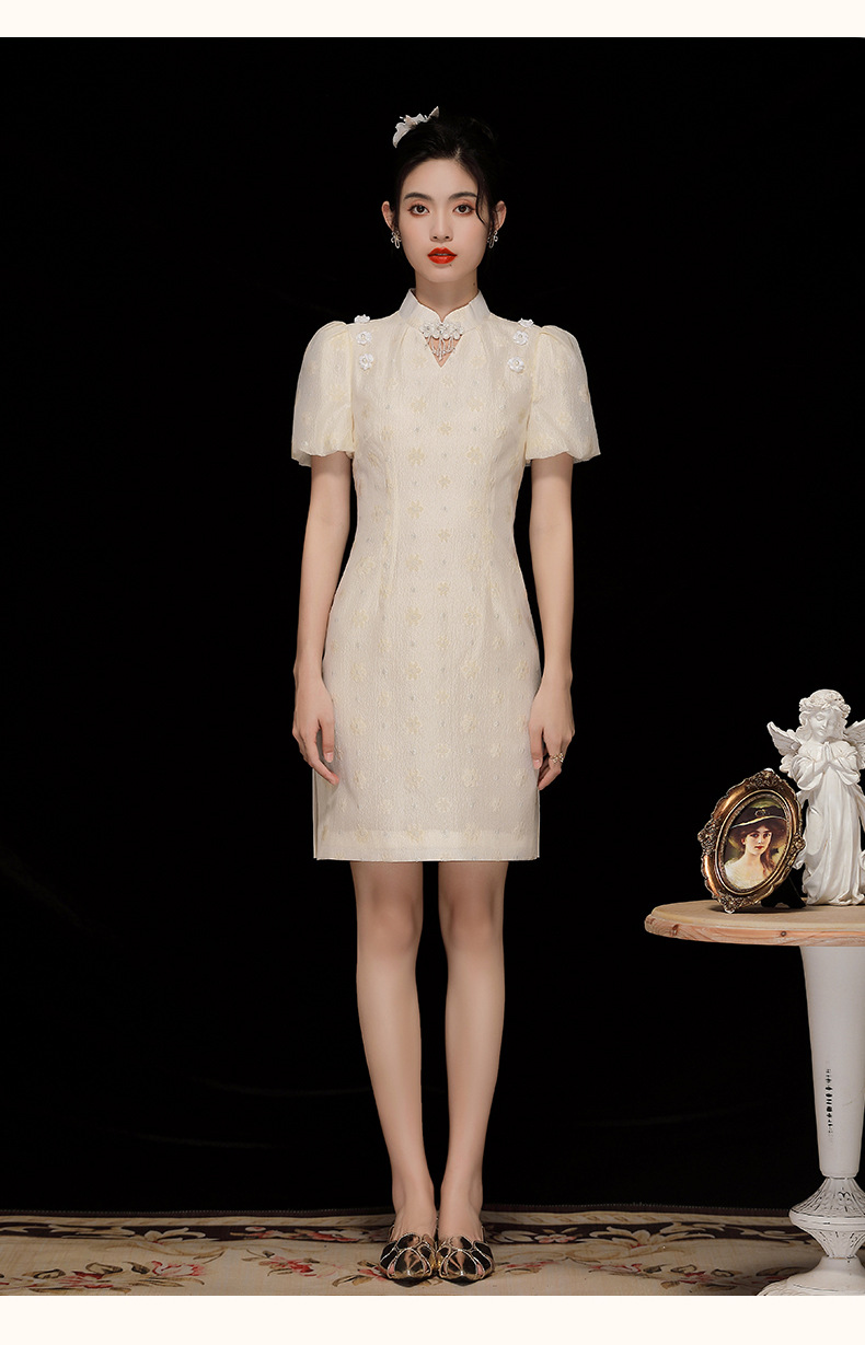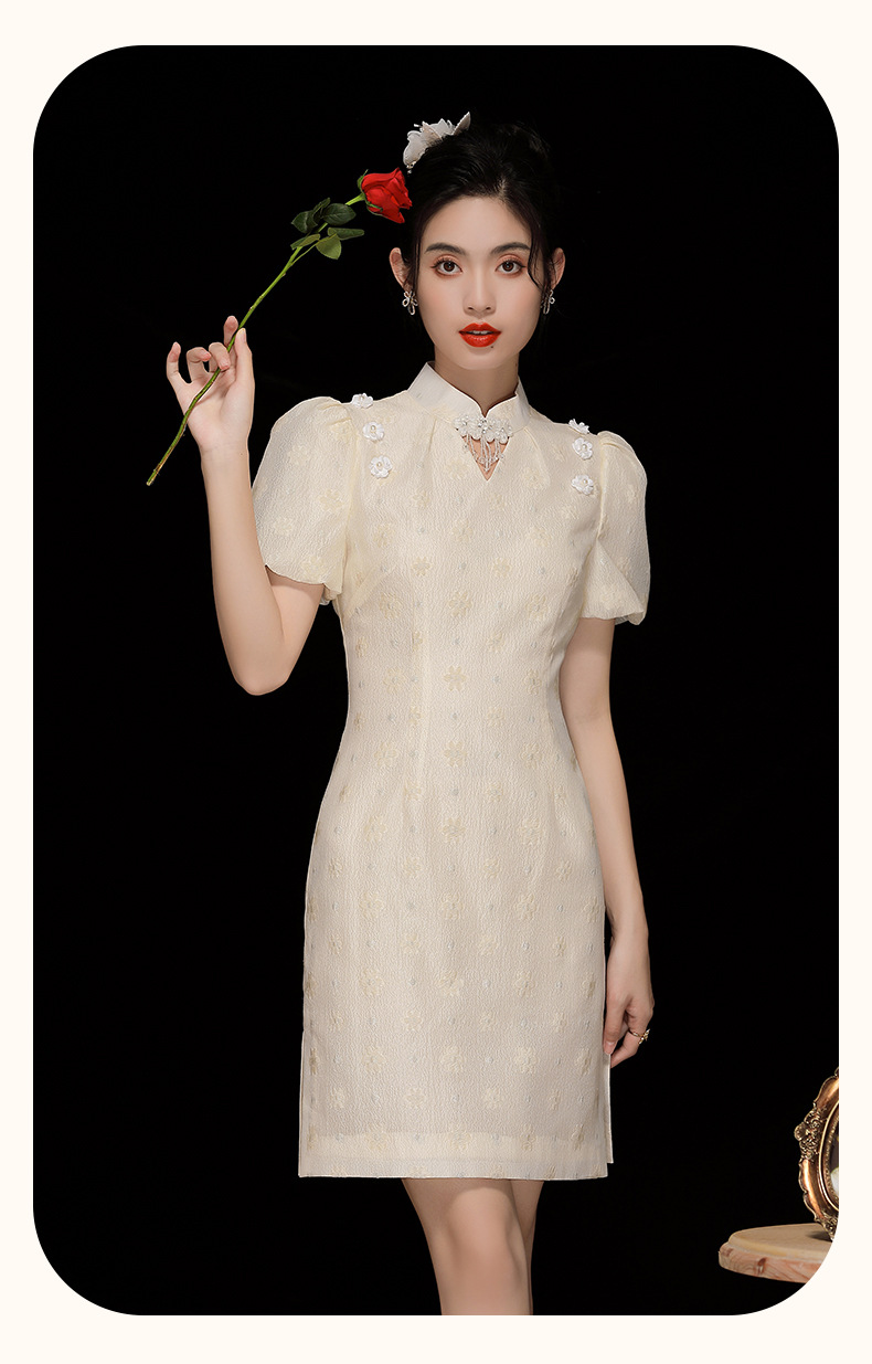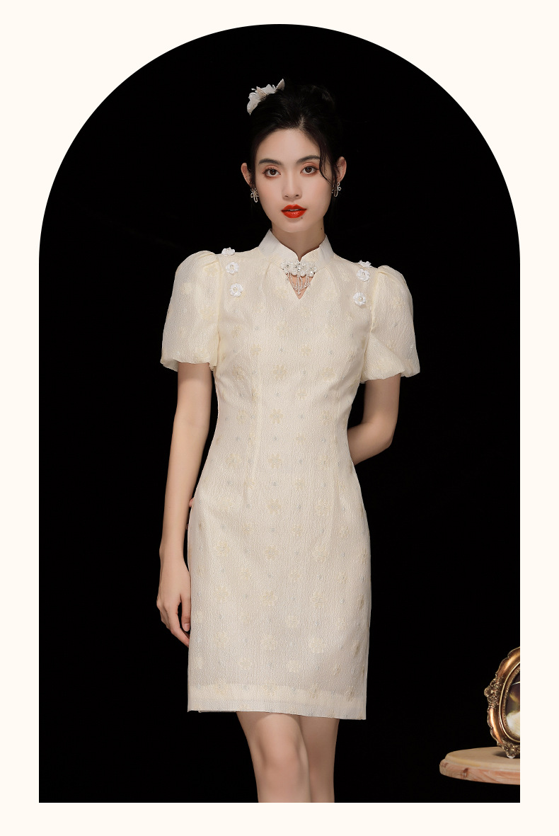 「自」全新升级【铂金会员220/天猫299/差价79】(35535)洛诗琳复古气质提花连衣裙2025夏季国风改良短款旗袍裙女