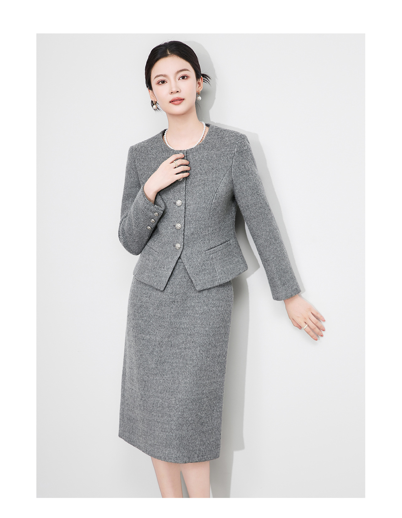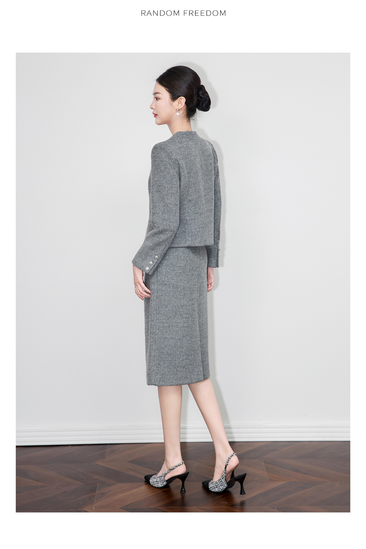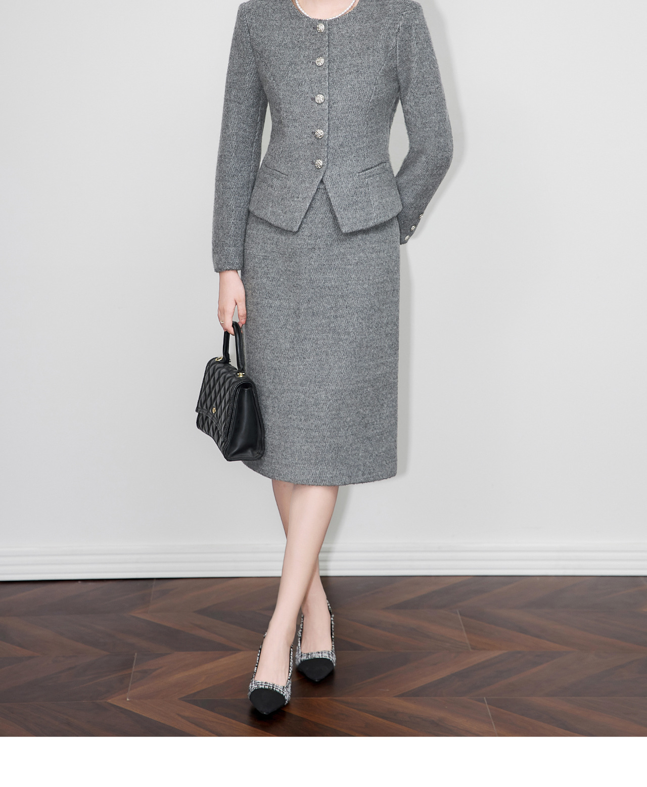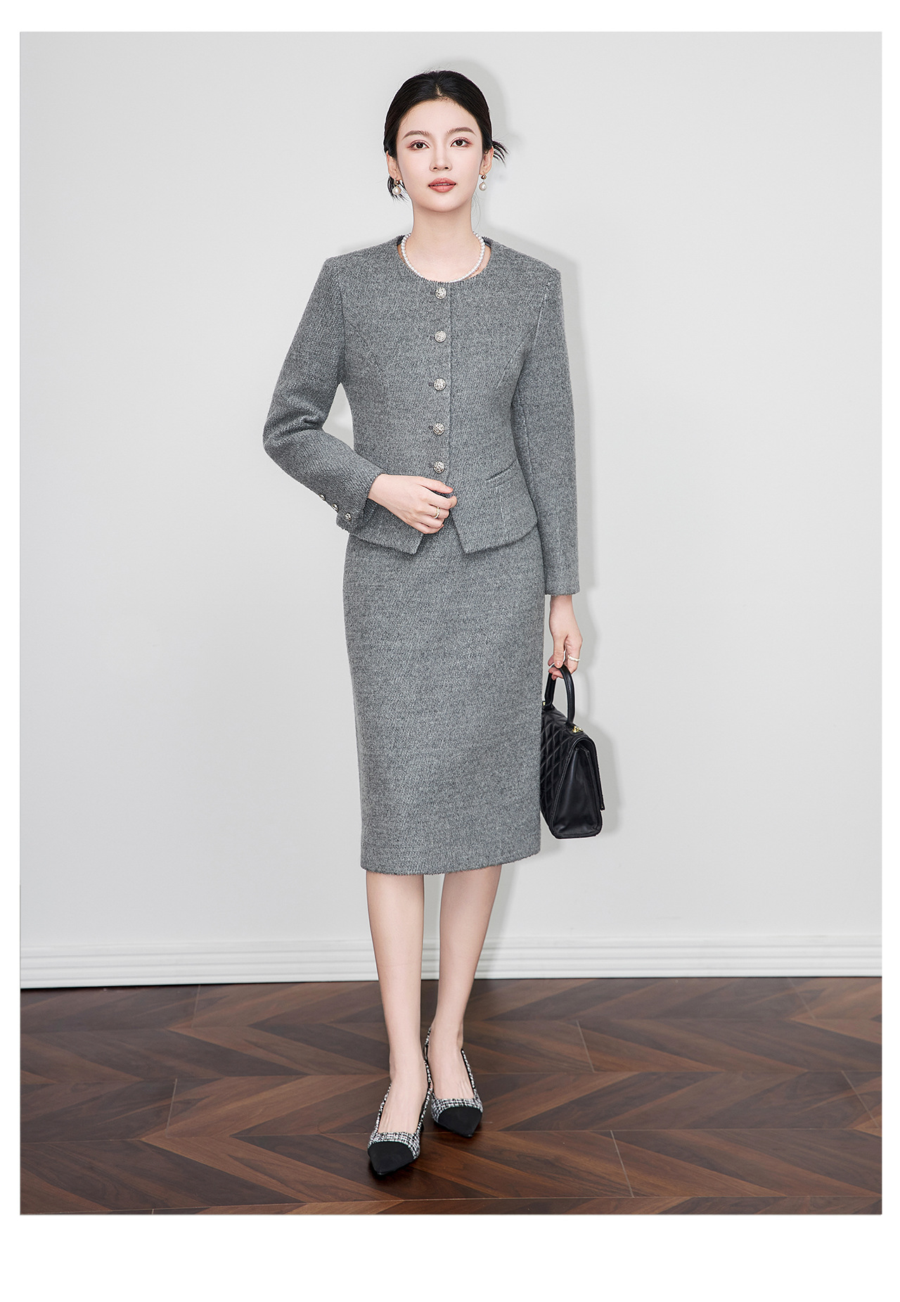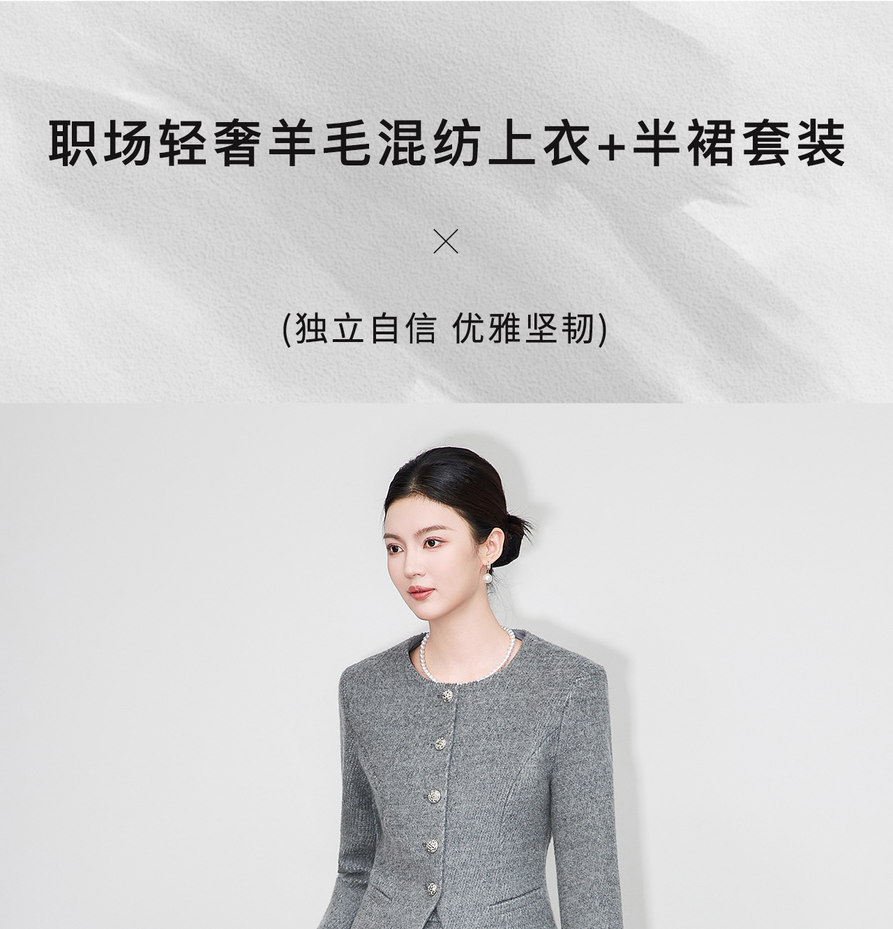 「高货wl」全新升级【铂金会员441/天猫589/差价148】(99055)洛诗琳2025秋冬通勤加厚毛呢修身外套直筒半身裙两件套女