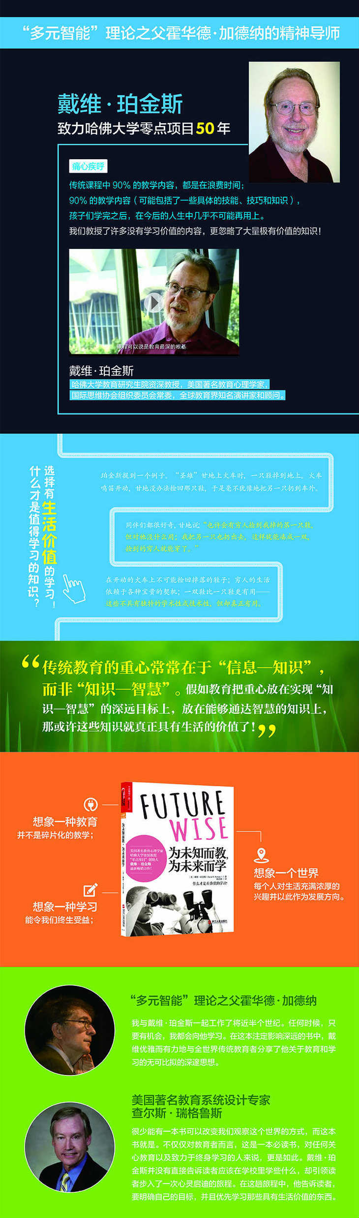 戴维·珀金斯哈佛大学教育研究生院资深教授,美国著名教育心理学家,国际思维协会组织委员会常委,全球教育界知名演讲家和顾问。