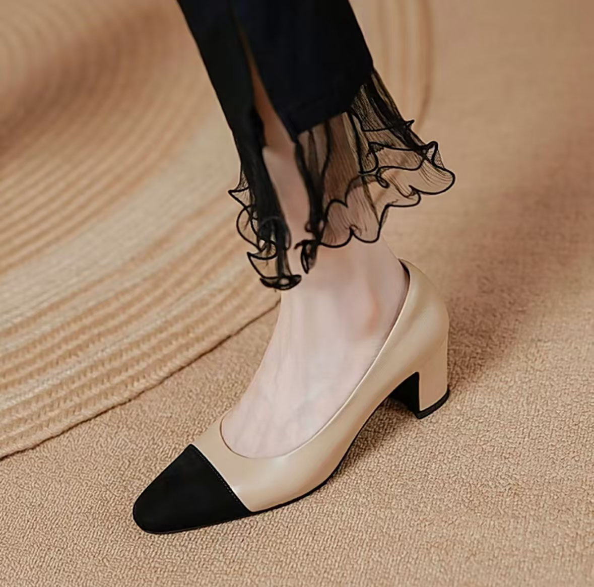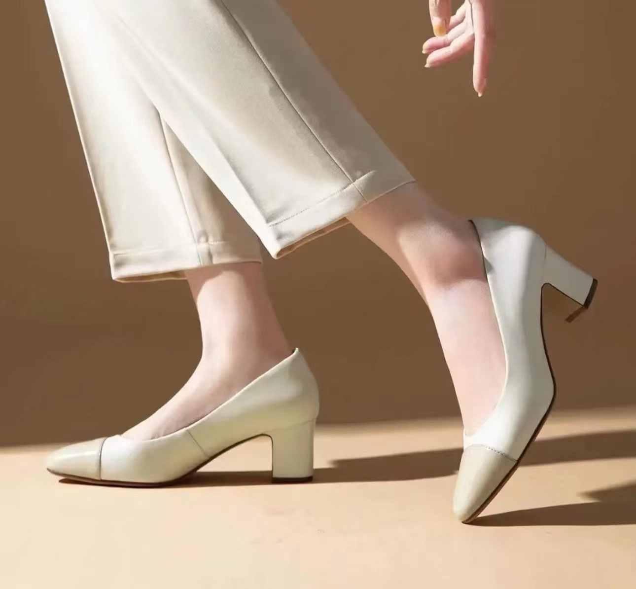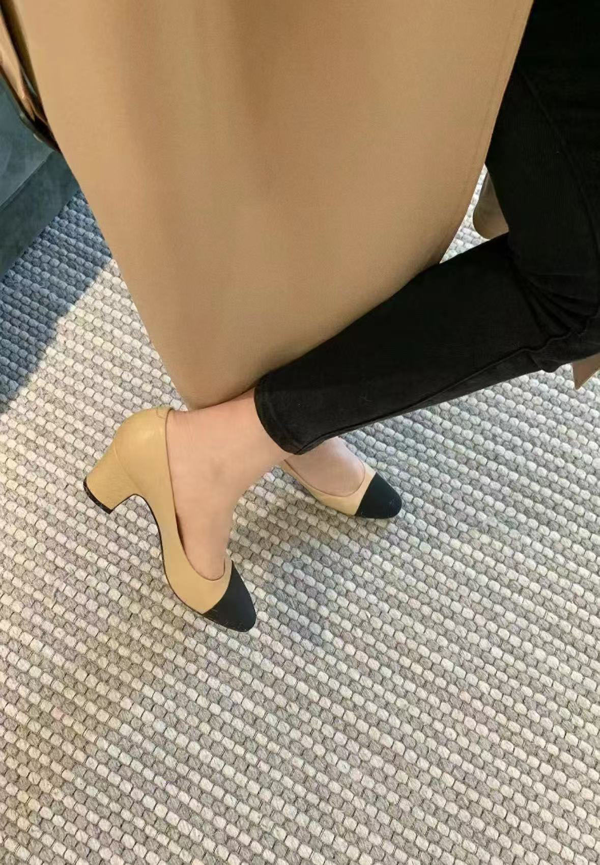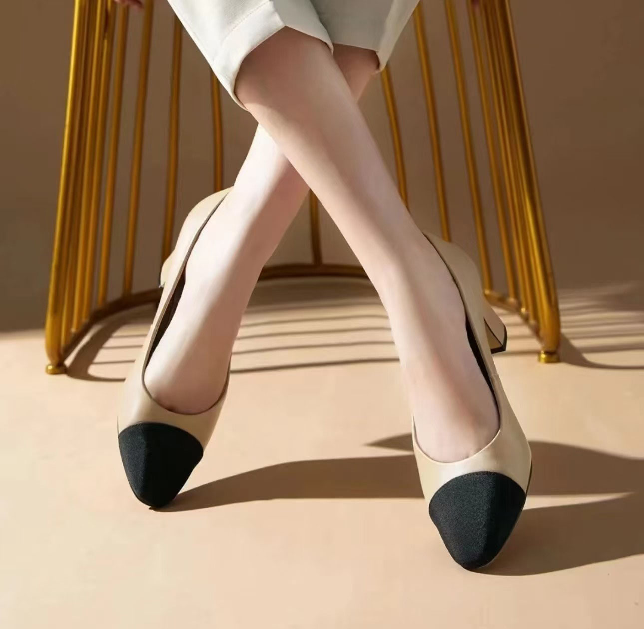 高货·「小香风拼皮法式羊皮粗跟鞋」经典小香风任何时间任何地点都很抗打,chao显气质~巨好穿绝绝子!