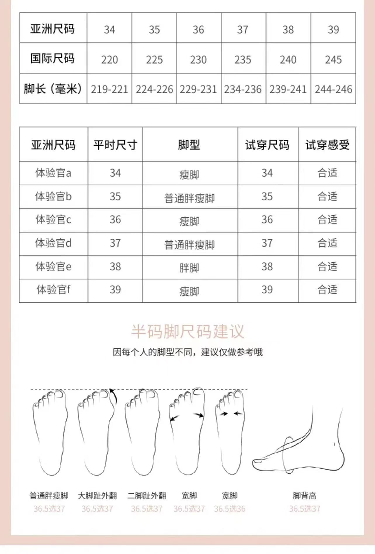 面料:进口小羊皮:羊皮皮质细腻不易起折痕,关键还很柔软脚款的姐妹也不用担心穿上挤脚,穿脱方便!
