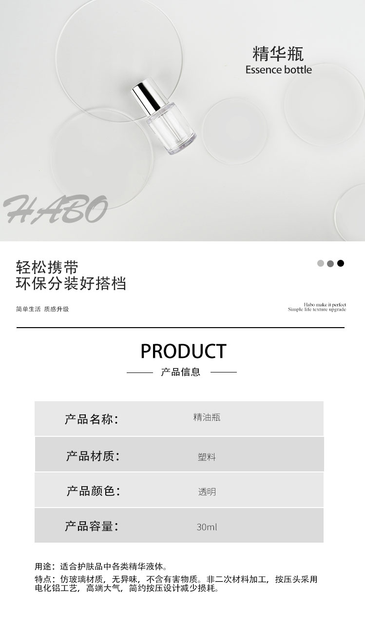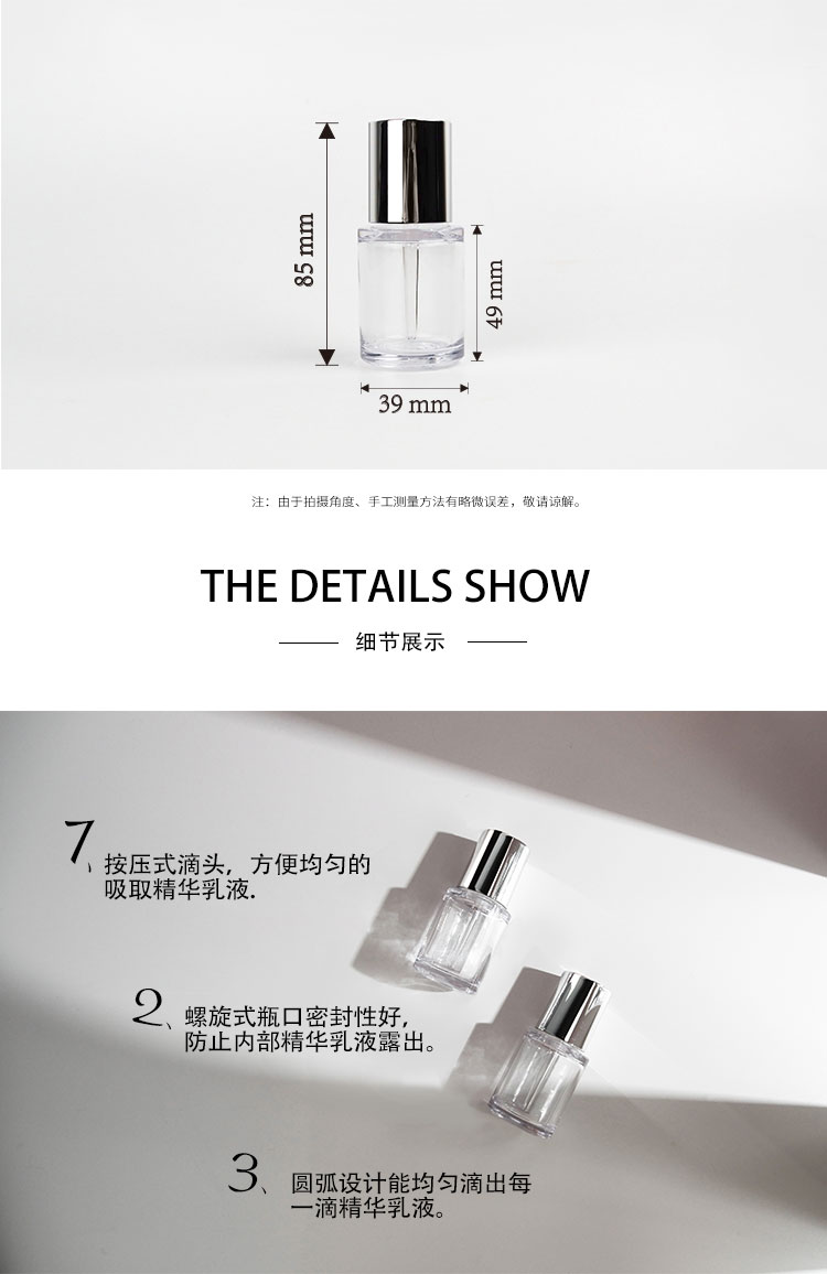 日系旋转按压高透玻璃质感精华液精华油滴管瓶30ml 已清洁可直接