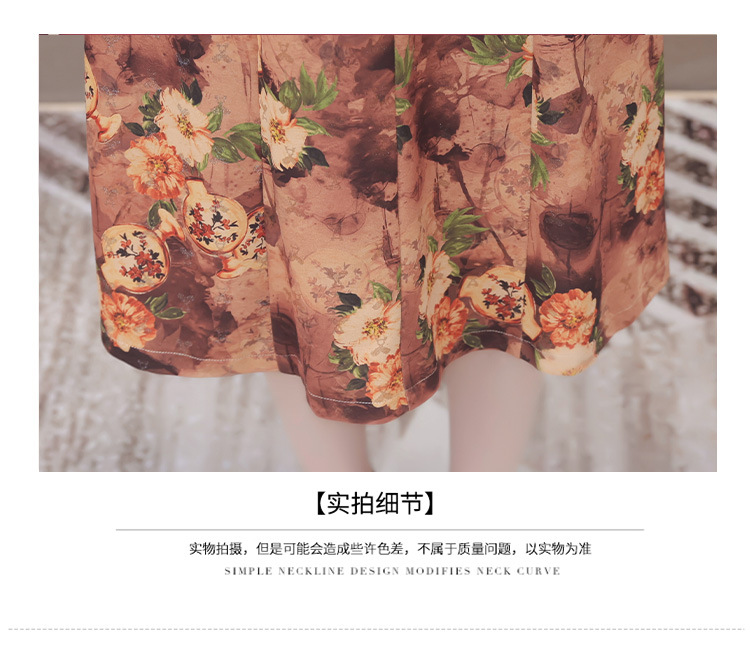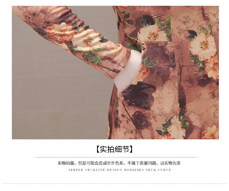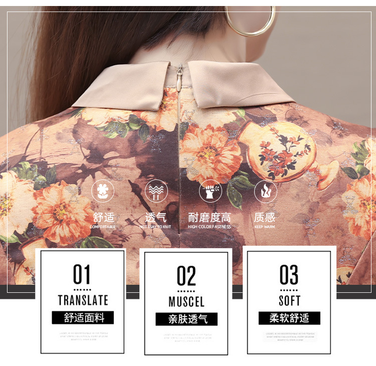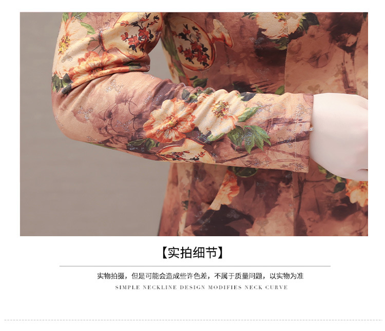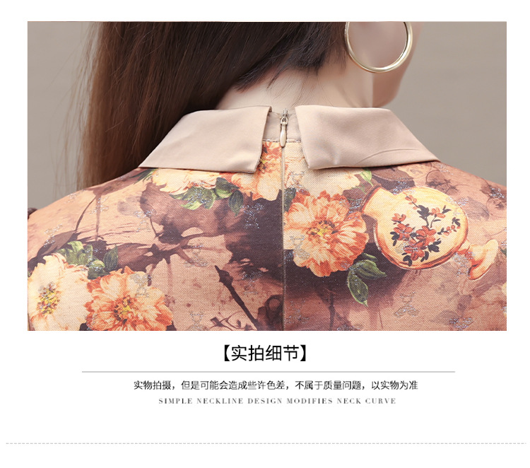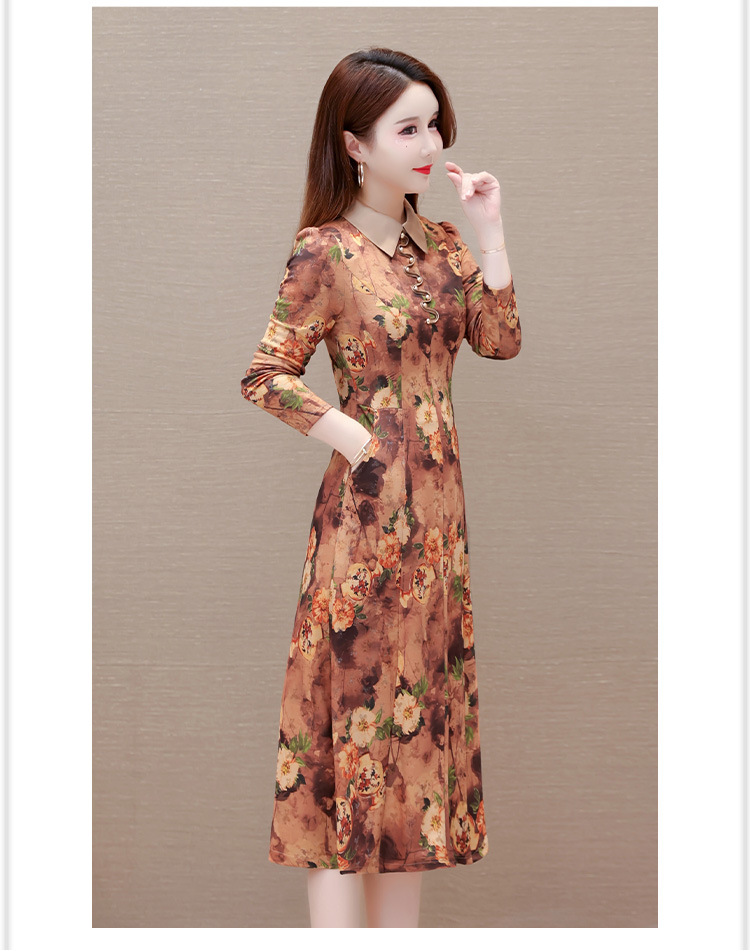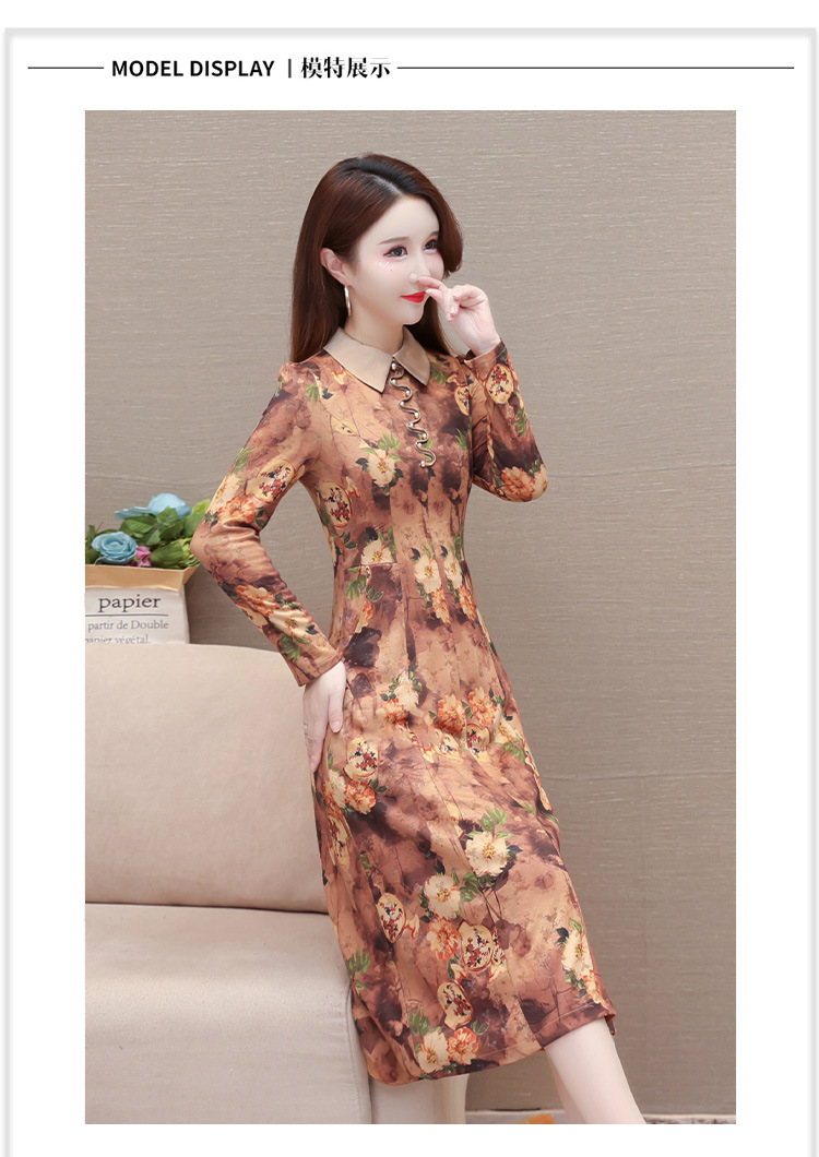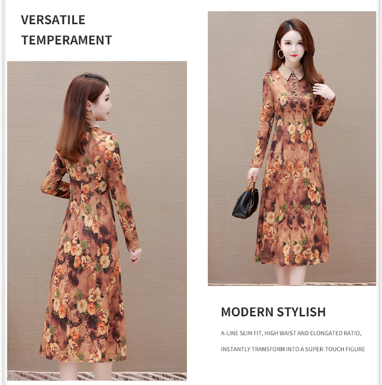 秋季新款,妈妈装中长裙长袖女装长款A字裙娃娃领印花连衣裙QYM-LRX-HJY9771-Y
