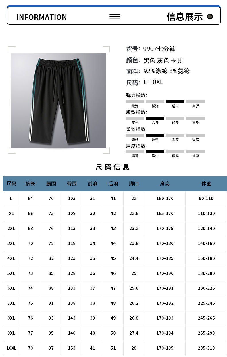 【超大码】【DH】大依优型大码七分裤冰丝美式休闲运动宽松过膝短裤潮牌男300斤