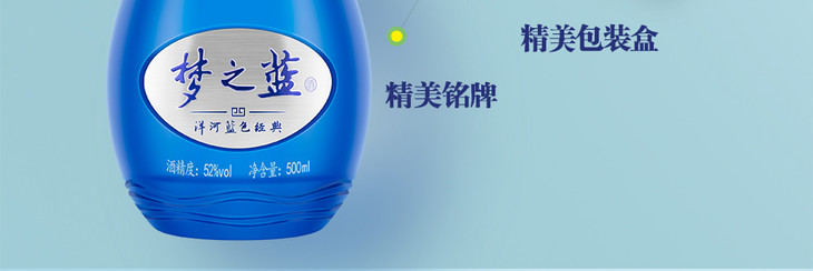 【推荐】洋河蓝色经典 梦之蓝M6 52度 整箱装白酒 500ml*4瓶(内含2个礼袋) 口感绵柔浓香型