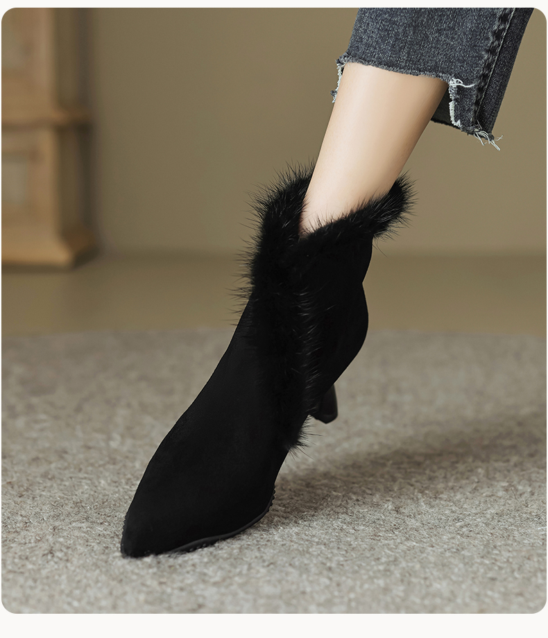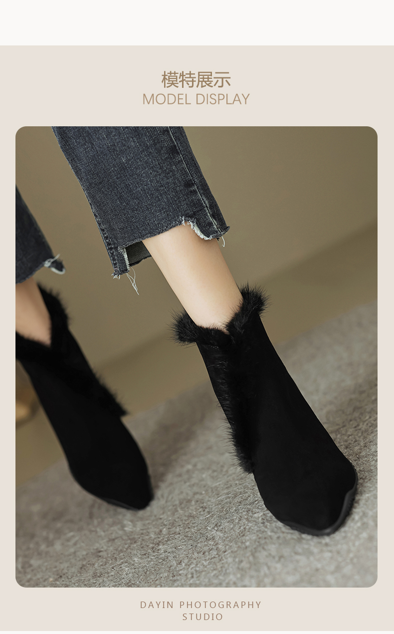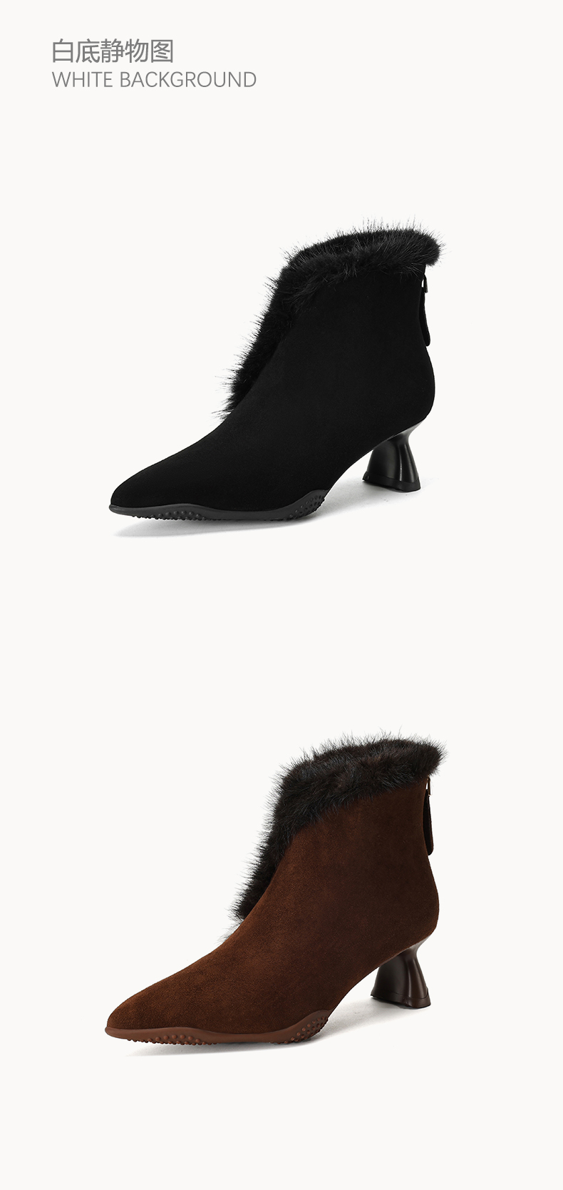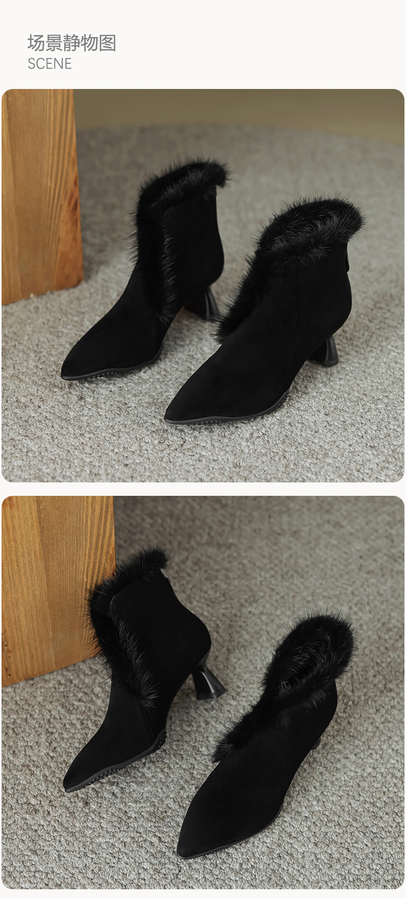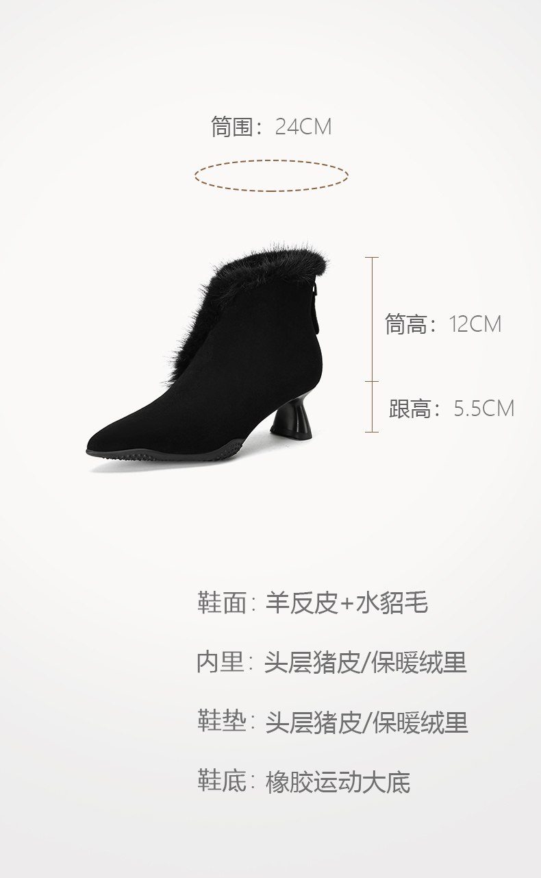时尚保暖,羊反皮+水貂毛橡胶运动大底短靴YCJX-2567