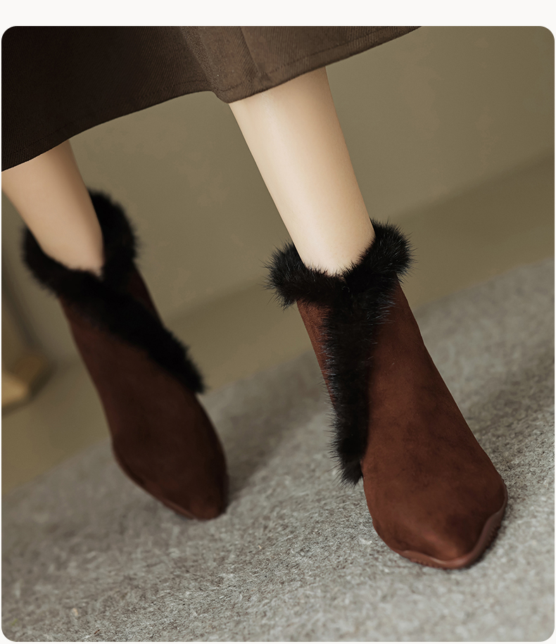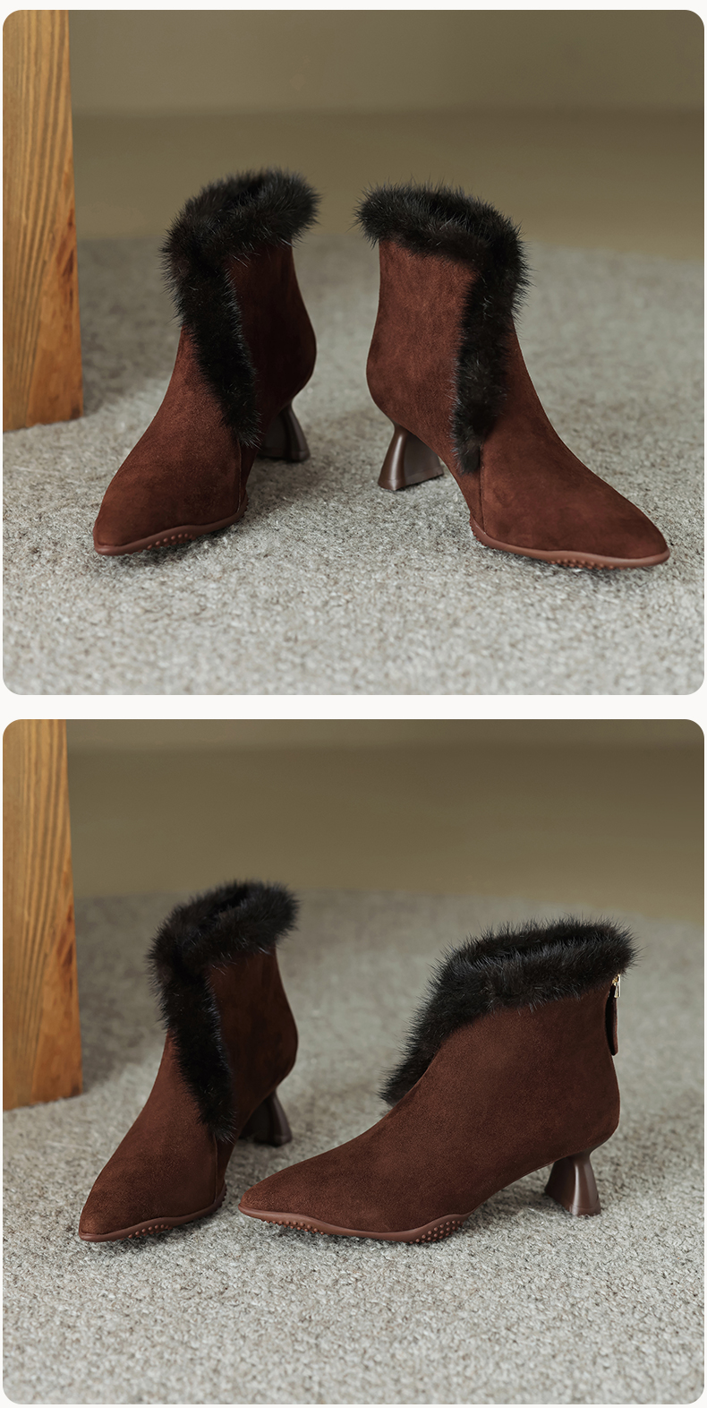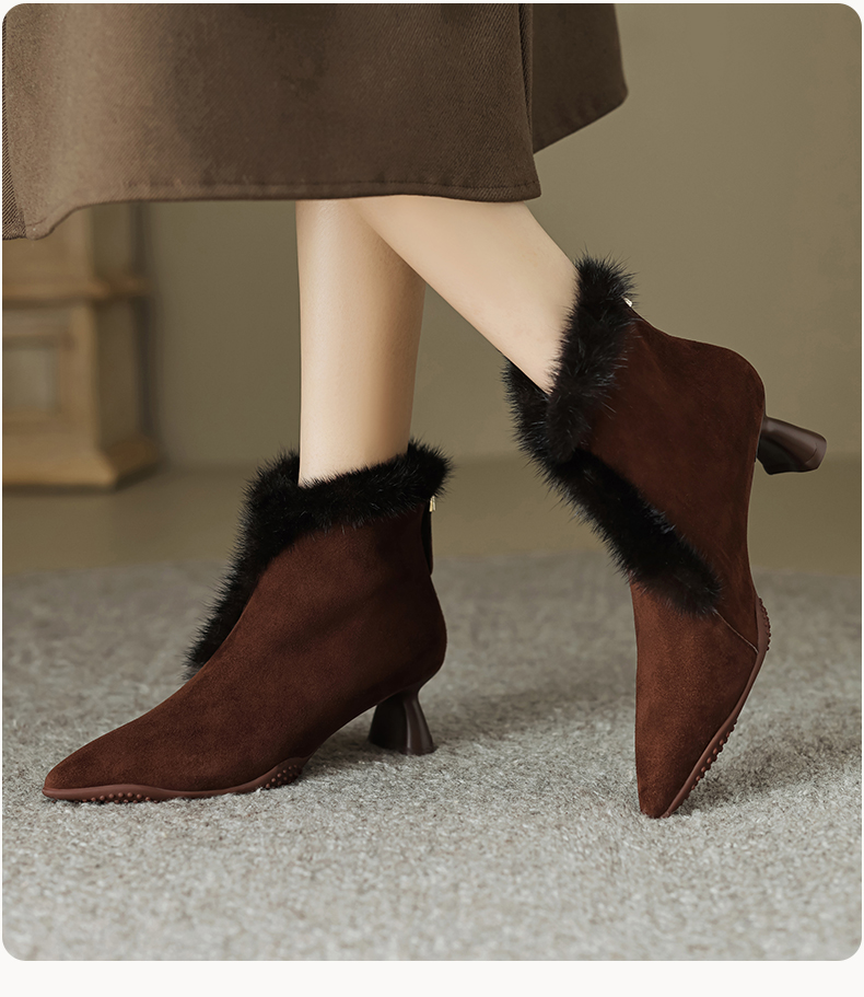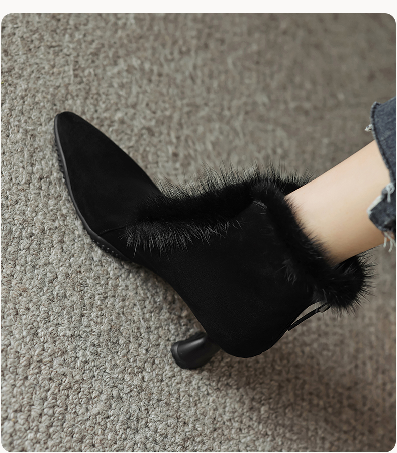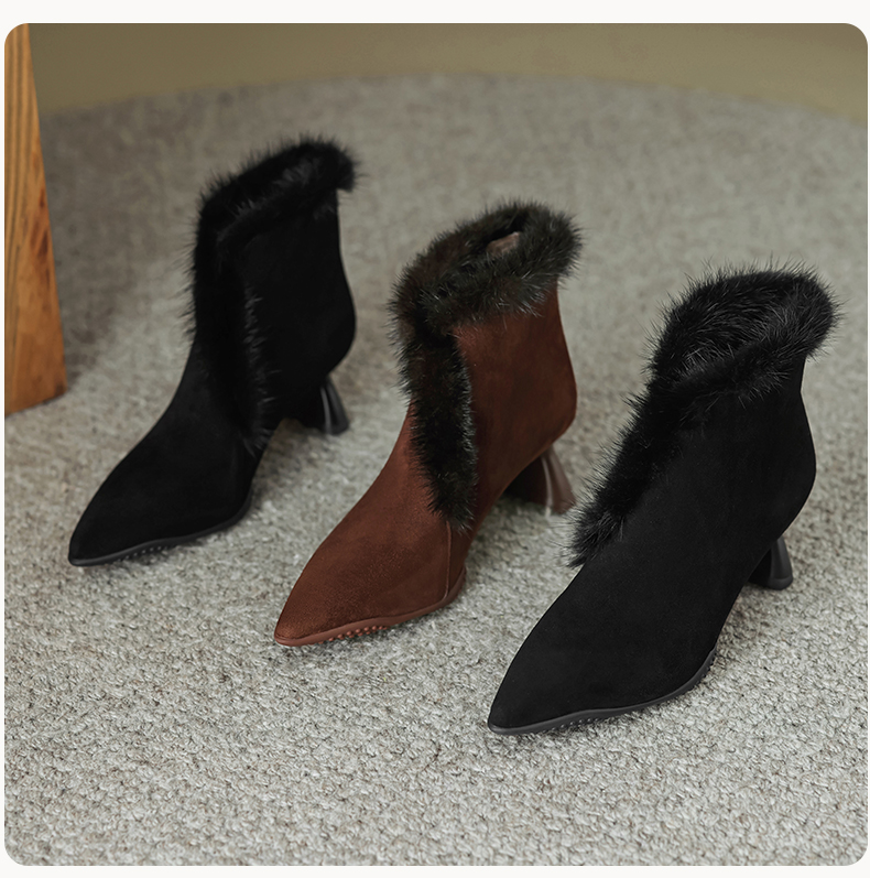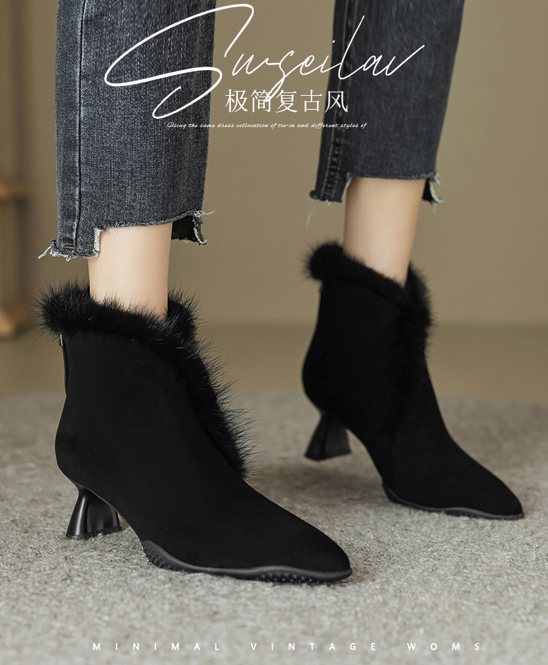 时尚保暖,羊反皮+水貂毛橡胶运动大底短靴YCJX-2567