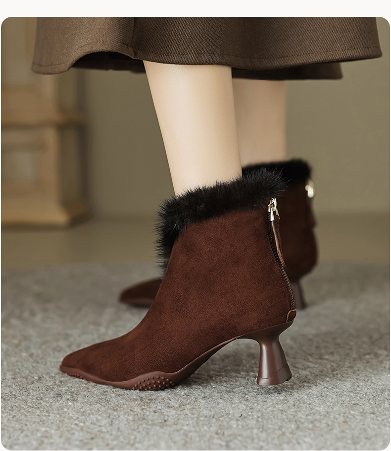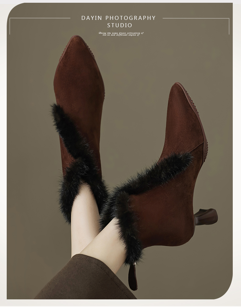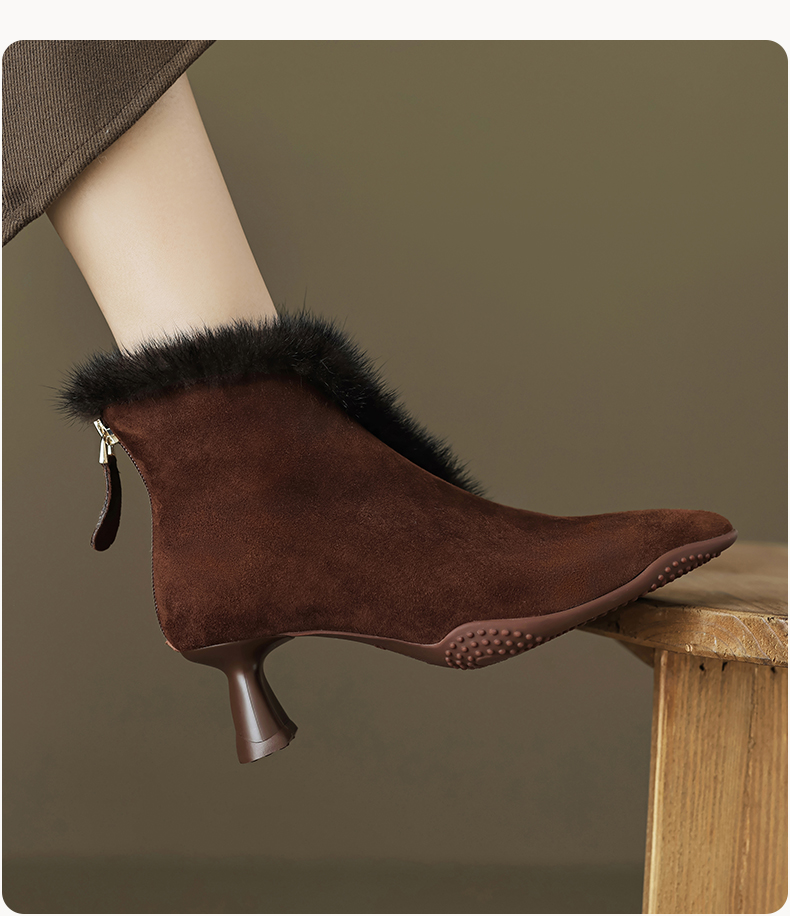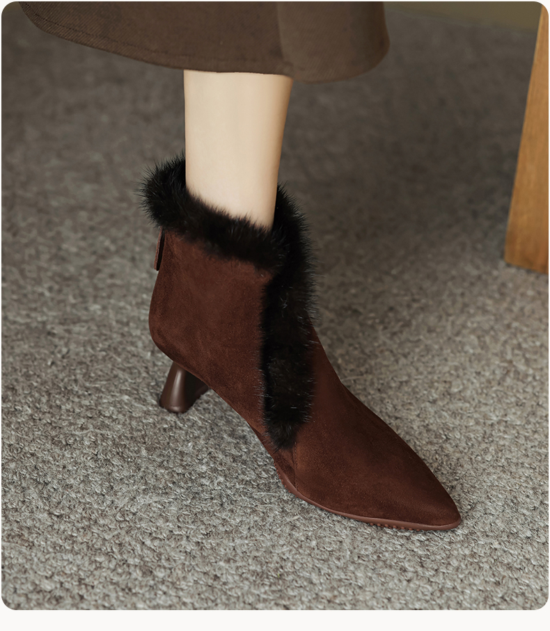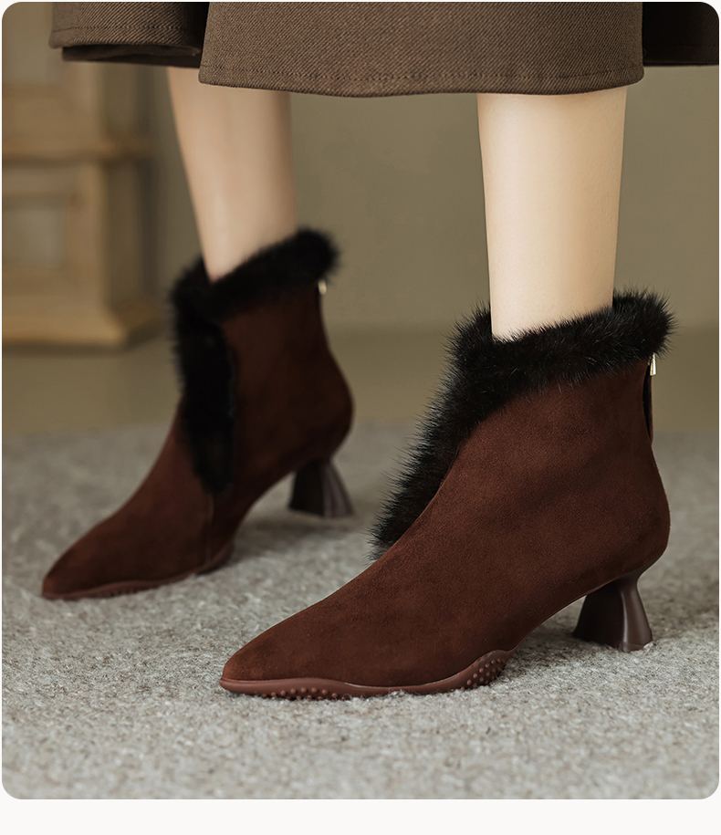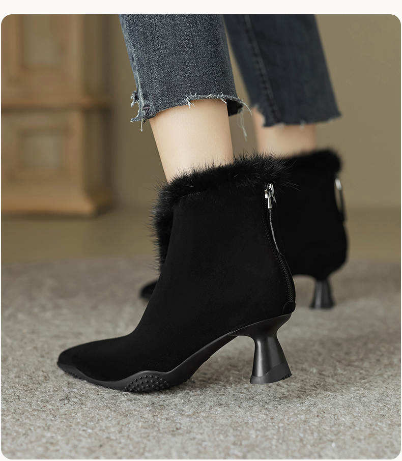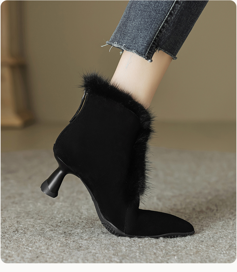 时尚保暖,羊反皮+水貂毛橡胶运动大底短靴YCJX-2567