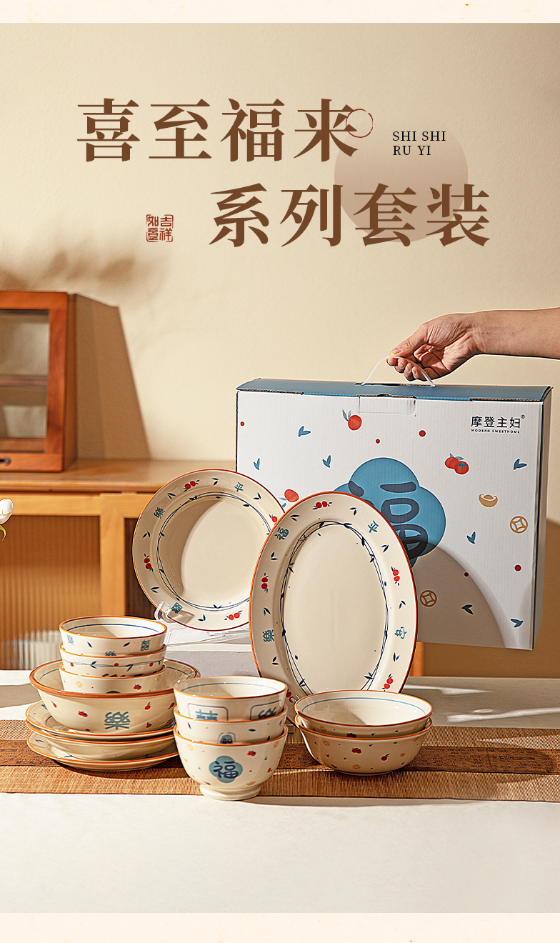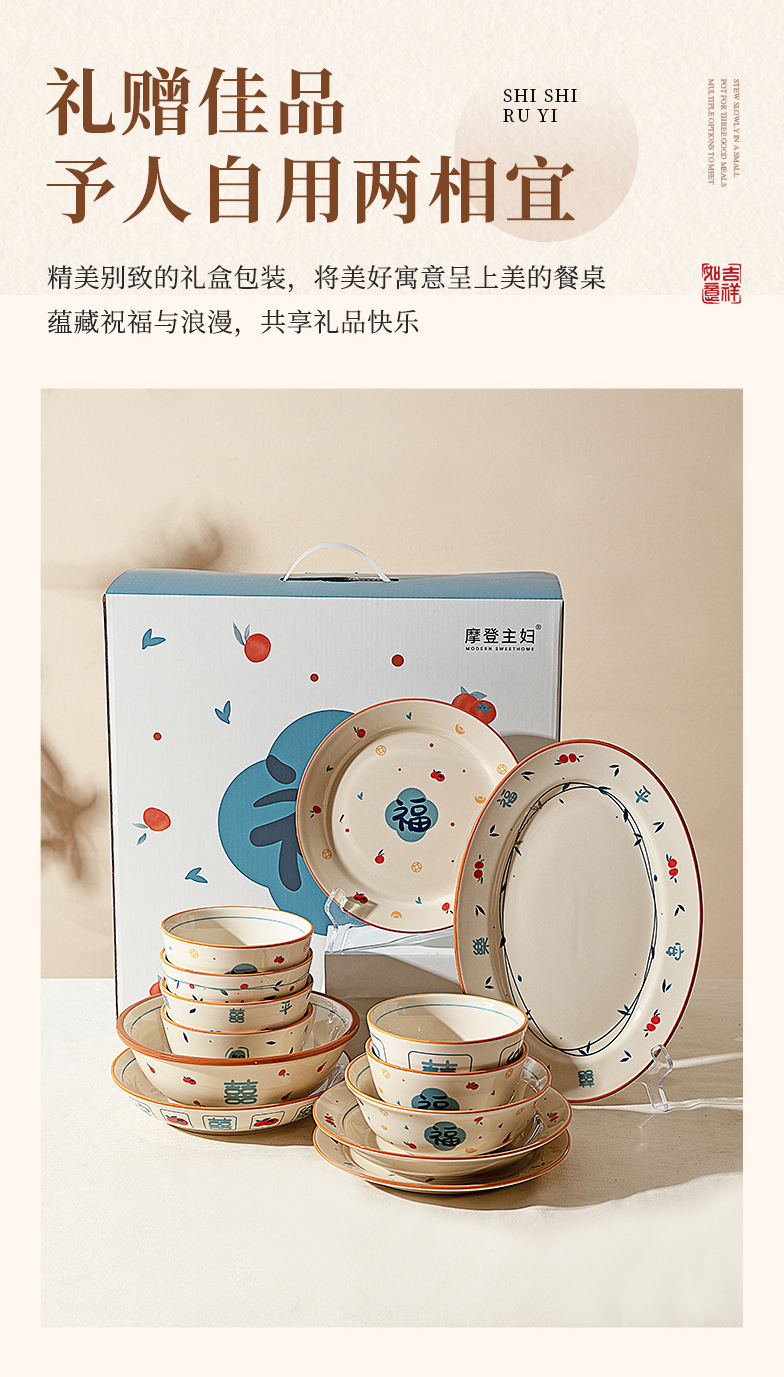 摩登主妇餐具套装家用新款高颜值乔迁新居新年礼物陶瓷碗碟饭碗具