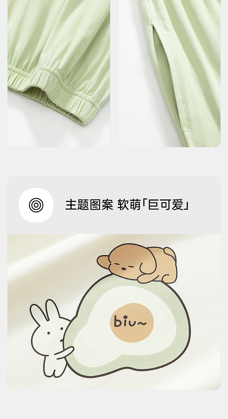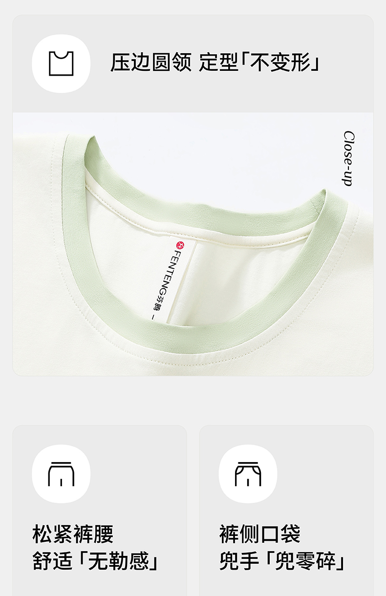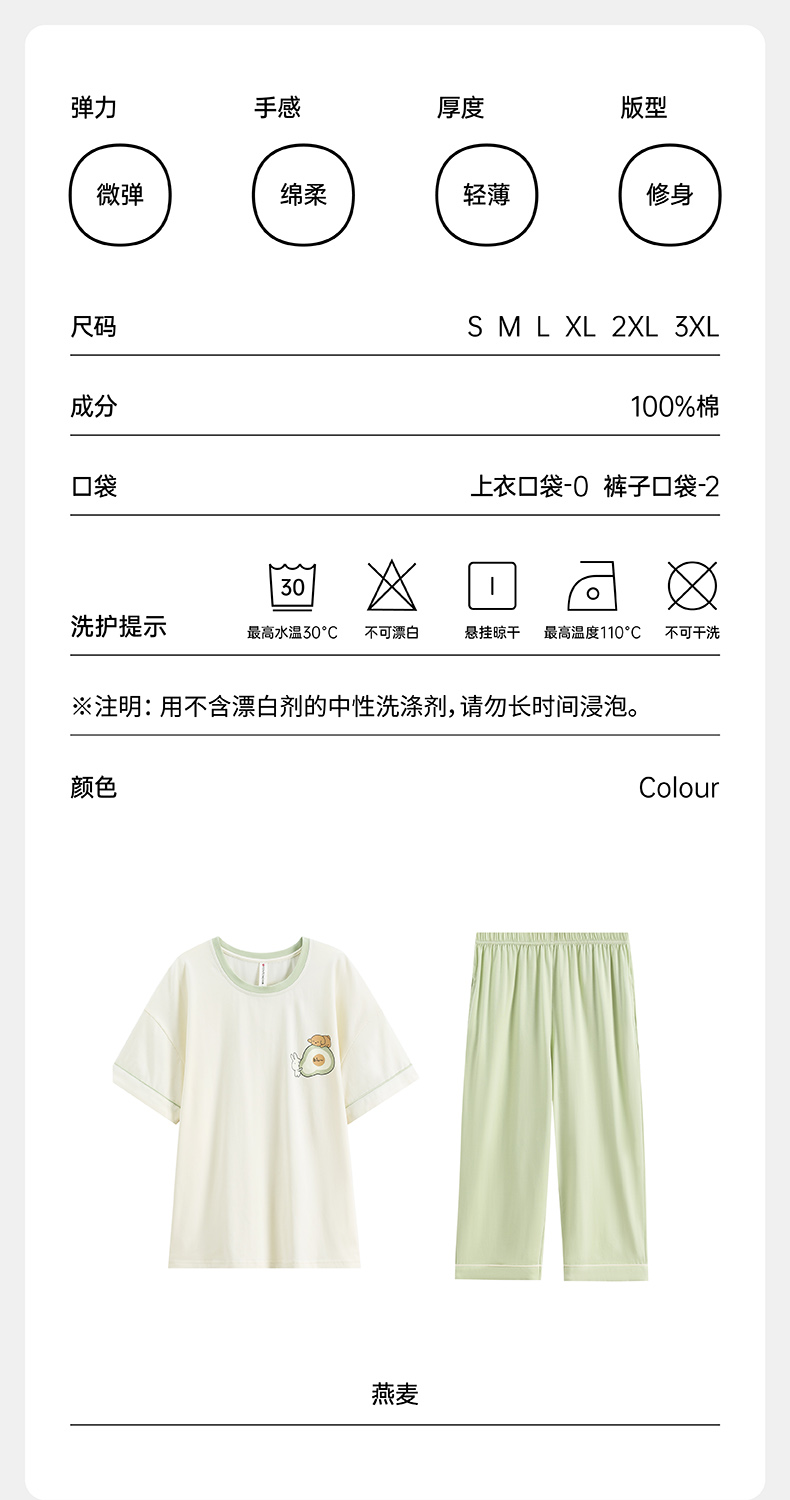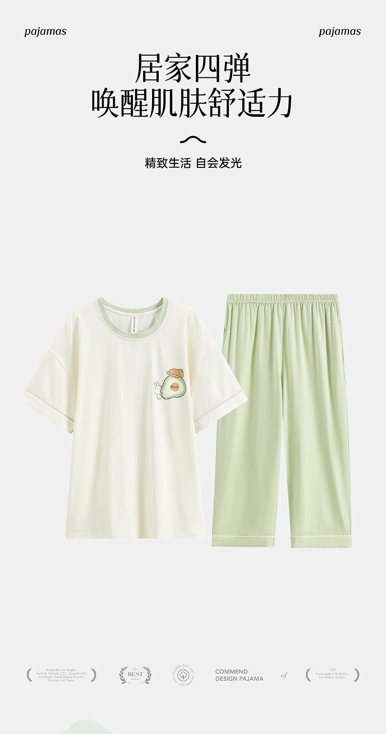 芬腾夏款睡衣女纯棉短袖七分裤套装舒适透气夏季休闲可外穿家居服