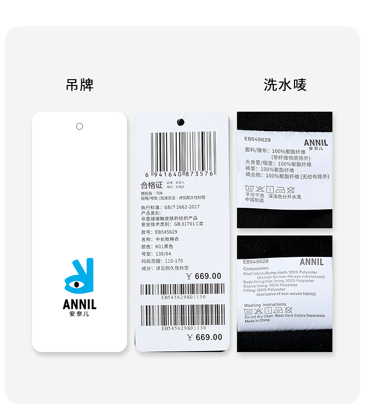 男童可拆卸中长款棉衣冬季新款安奈儿童装EB545629