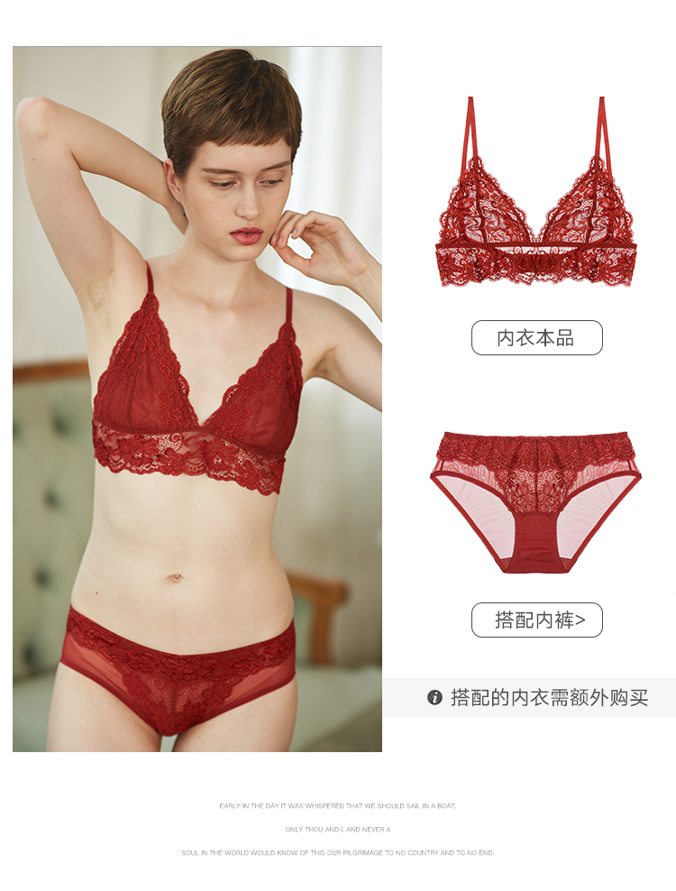 弗利少女Freelass 法式蕾丝薄款bralette女小胸内衣少女文胸红