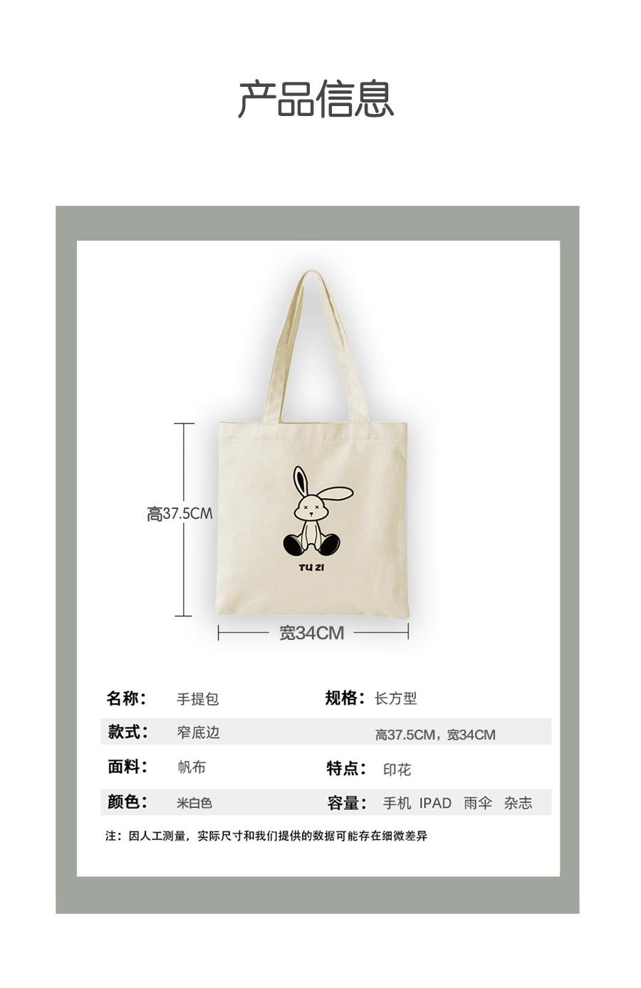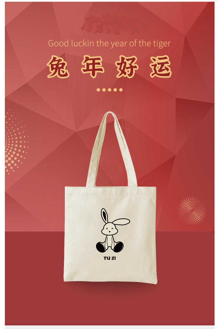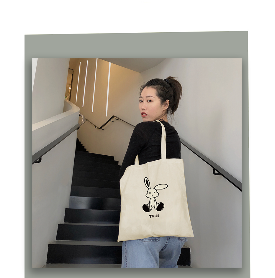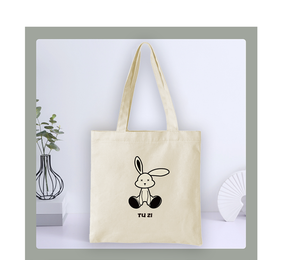帆布袋 原创环保购物袋2023新款兔年图案 大容量手提包拎书袋子