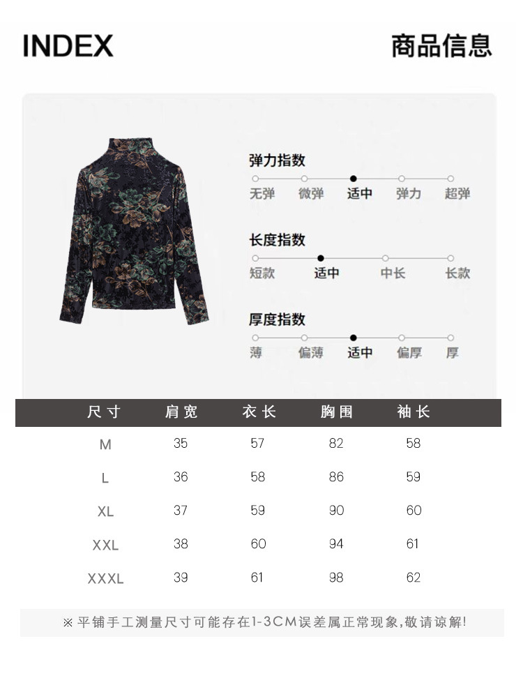 KQL E37M2918气质丝绒印花烫钻高领长袖打底衫修身显瘦t恤