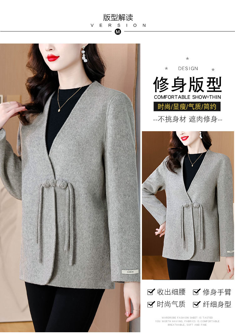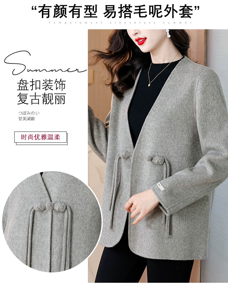 AHM lrfs2396时尚优雅双面呢大衣中式盘扣高级感宽松气质外套 商品图2