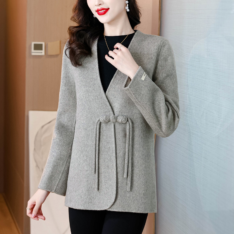 AHM lrfs2396时尚优雅双面呢大衣中式盘扣高级感宽松气质外套 商品图0