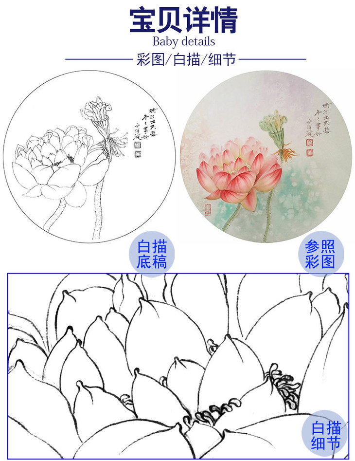 杨冬冬工笔花鸟白描底稿《清水芙蓉》荷花小品-多种白描尺寸可选-HD04