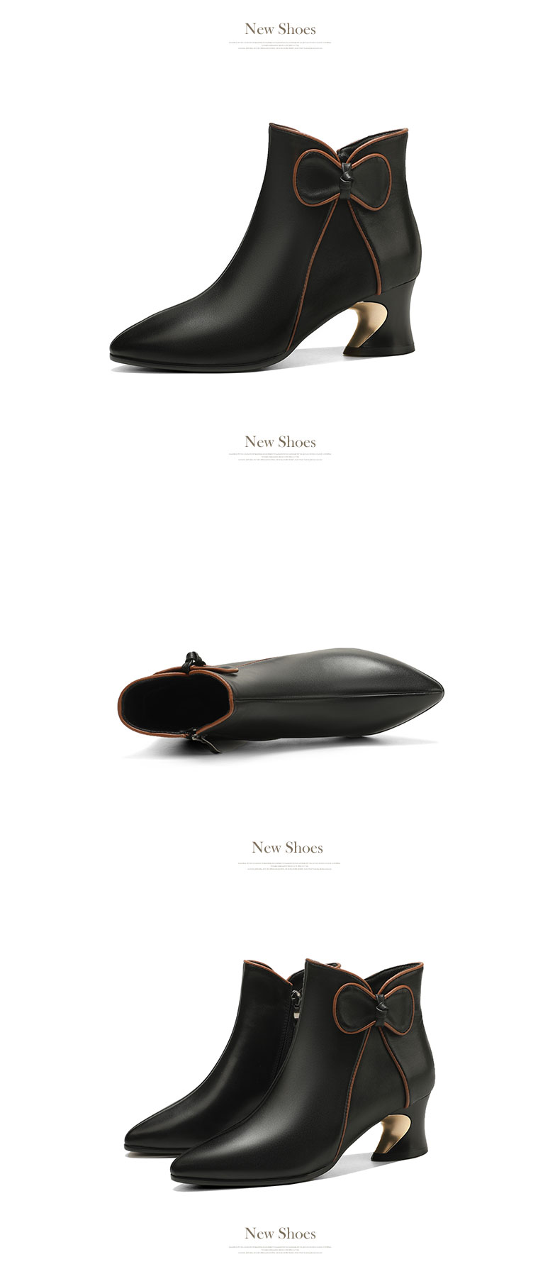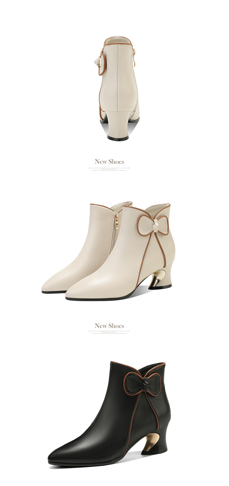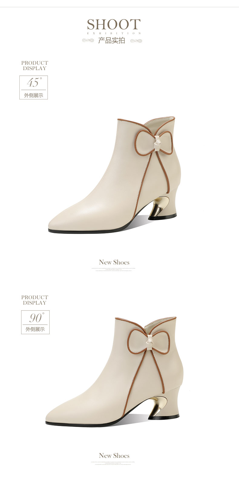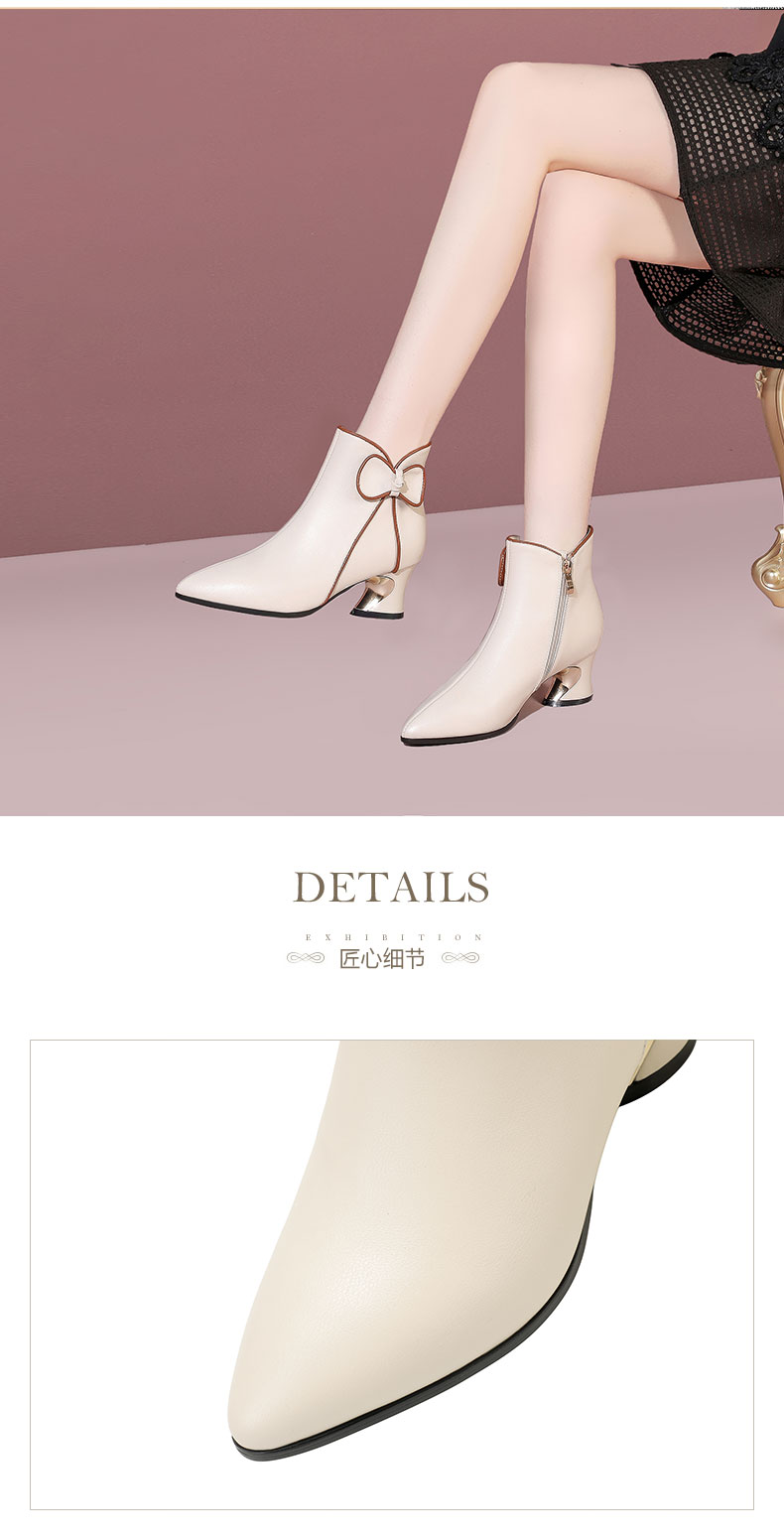 【预售5天】5.5cm高跟短靴女秋冬新款粗跟低筒靴子中跟单靴米白色牛皮女靴JLD&4060