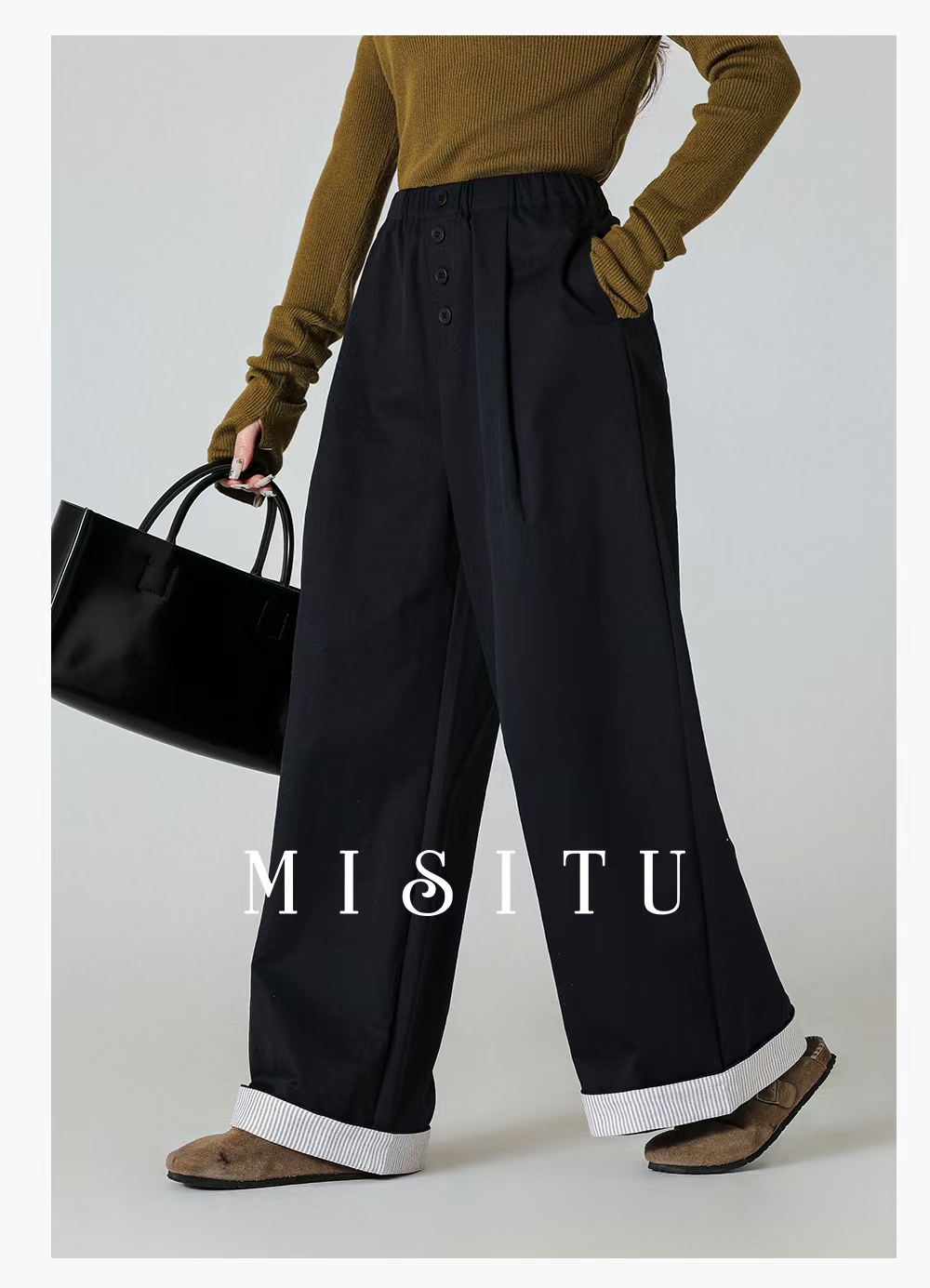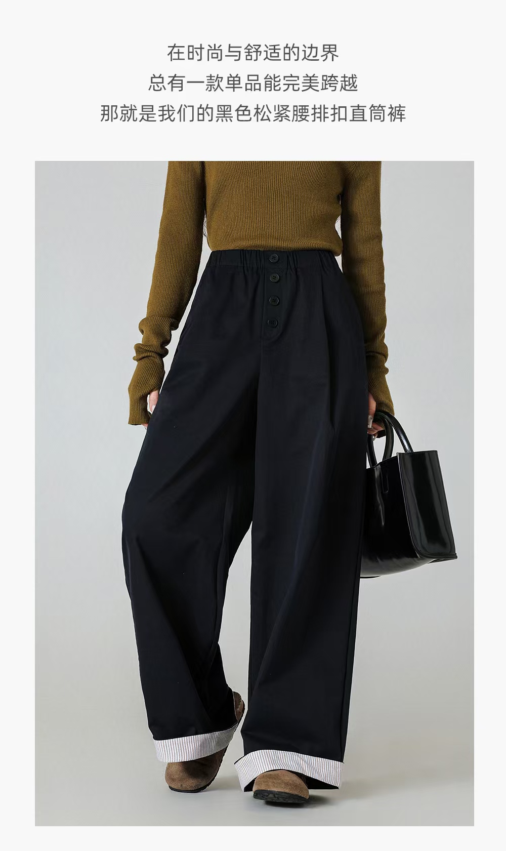 顺丰包邮42440洛诗琳立体错位拼接剪裁气质时尚显瘦直筒裤25233