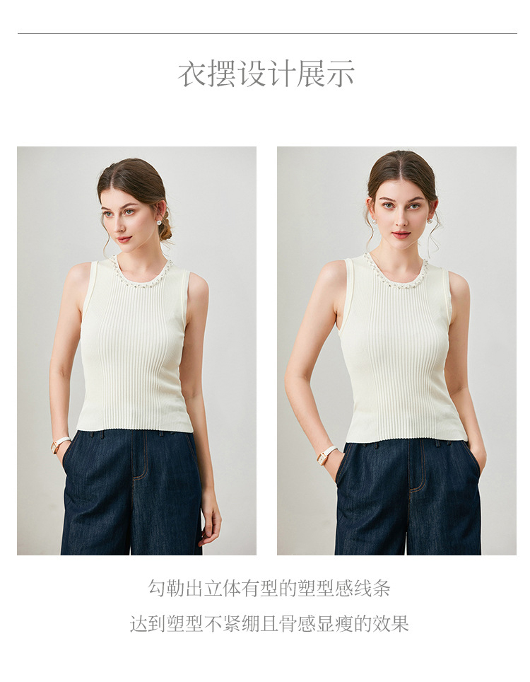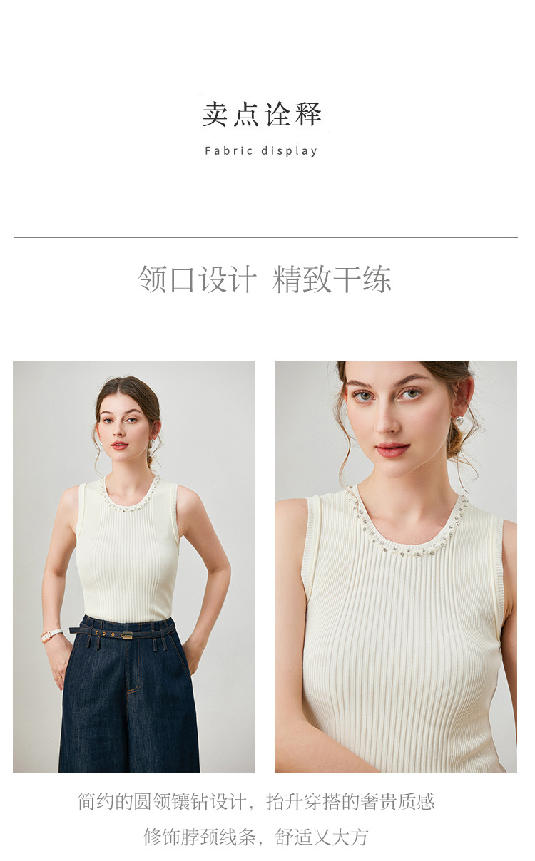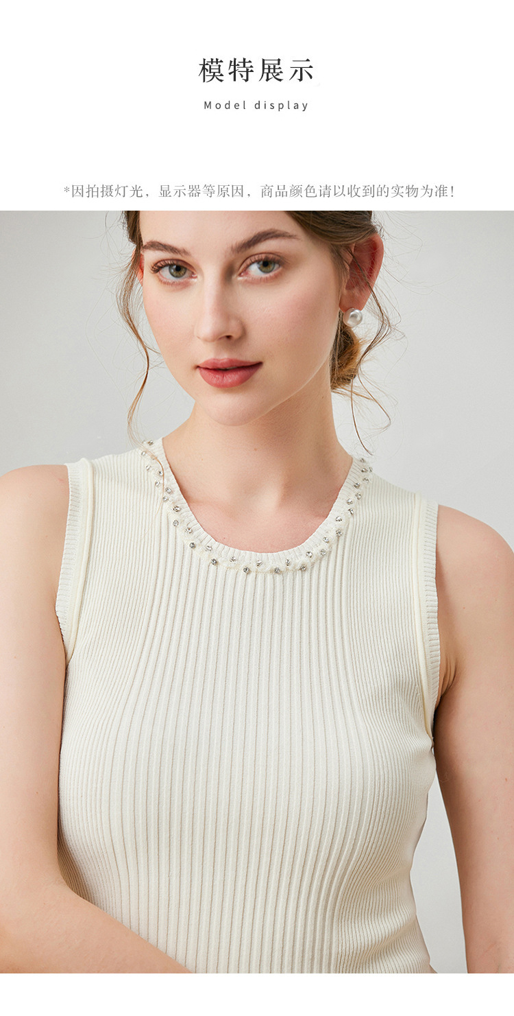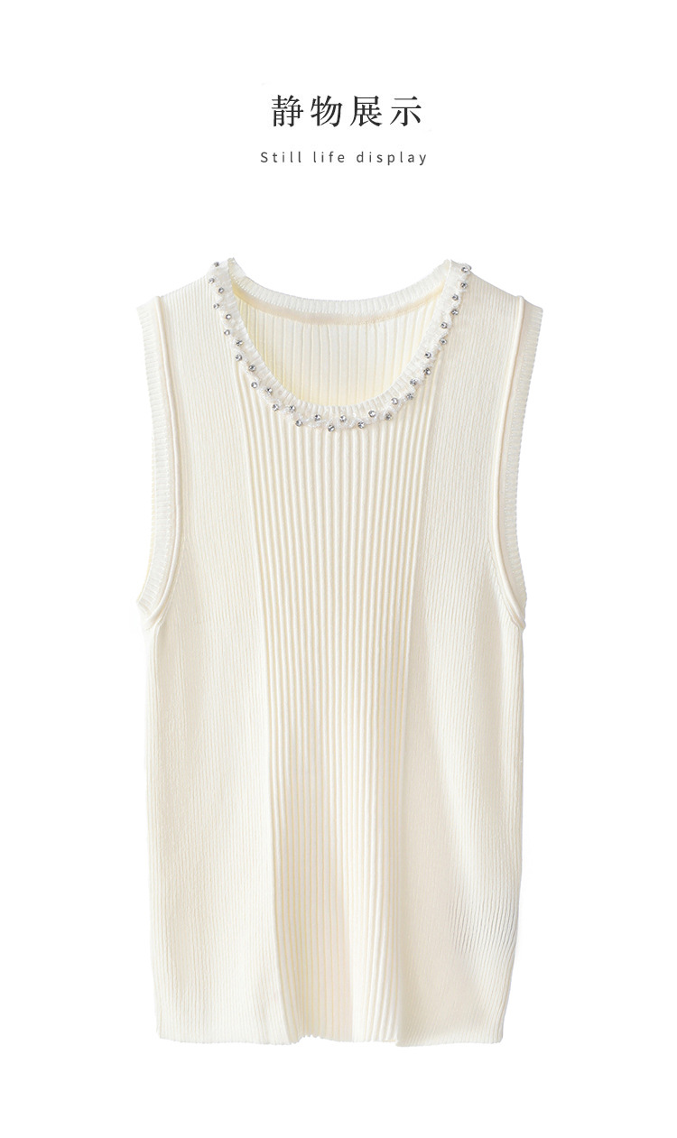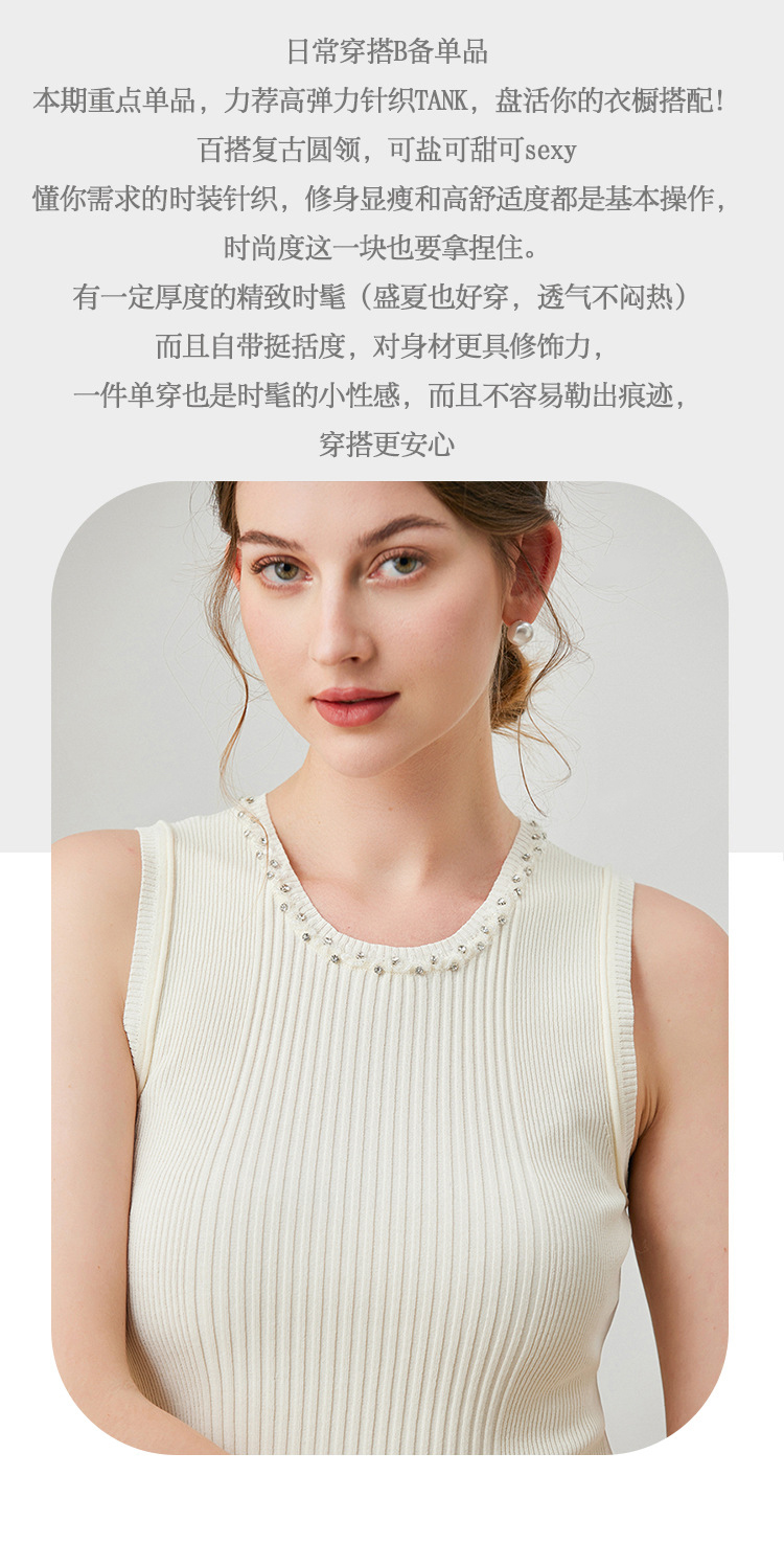 「自」全新升级【铂金会员257/天猫339/差价82】(93942)洛诗琳百搭钉珠内搭背心2025夏季修身显瘦针织打底衫上衣女