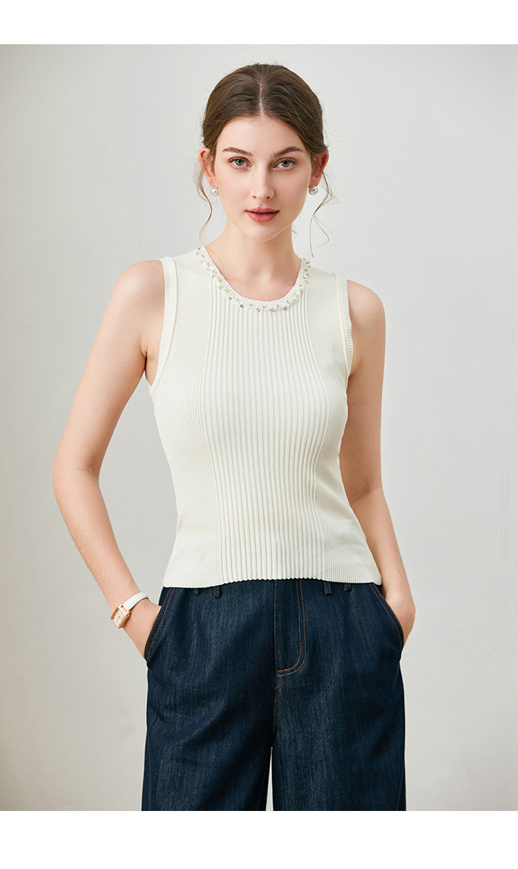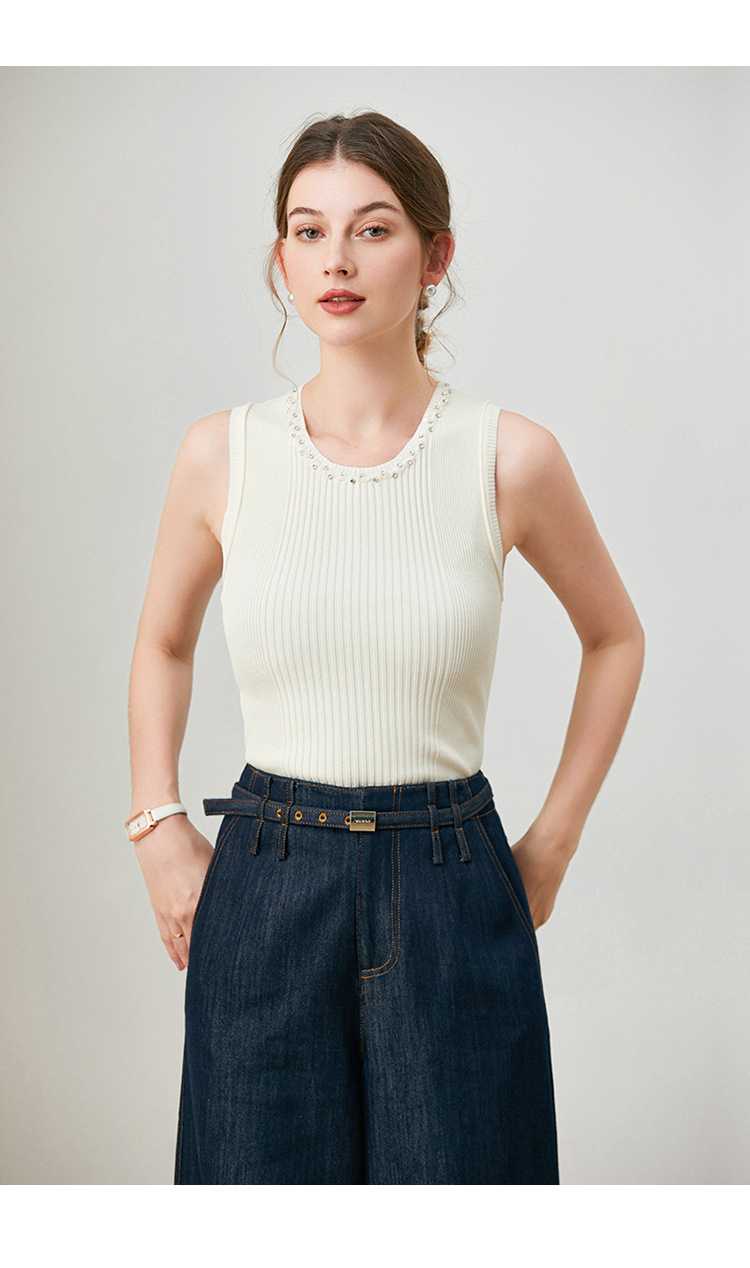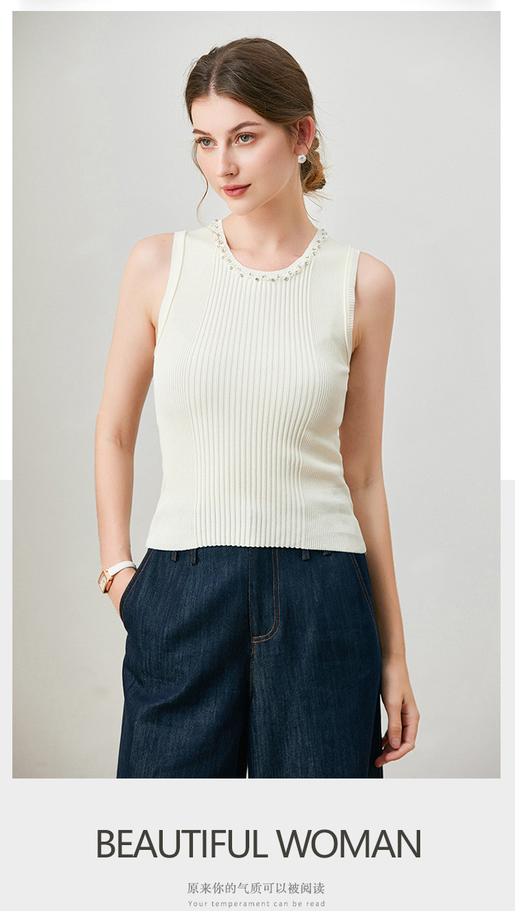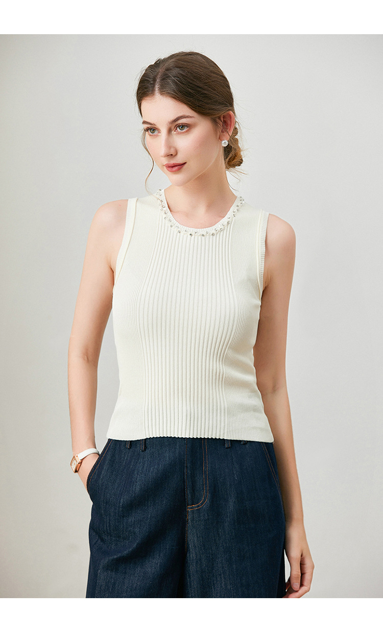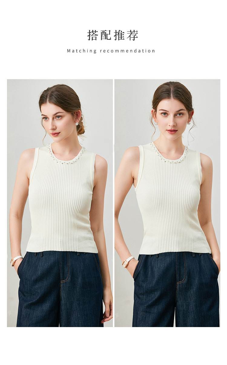 「自」全新升级【铂金会员257/天猫339/差价82】(93942)洛诗琳百搭钉珠内搭背心2025夏季修身显瘦针织打底衫上衣女