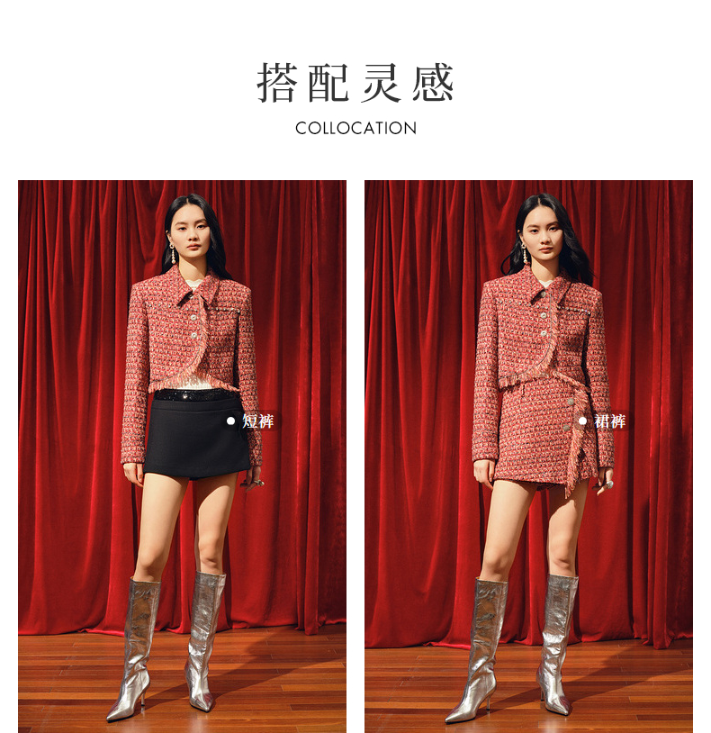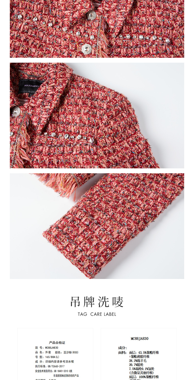 玛克门店发货:MAXRIENY新年红小香风外套(货号:MC88JA830)