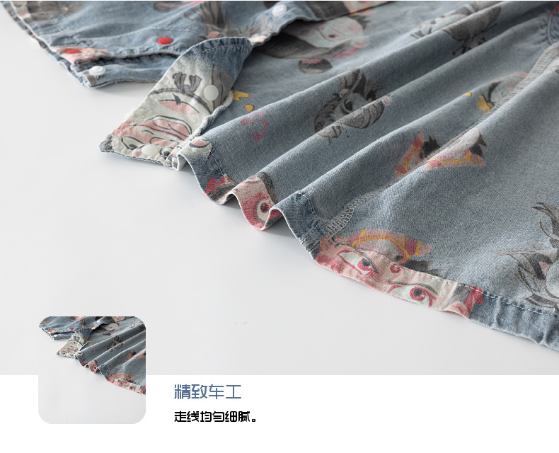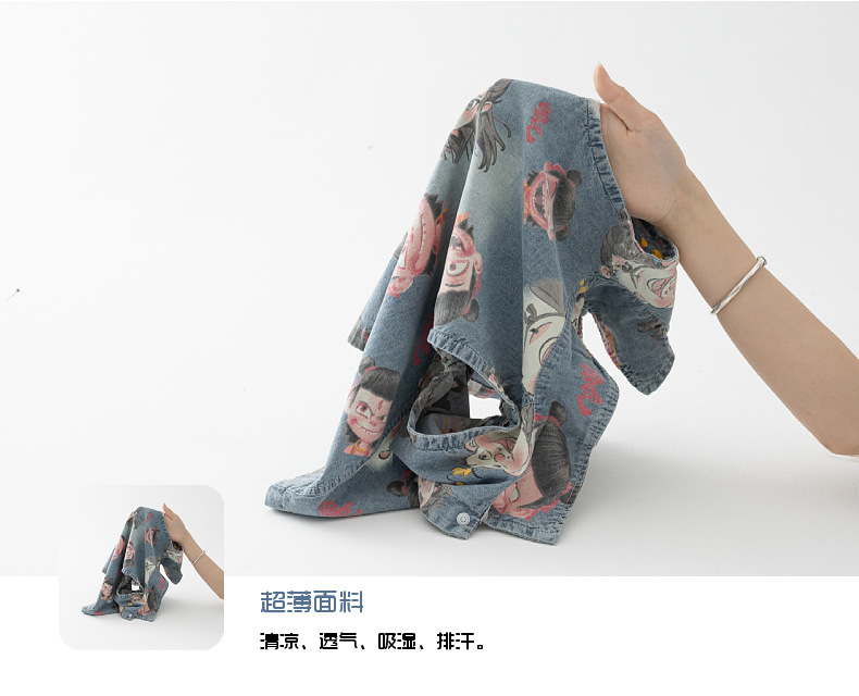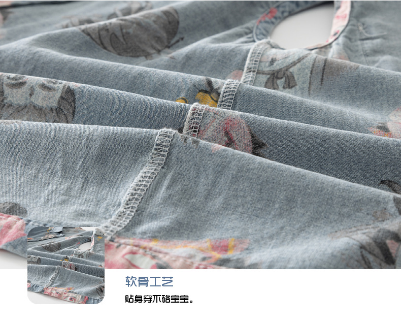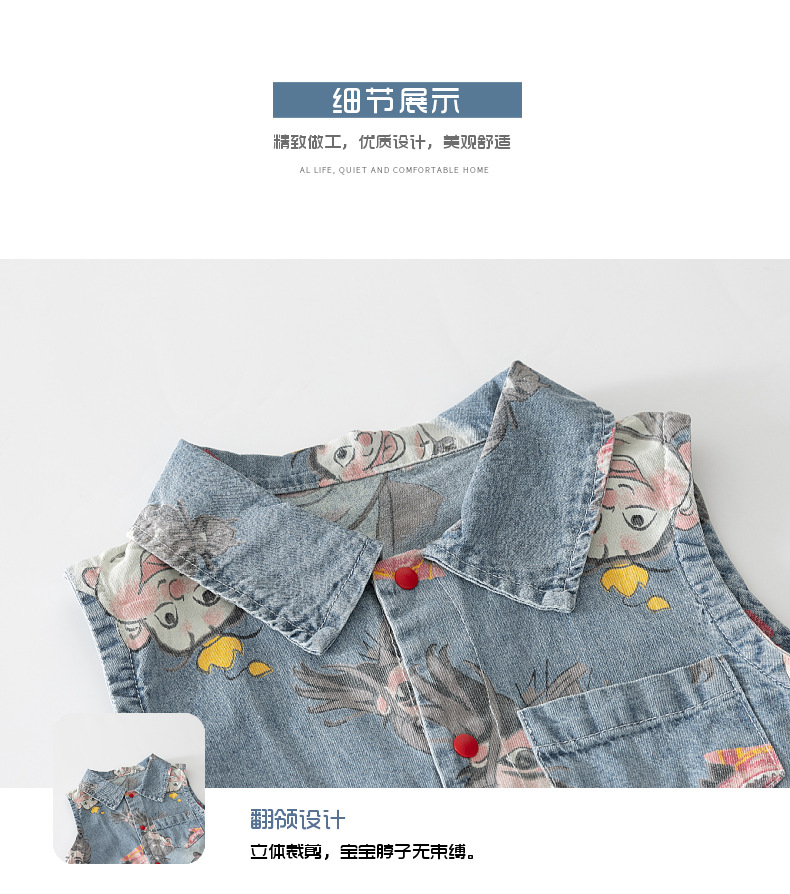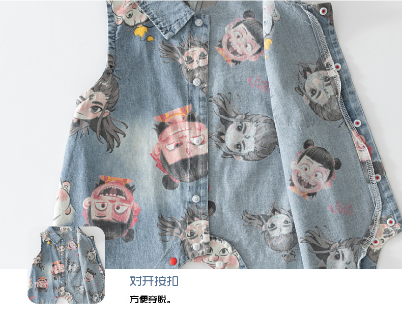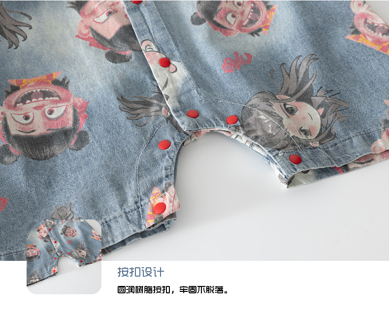 【软骨工艺,薄款牛仔·】婴儿哪吒无袖连体衣 宝宝夏季薄款纯棉牛仔哈衣 新生儿爬服 婴幼短爬-QQ