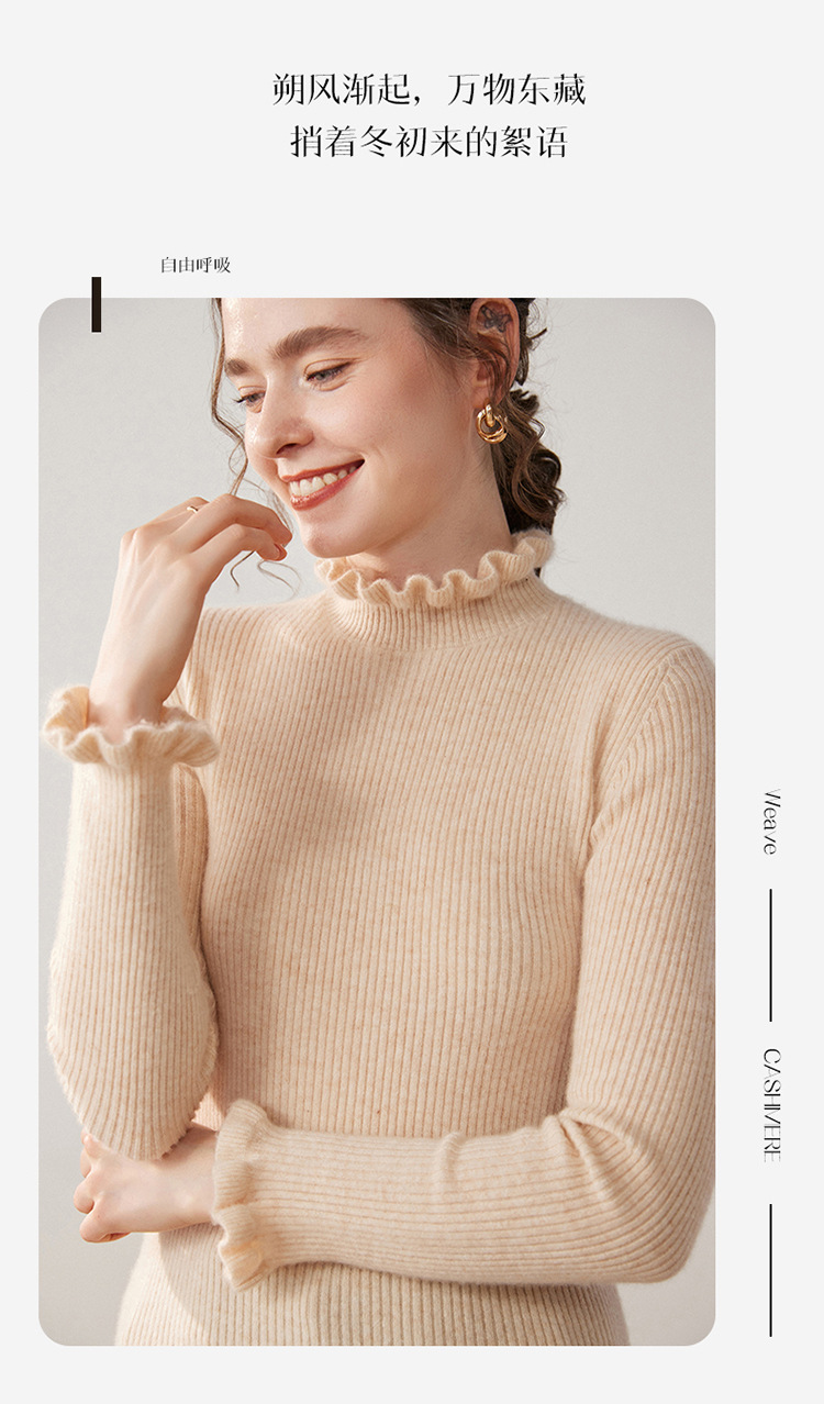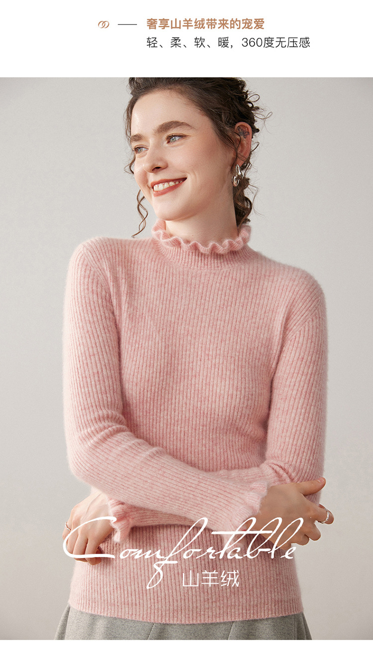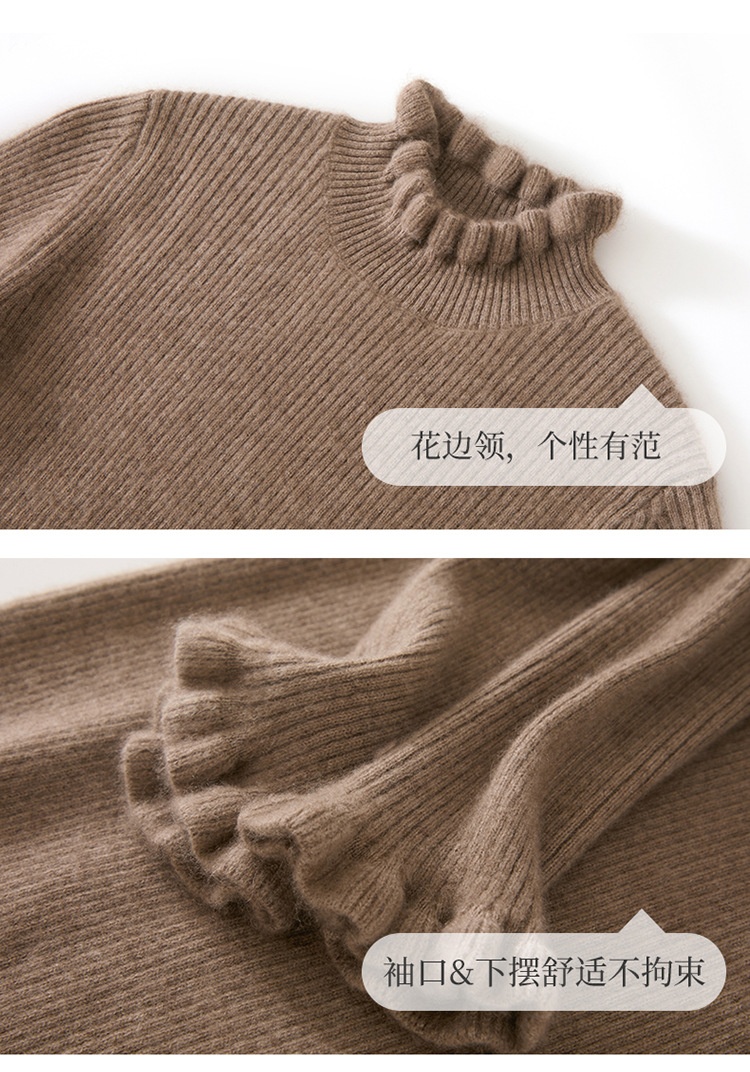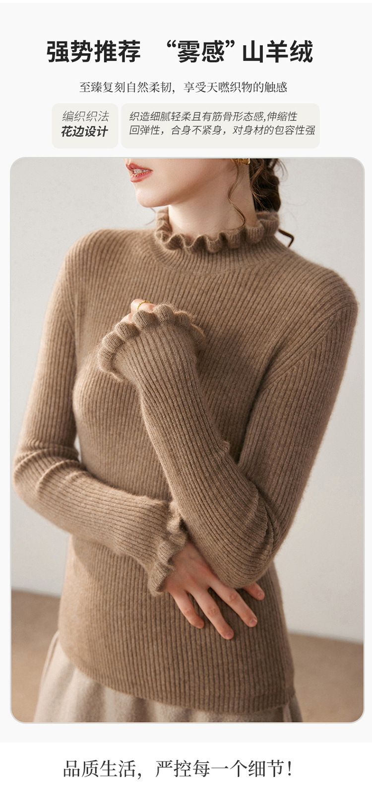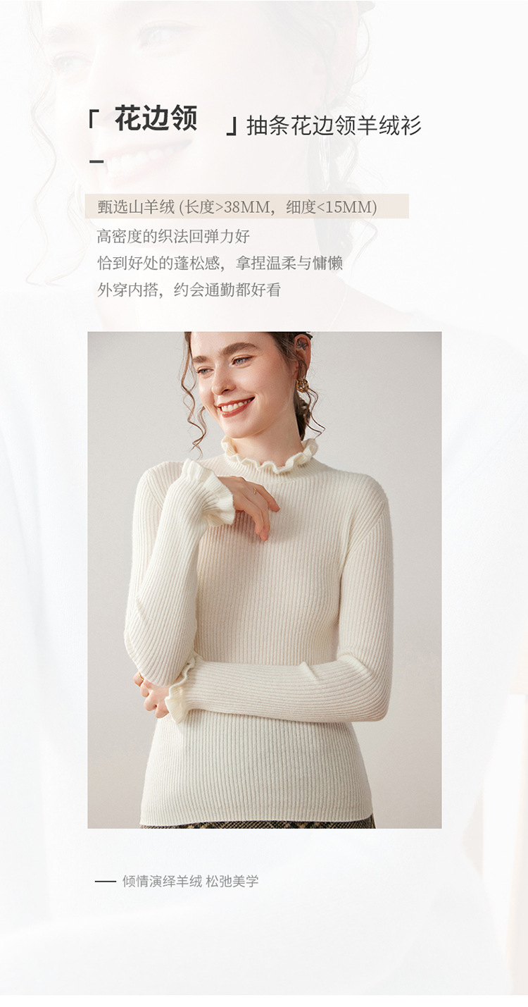 「高货yt」全新升级【铂金会员468/天猫629/差价161】(13413)洛诗琳气质花边半高领羊绒衫2025秋冬修身显瘦针织毛衣女
