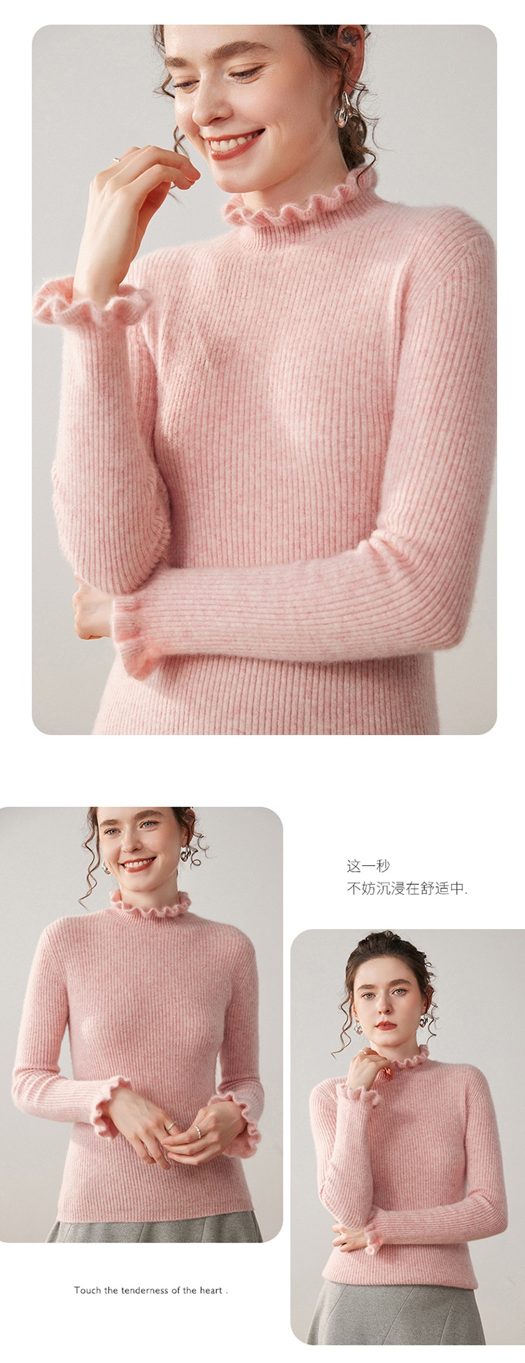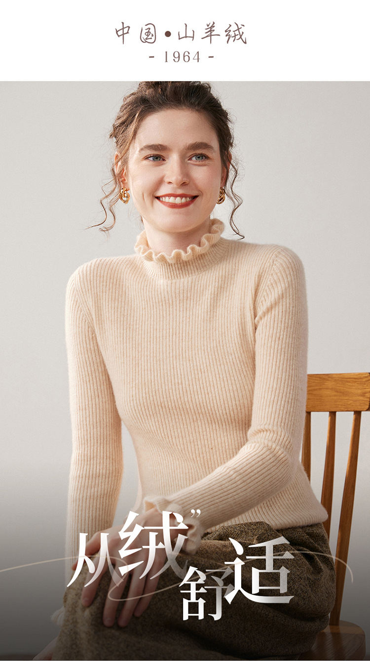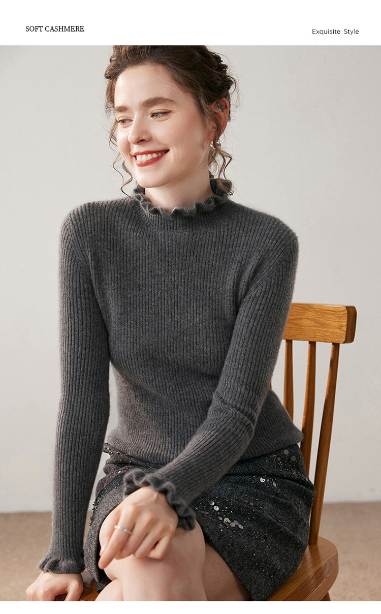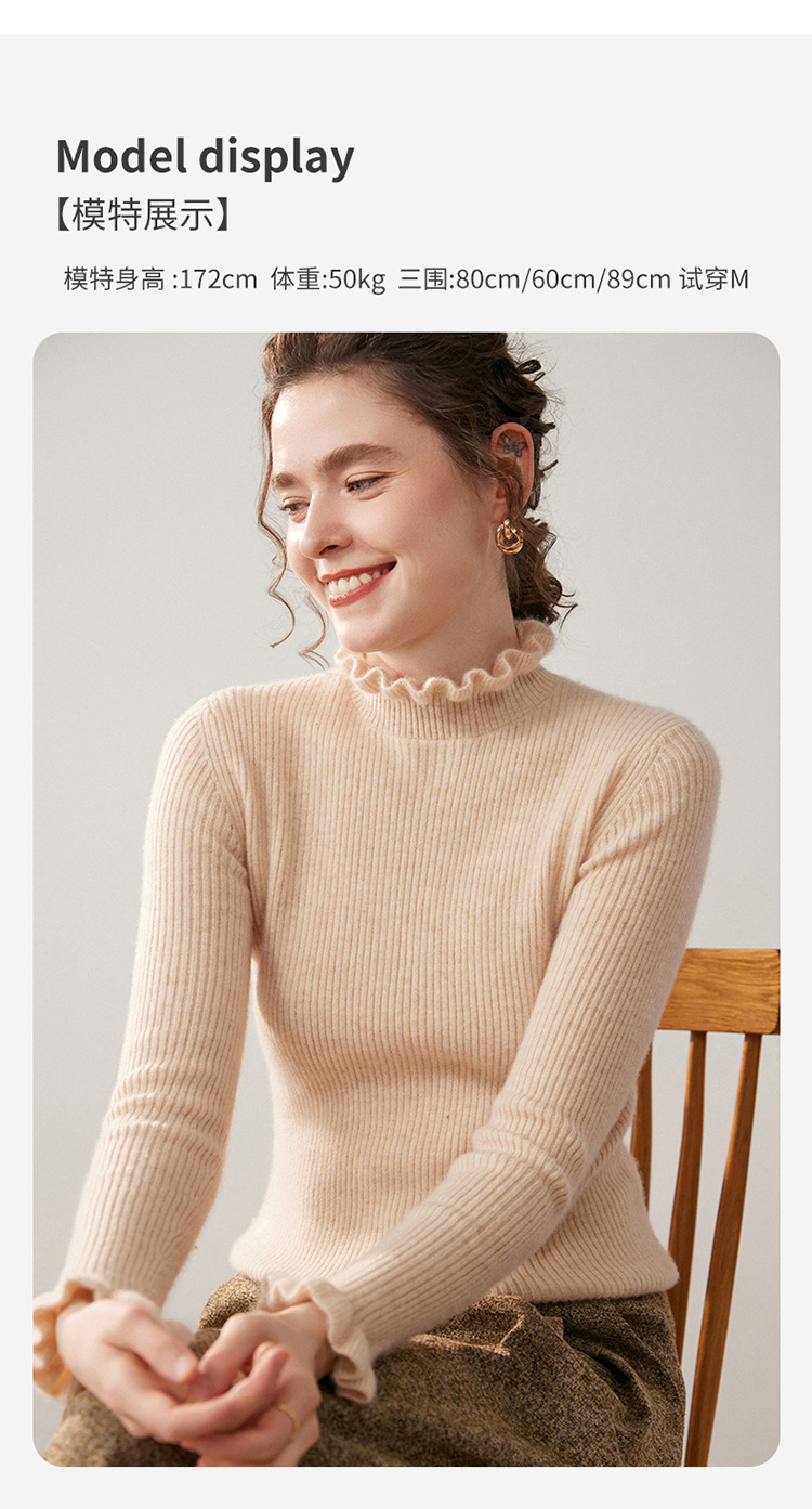 「高货yt」全新升级【铂金会员468/天猫629/差价161】(13413)洛诗琳气质花边半高领羊绒衫2025秋冬修身显瘦针织毛衣女