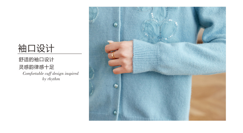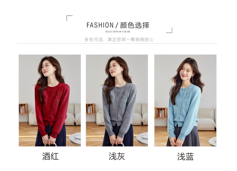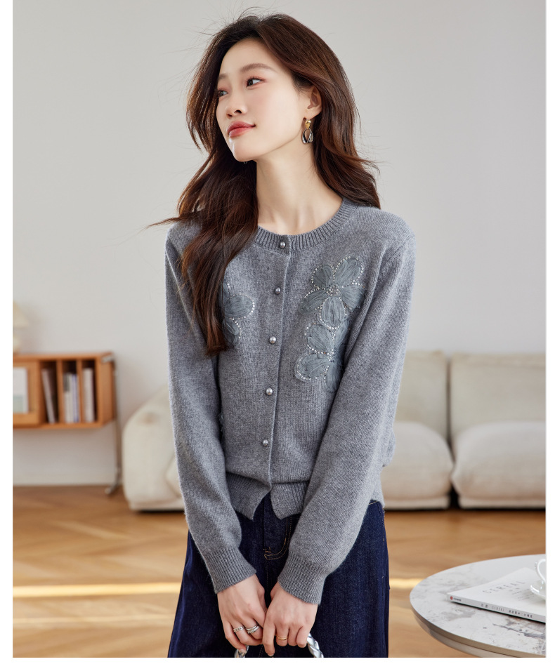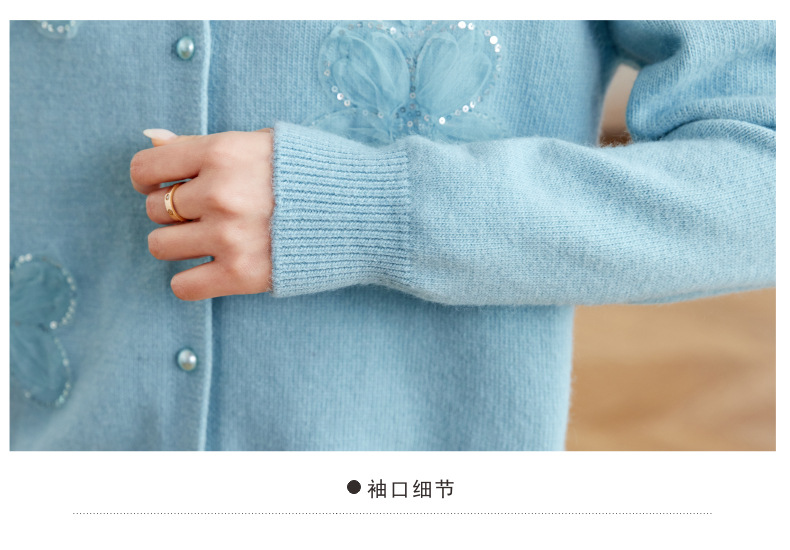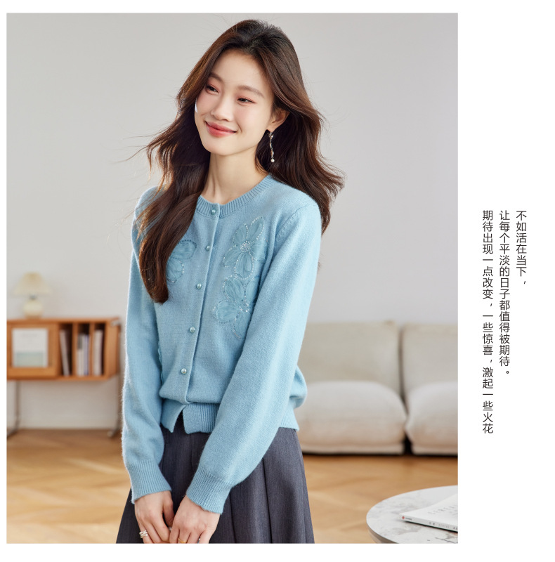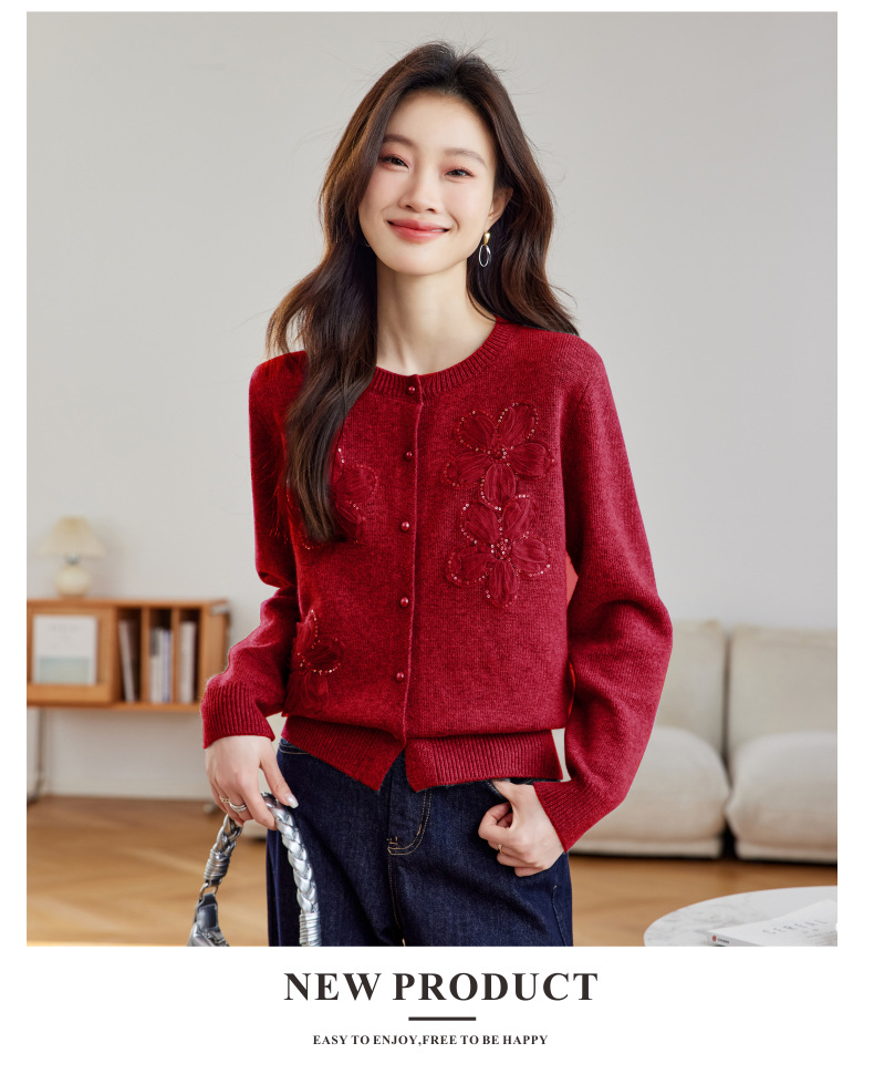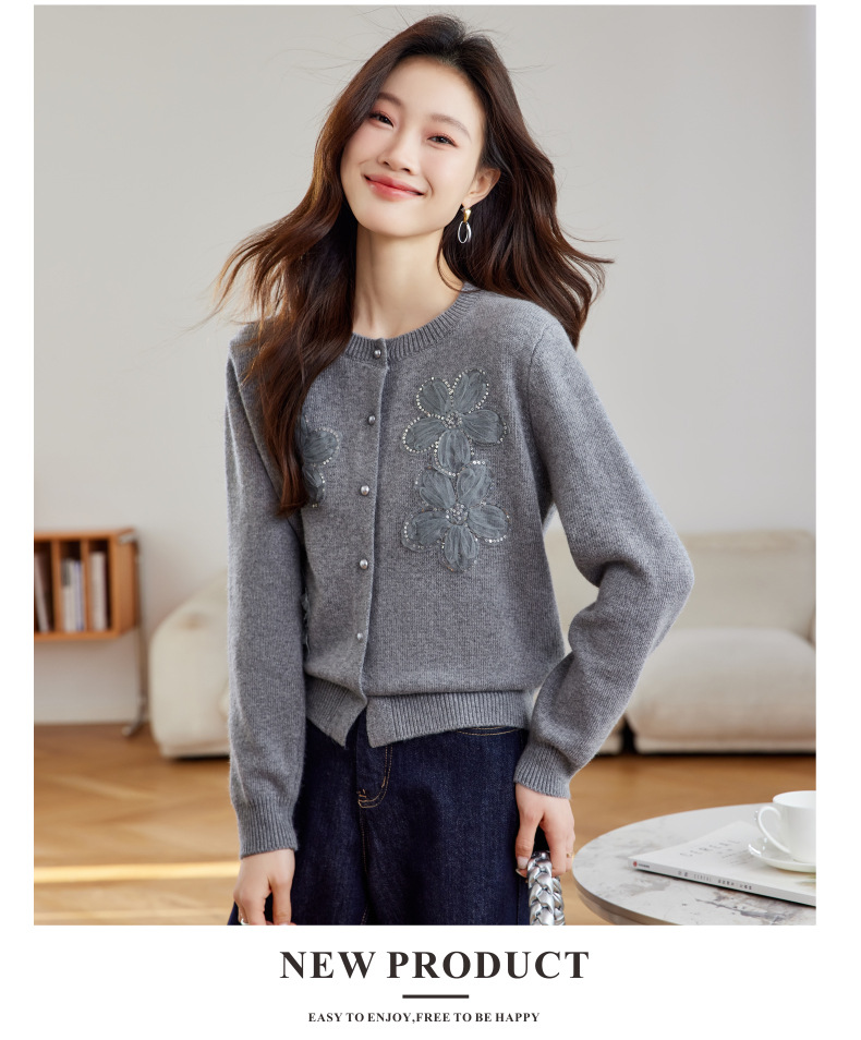 CC-27-2501春装女款2025年新款开衫针织衫短款低领小香风立体花朵亮片毛衣女