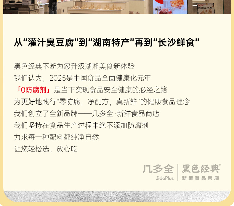 黑色经典湖南特产商城是长沙著名特色小吃“黑色经典长沙臭豆腐”旗下的线上官方商城。黑色经典面向全国,以长沙臭豆腐为核心,辐射覆盖湖南本土特色美食全系列产品,并对所有产品的生产工艺及包装进行了独特的改良。