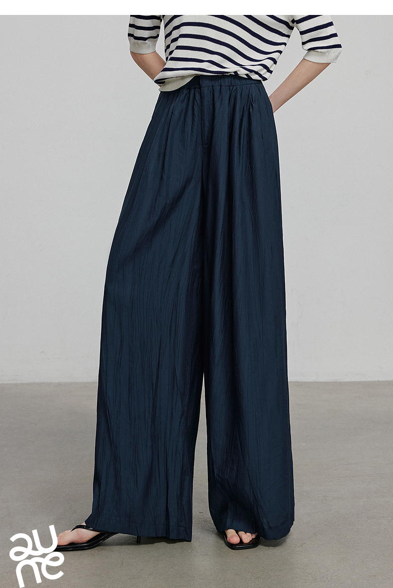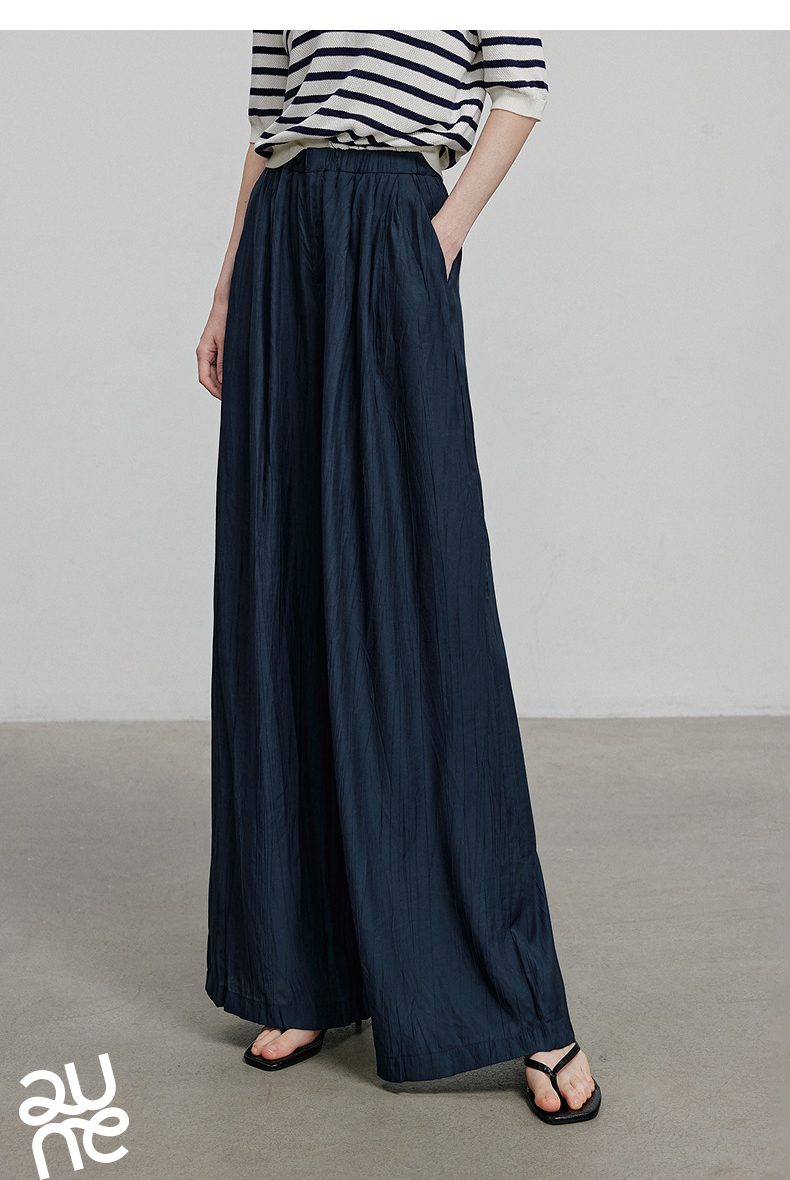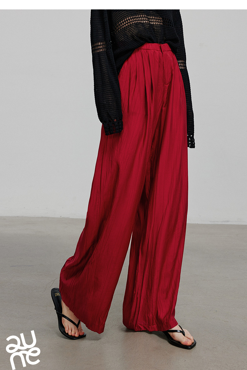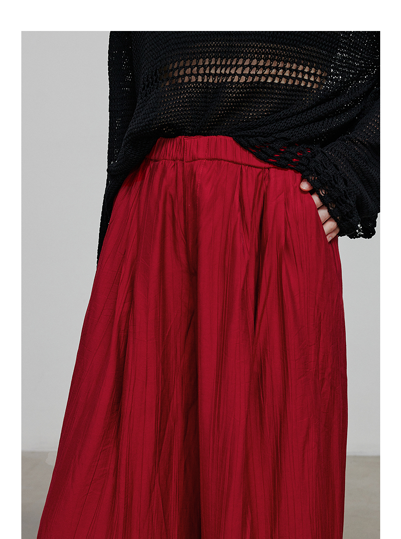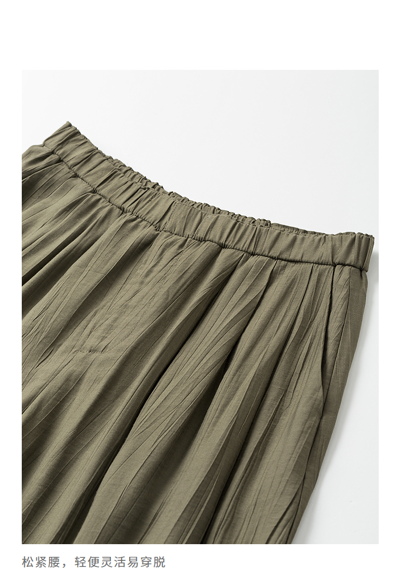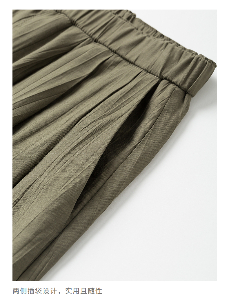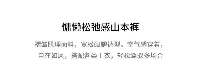 初语褶皱肌理山本裤女松紧腰宽松阔腿慵懒感休闲裤